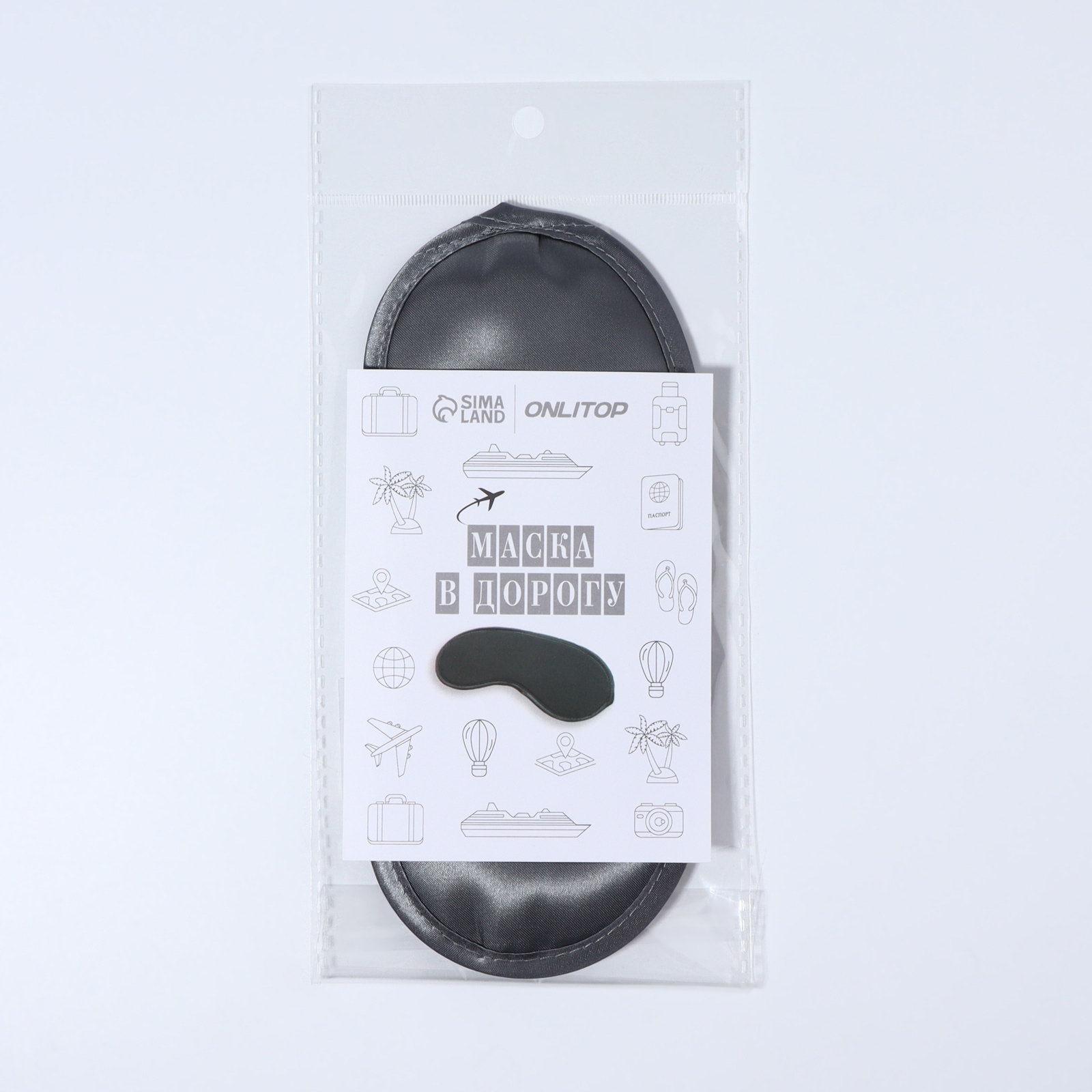 Маска для сна, сатиновая, резинка одинарная, 19x8.5 см, серая, 8.5x19x0.5 см., ONLITOP, Китай