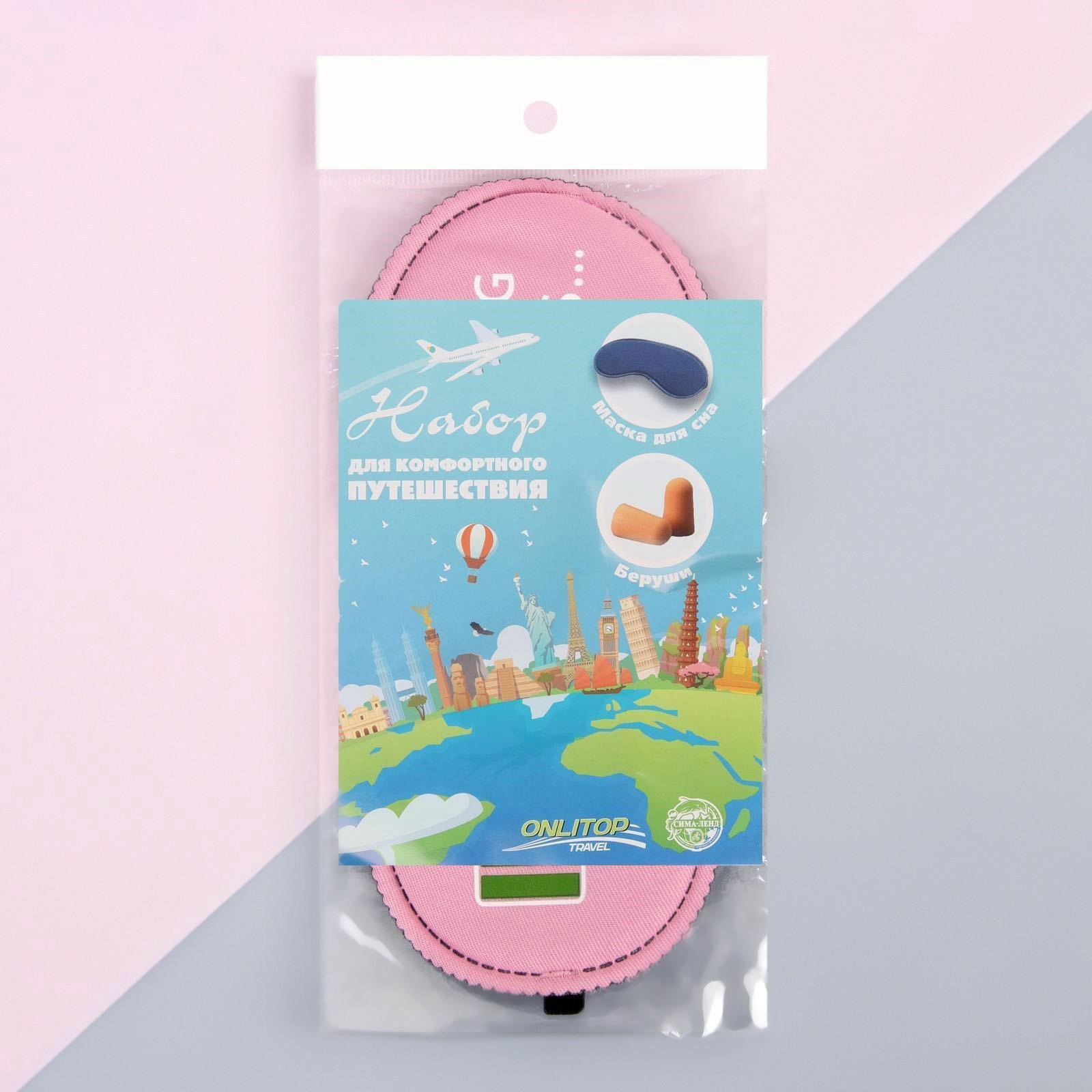 Дорожный набор: маска для сна, беруши в футляре, 9x19x0.2 см., ONLITOP, Китай