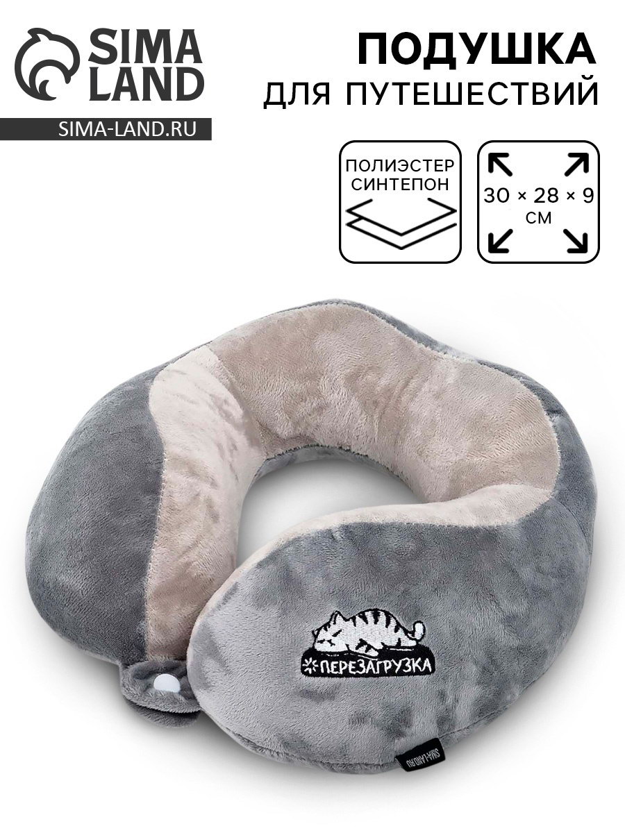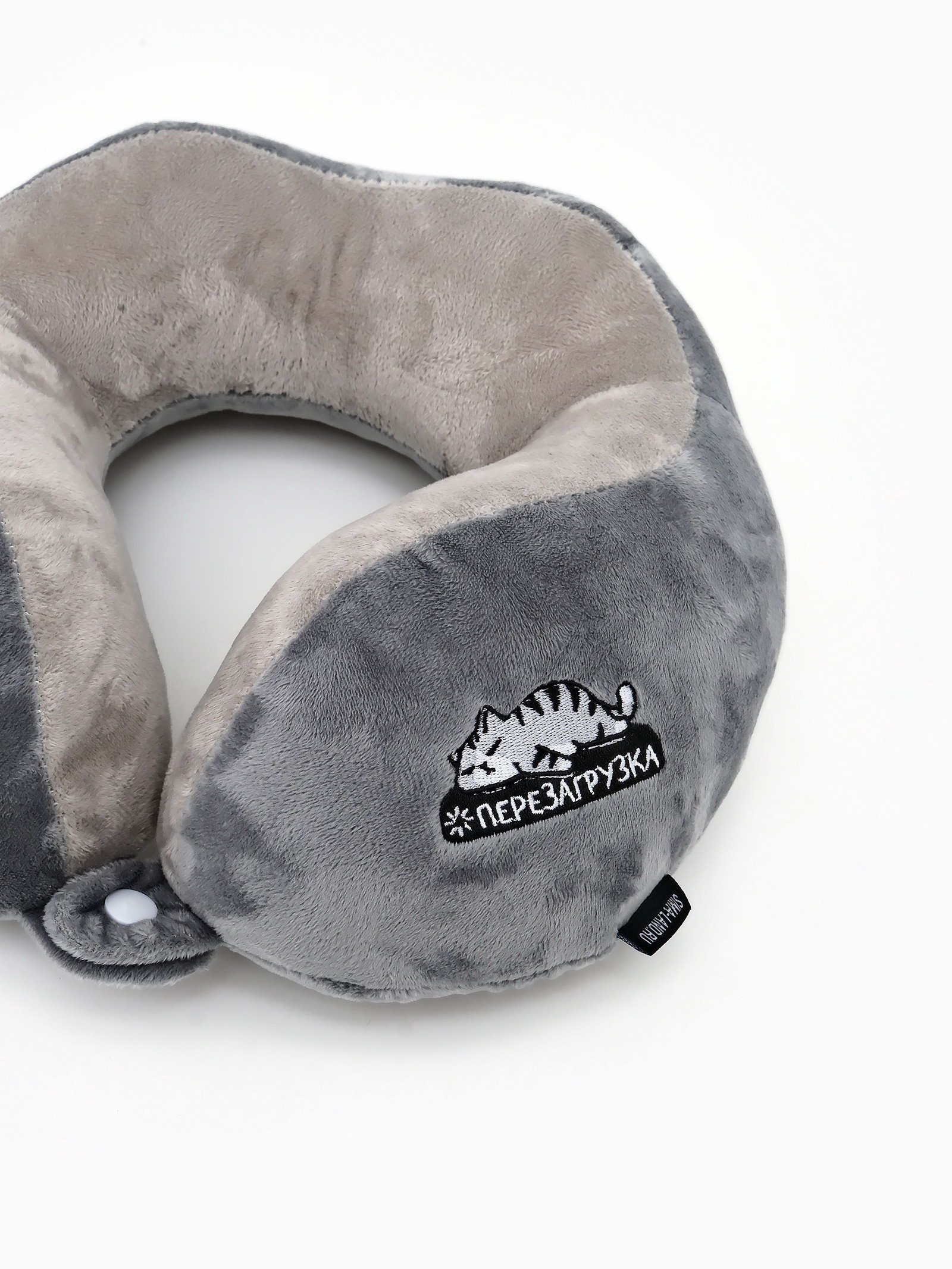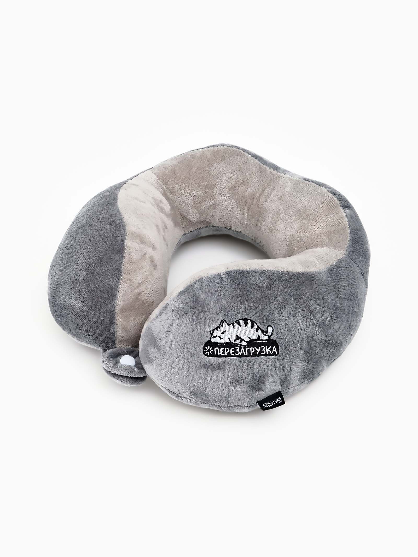 Подушка для путешествий бархатная "Перезагрузка", серая, 28x30x9 см., Сима-ленд, Китай