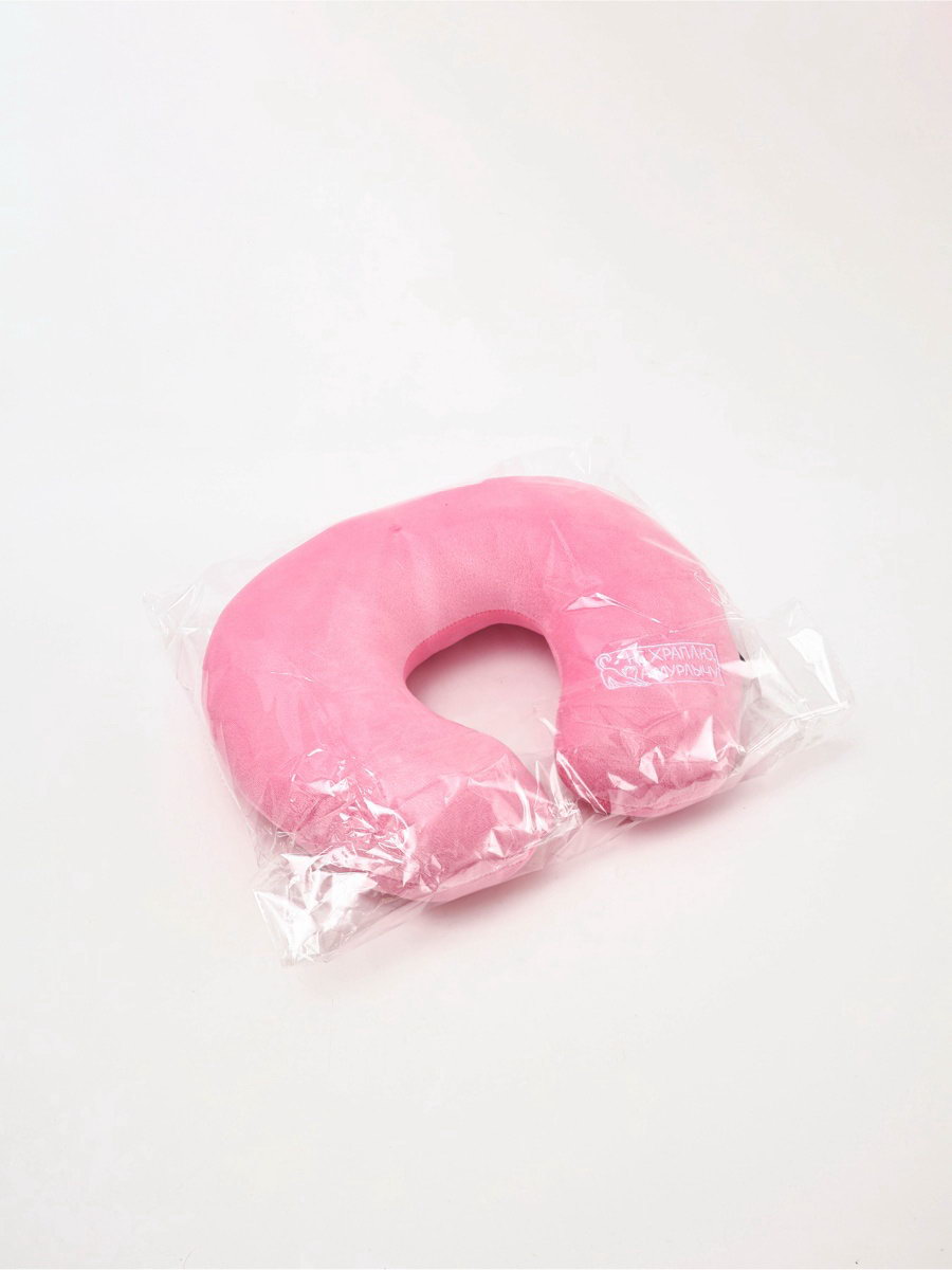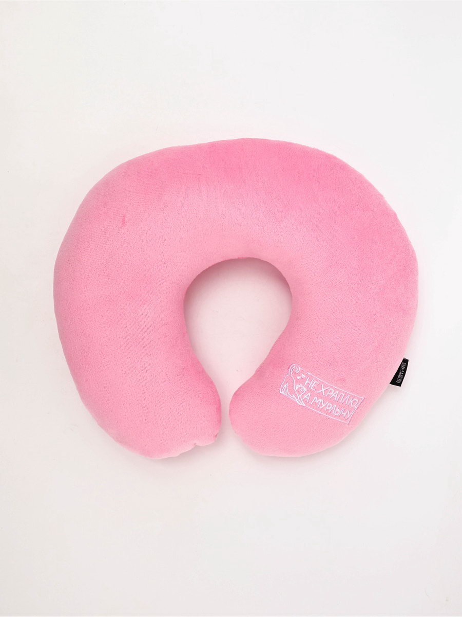 Подушка для путешествий бархатная "Не храплю", розовая, 28 x 30 x 9 см, 30x28x8.5 см., Сима-ленд, Китай