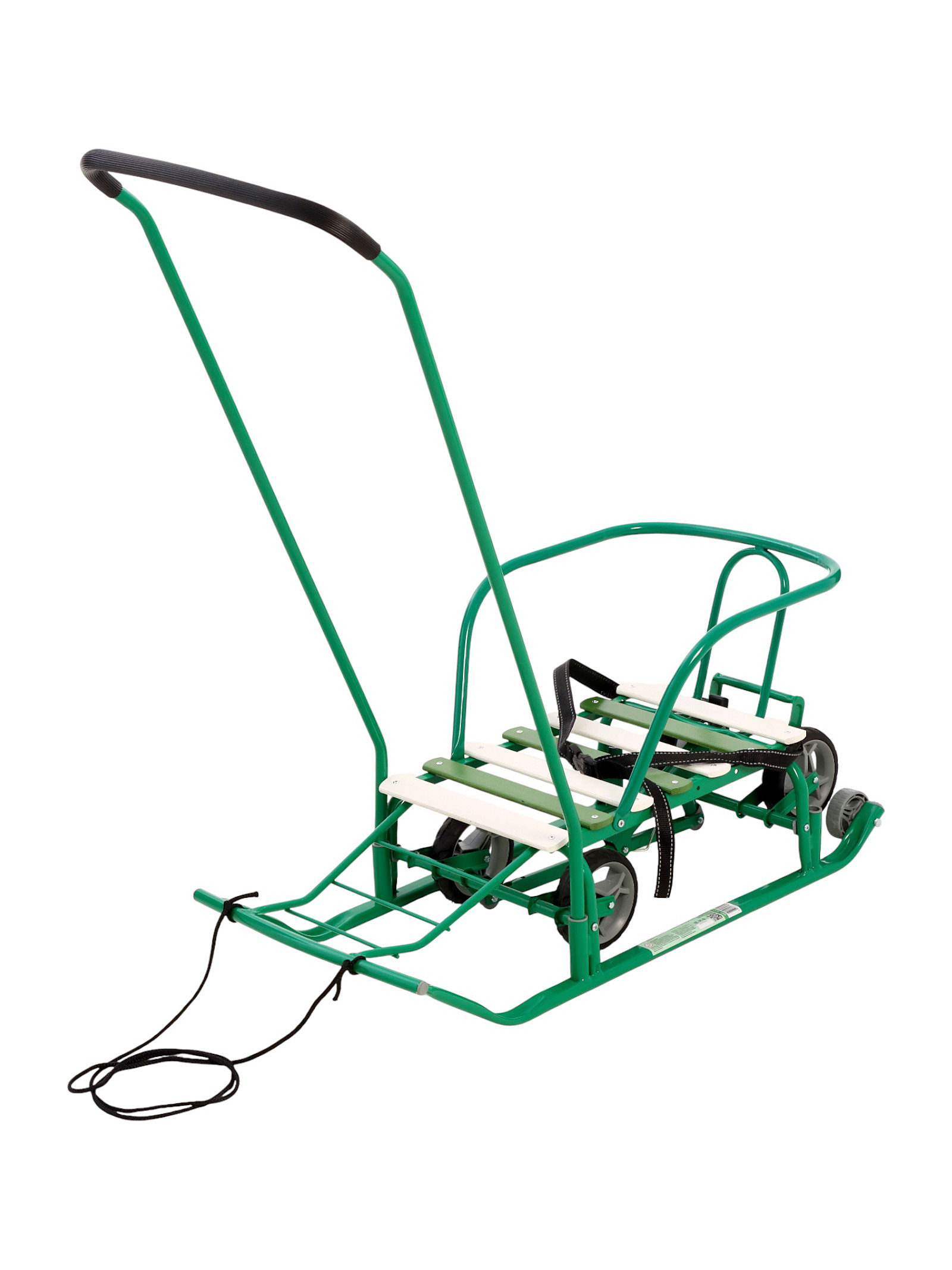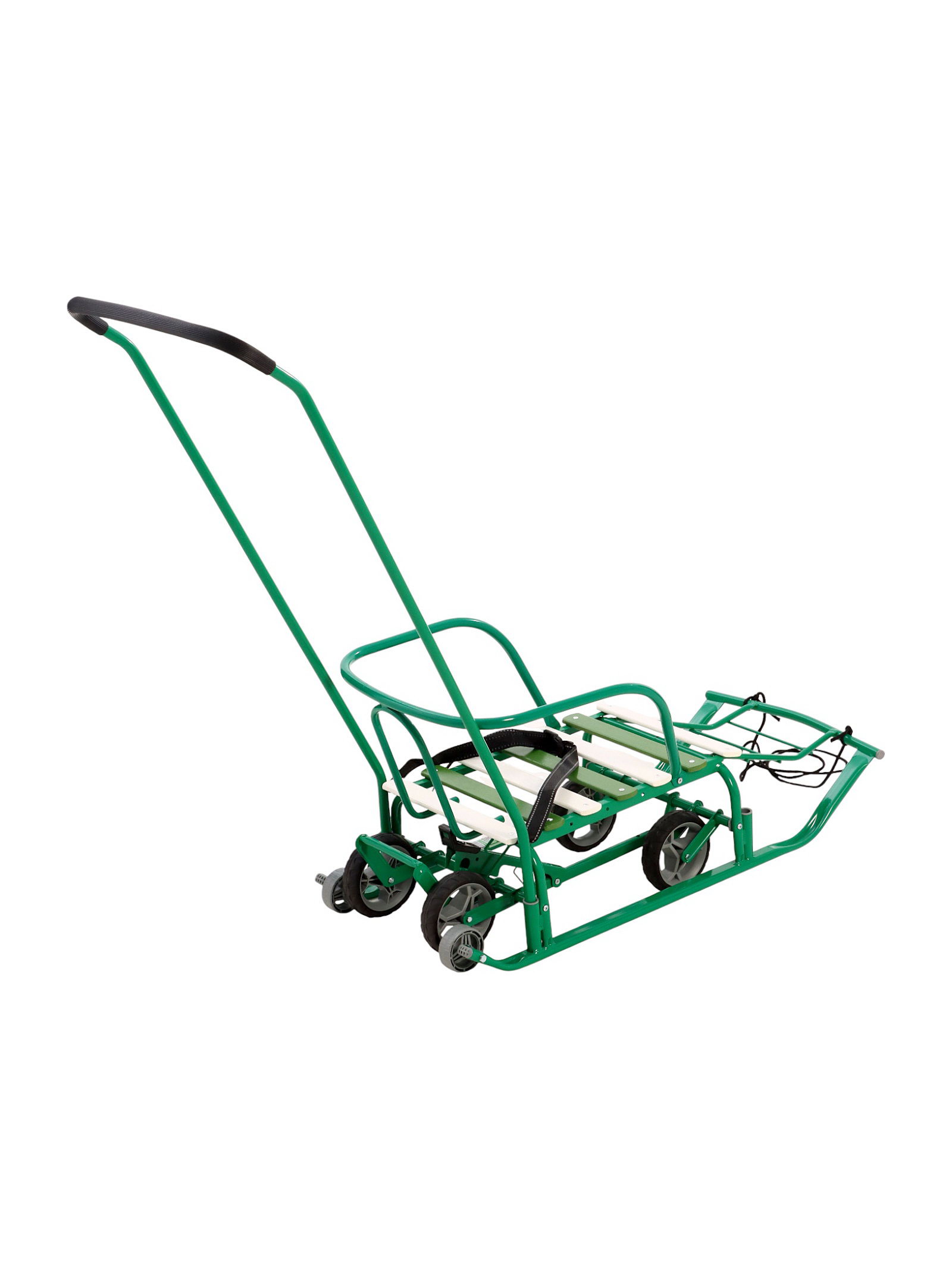 Санки детские с колёсами "Тимка 5 универсал", с ручкой, цвет зелёный, 40x84x40 см., Nika Kids, Россия