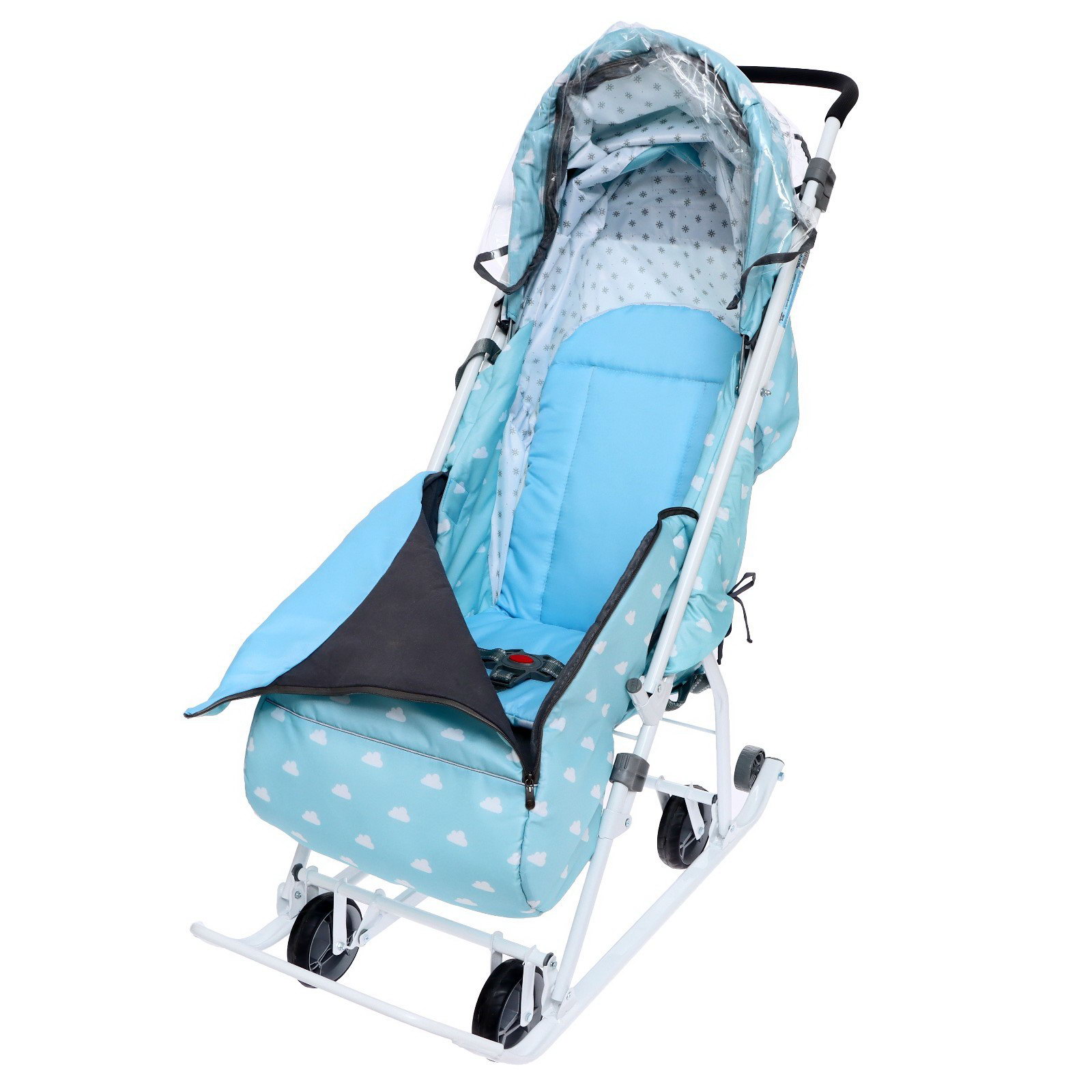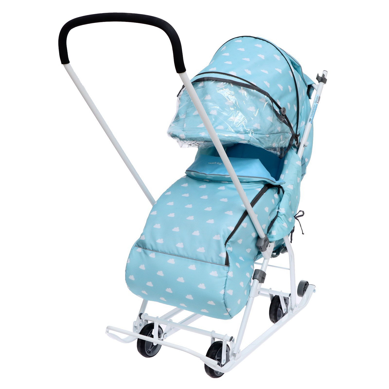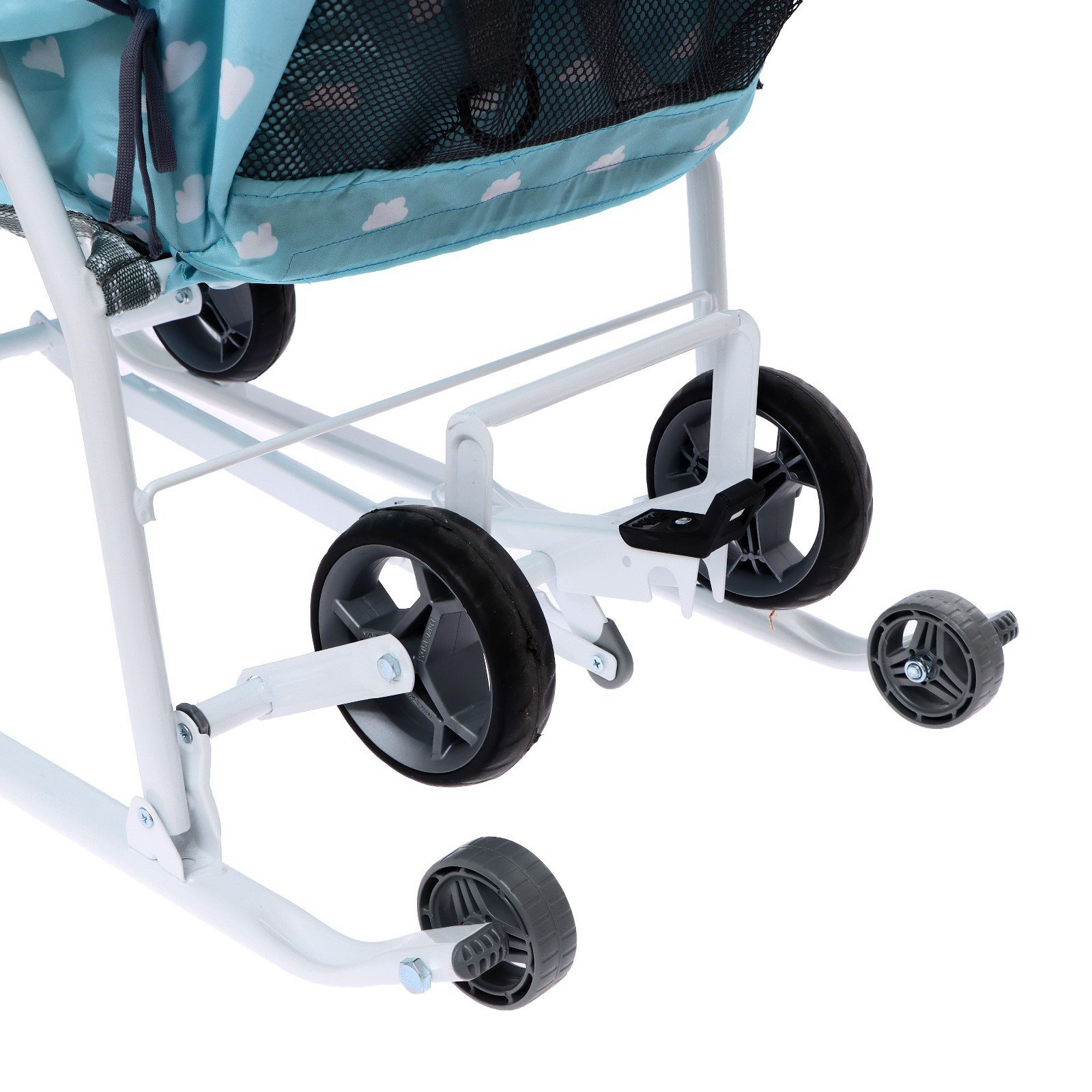 Санки-коляска "Наши детки 3-1К", принт с облачками, цвет голубой, Nika Kids, Россия