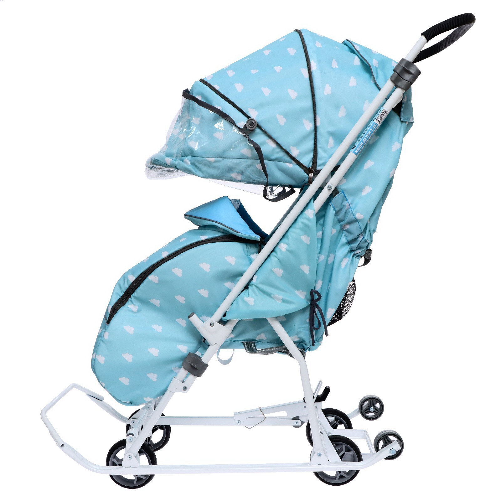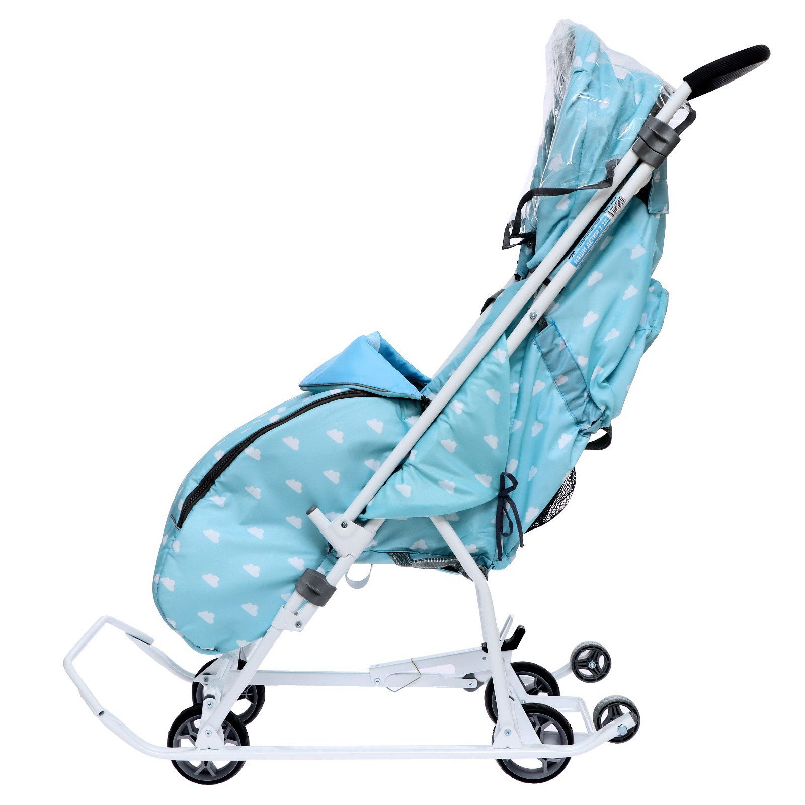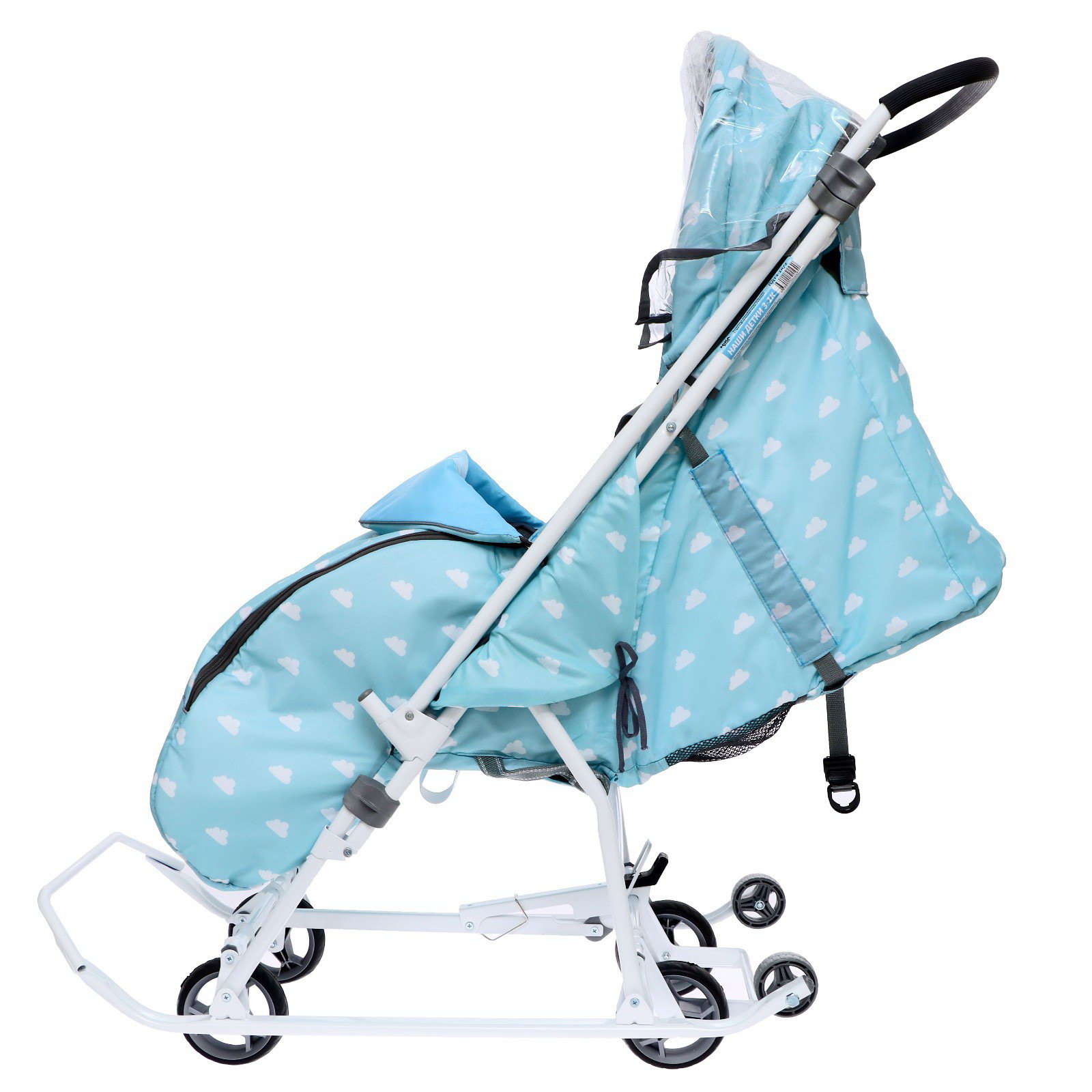 Санки-коляска "Наши детки 3-1К", принт с облачками, цвет голубой, Nika Kids, Россия