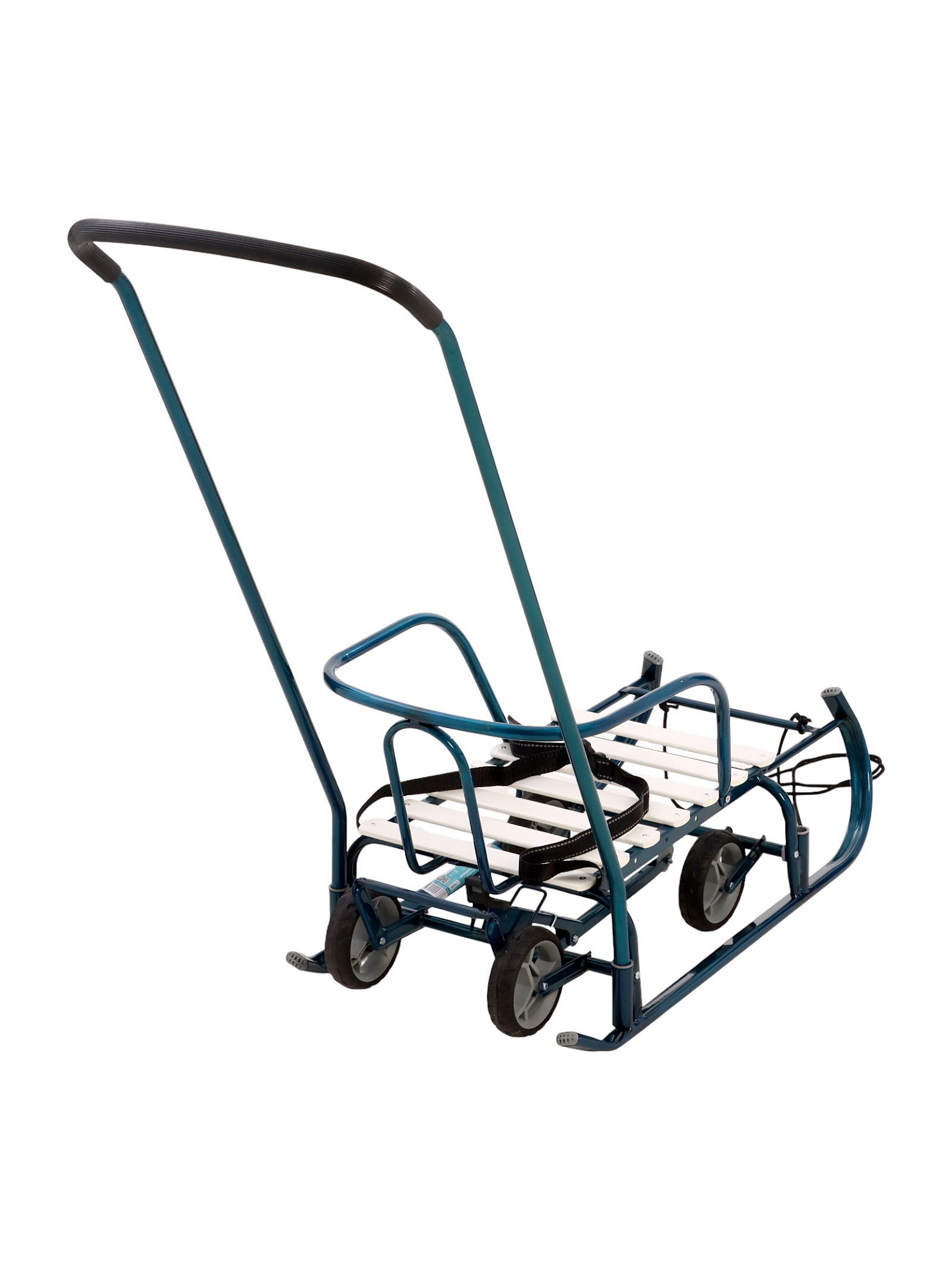 Для кого? Модель рассчитана на детей от 3 лет. Она подойдёт для семей, которые ценят спокойные, предсказуемые прогулки в городе и на природе. Морской синий цвет освежает зимний пейзаж и остаётся универсальным для мальчиков и девочек. ¶Такие санки-коляска с выдвижными колёсами помогают не зависеть от погоды: снег, лёд или сухой тротуар – прогулка продолжается без пауз. Это надёжный спутник зимних будней и выходных за городом. | ||