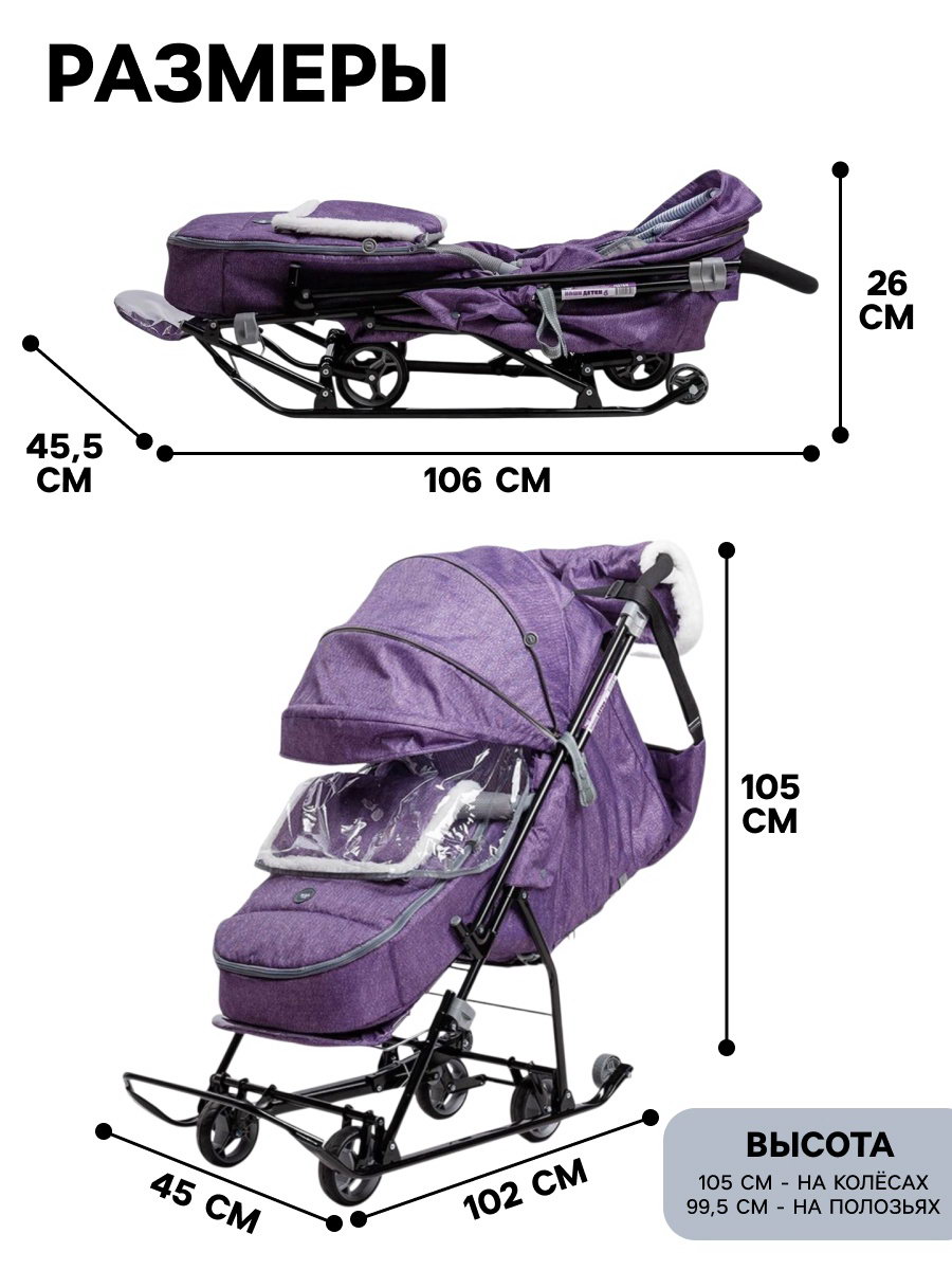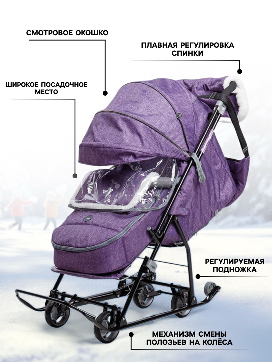 Комфорт для малыша и родителей Санки-коляска с утеплённым чехлом и муфтой создана для долгих зимних прогулок. Ребёнок остаётся в тепле, а родители могут легко управлять санками благодаря эргономичной ручке. Яркий баклажановый цвет с полосками выделит ваши сани среди других стильно и практично! | ||