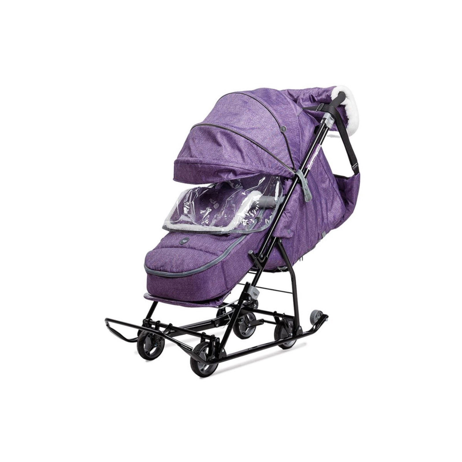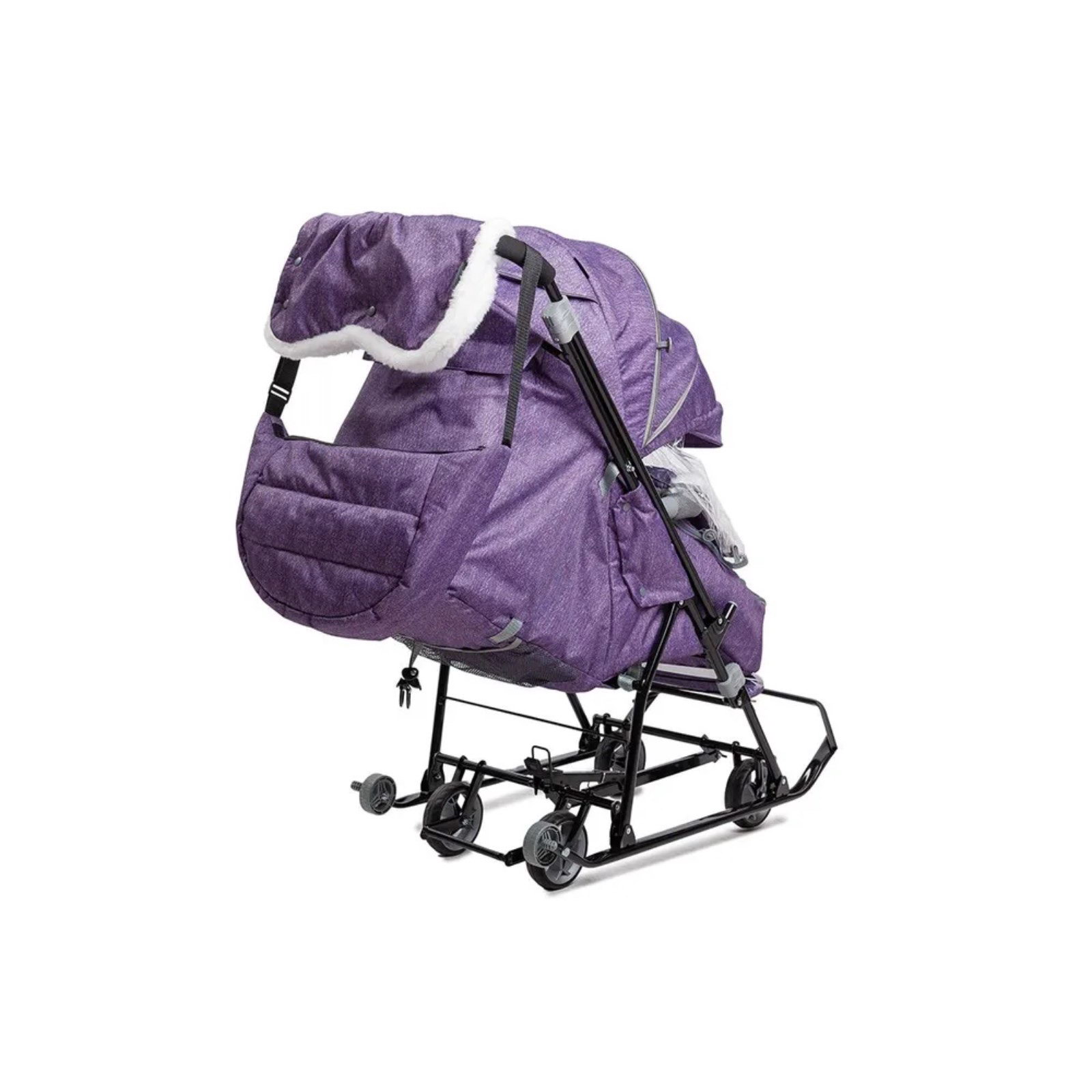 Санки - коляска "Наши детки 6", чехол для ног, муфта, сумка, баклажановый с полосками, Nika Kids, Россия