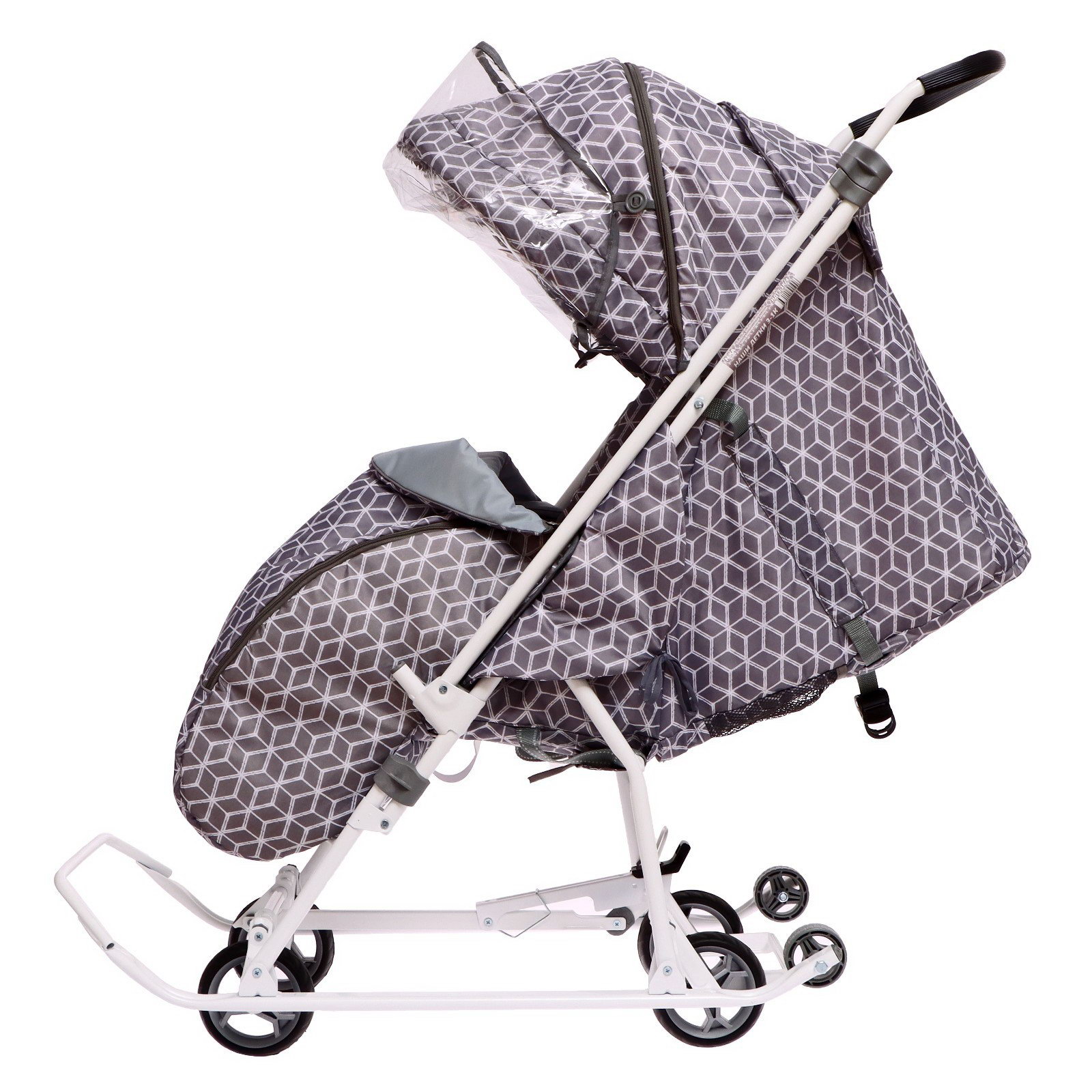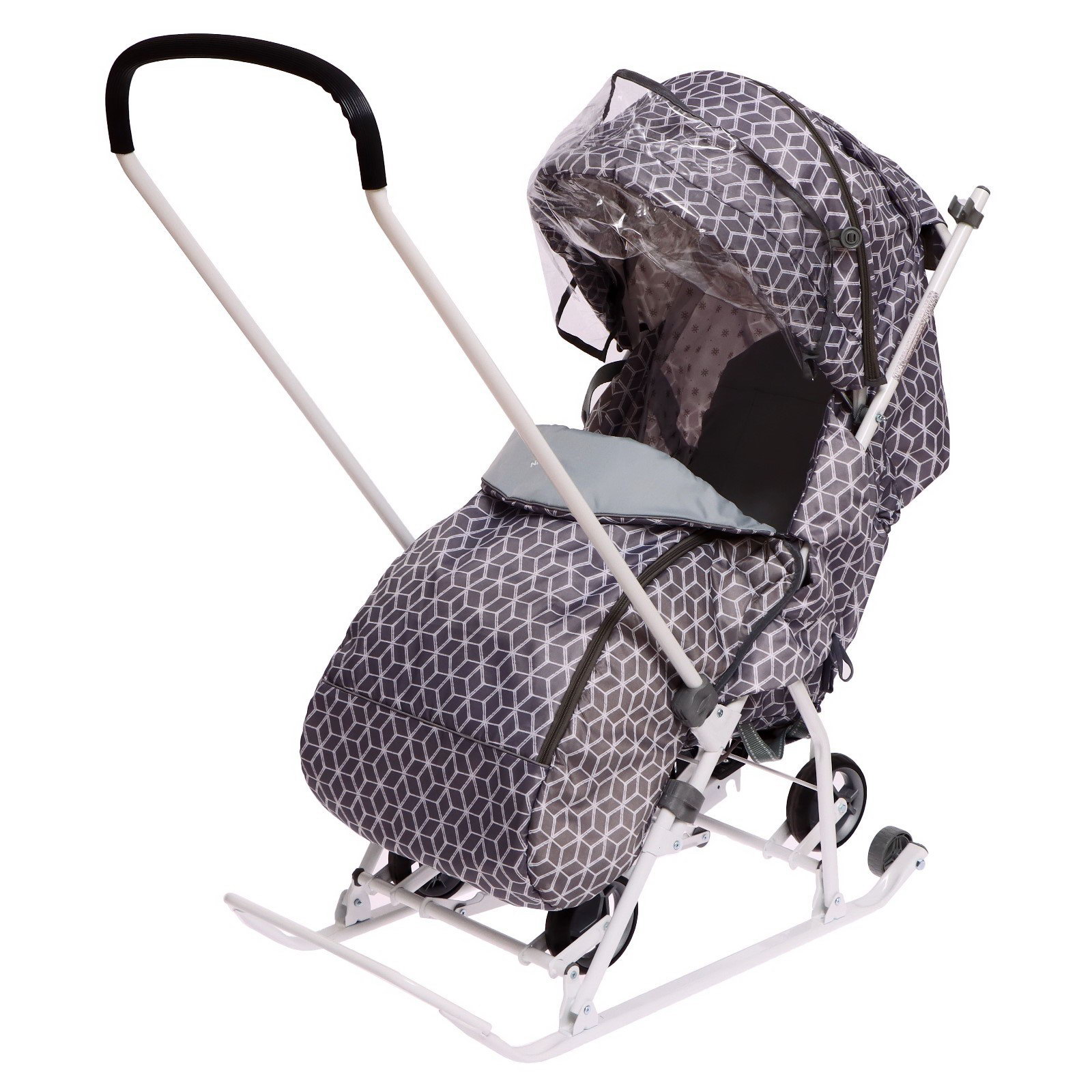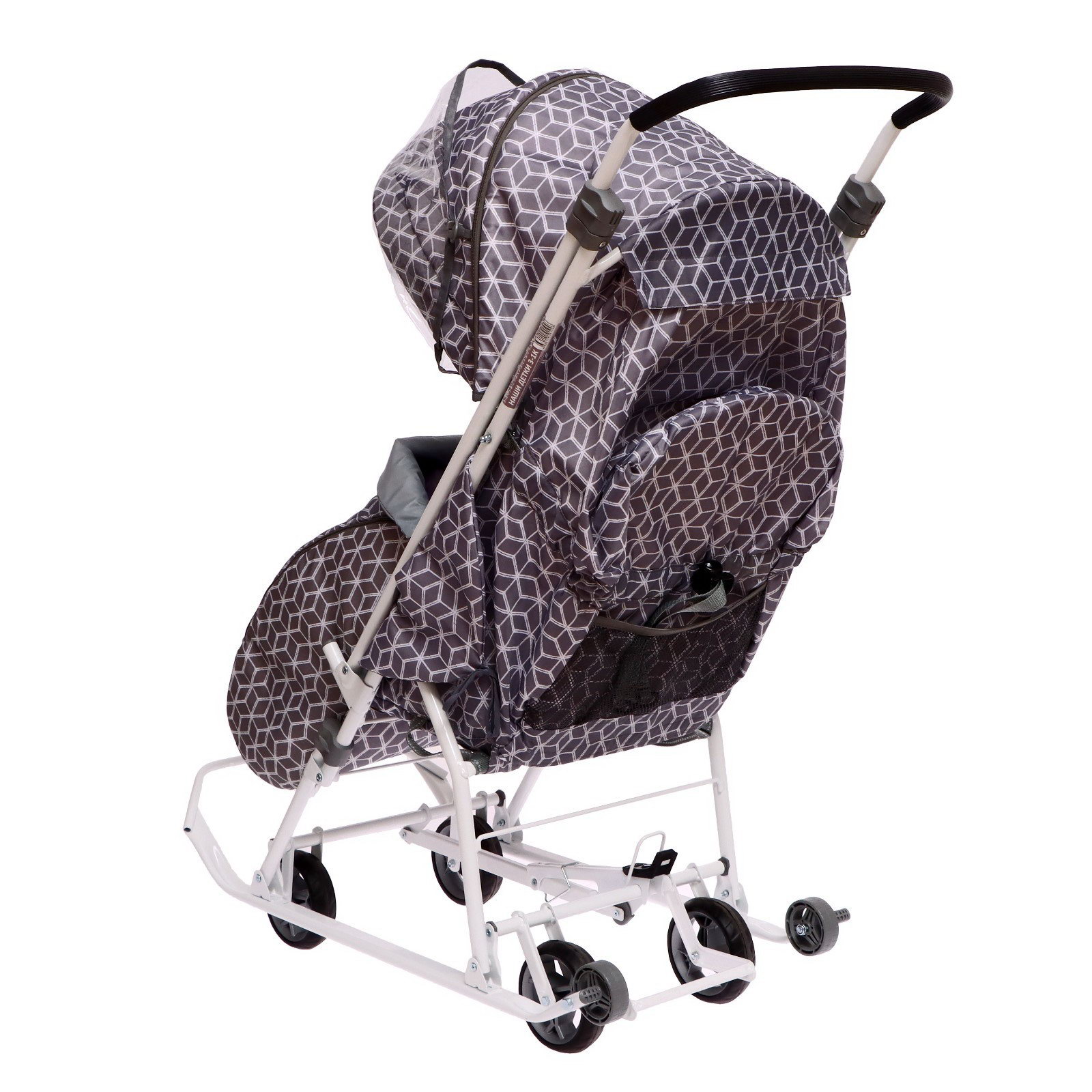 Санки-коляска "Наши детки 3-1К", принт: с ромбиками серый, Nika Kids, Россия