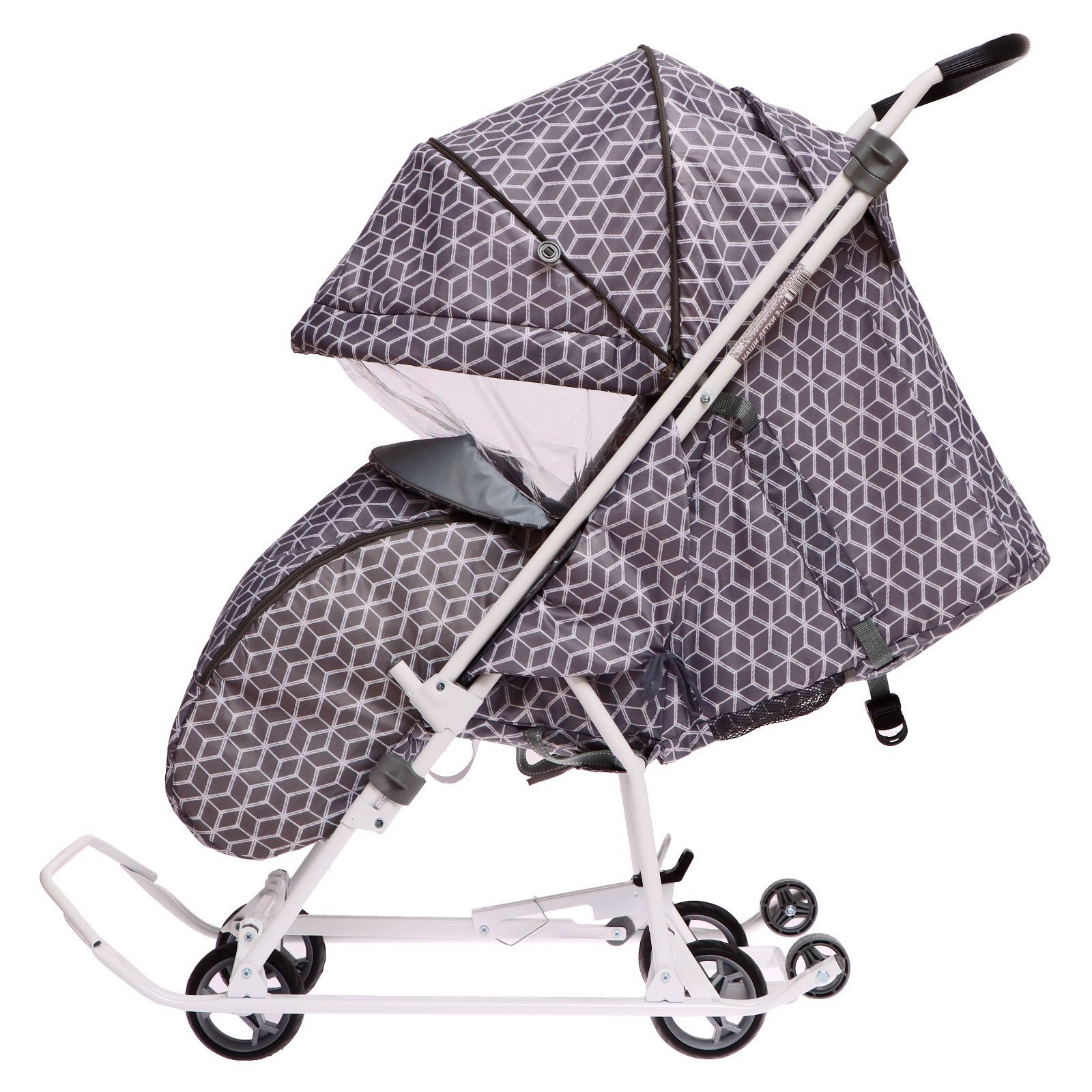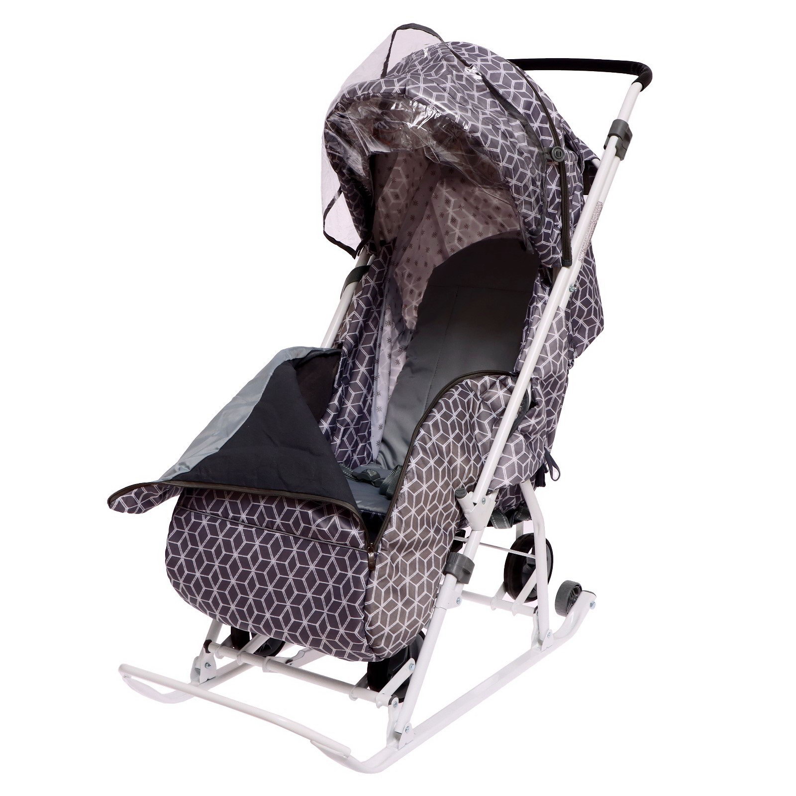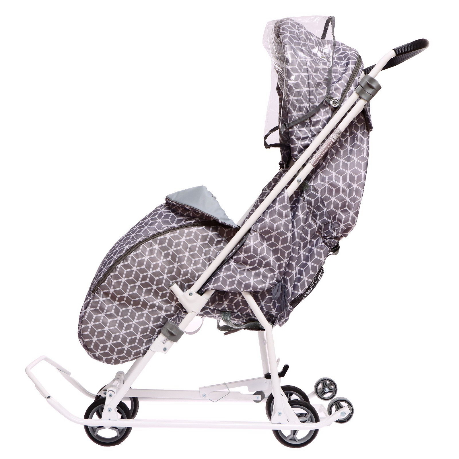 Санки-коляска "Наши детки 3-1К", принт: с ромбиками серый, Nika Kids, Россия