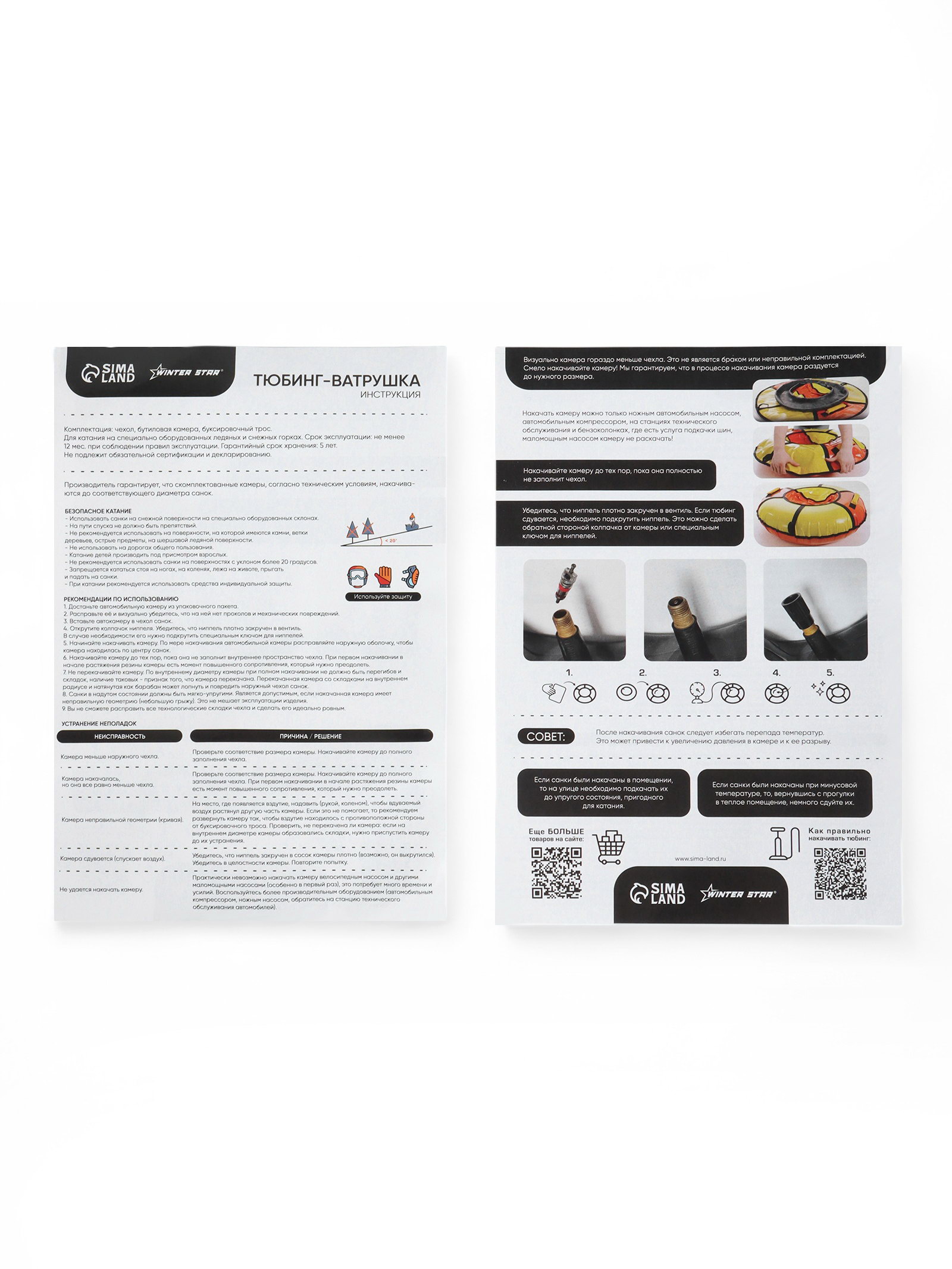 Размер упаковки: 31 x 8 x 45 см. Максимально допустимый вес, кг: 110 Материал (верх/низ): Оксфорд/тент tnved: 9506999000 Возраст: От 3 лет Цвет: Зелёный Подходящий размер камеры: R15 Расцветка: Разноцветный Максимальная нагрузка, кг: 110 Форма: Круг Тип: Камерный С тросом: Да Ручки: Да Вместимость, чел.: 1 Подсветка: Нет Камера в комплекте: Да Диаметр чехла, см: 110 Размер, см: 110 Диаметр тюбинга в накачанном виде, см (±5 см): 100 Дно тюбинга изготовлено из тентовой ткани 600-700 г/?2, что гарантирует долгий срок службы и обеспечивает отличное скольжение. Тюбинг оснащён безопасными ручками. Имеет закрытую сердцевину, что исключает попадание снега внутрь. Фактический размер накачанного тюбинга зависит от температуры внешней среды и давления в камере. Для тюбинга подойдёт камера 14-15 дюймов. Предназначен для детей от 3 лет. Характеристики