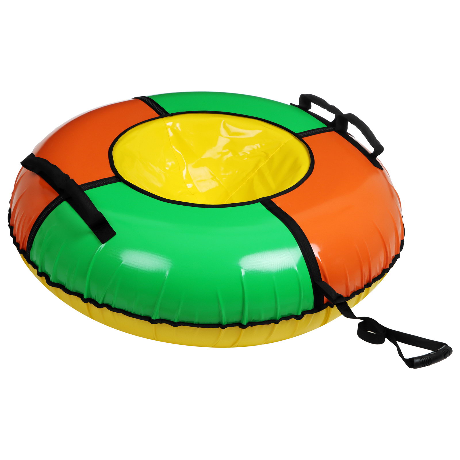 Цвет: Оранжевый, Сиреневый Размер упаковки: 32 x 14 x 33 см. tnved: 9506999000 Maксимальная нагрузка, кг: 150 Температурное ограничение: Нет Расцветка: Разноцветный Подсветка: Нет Вместимость, чел.: 1 Диаметр чехла, см: 120 Камера в комплекте: Да С тросом: Да Форма: Круг Тип: Камерный Ручки: Да Возраст: От 3 лет Материал (верх/низ): Тент/тент Подходящий размер камеры: R16 Диаметр тюбинга в накачанном виде, см (±5 см): 110