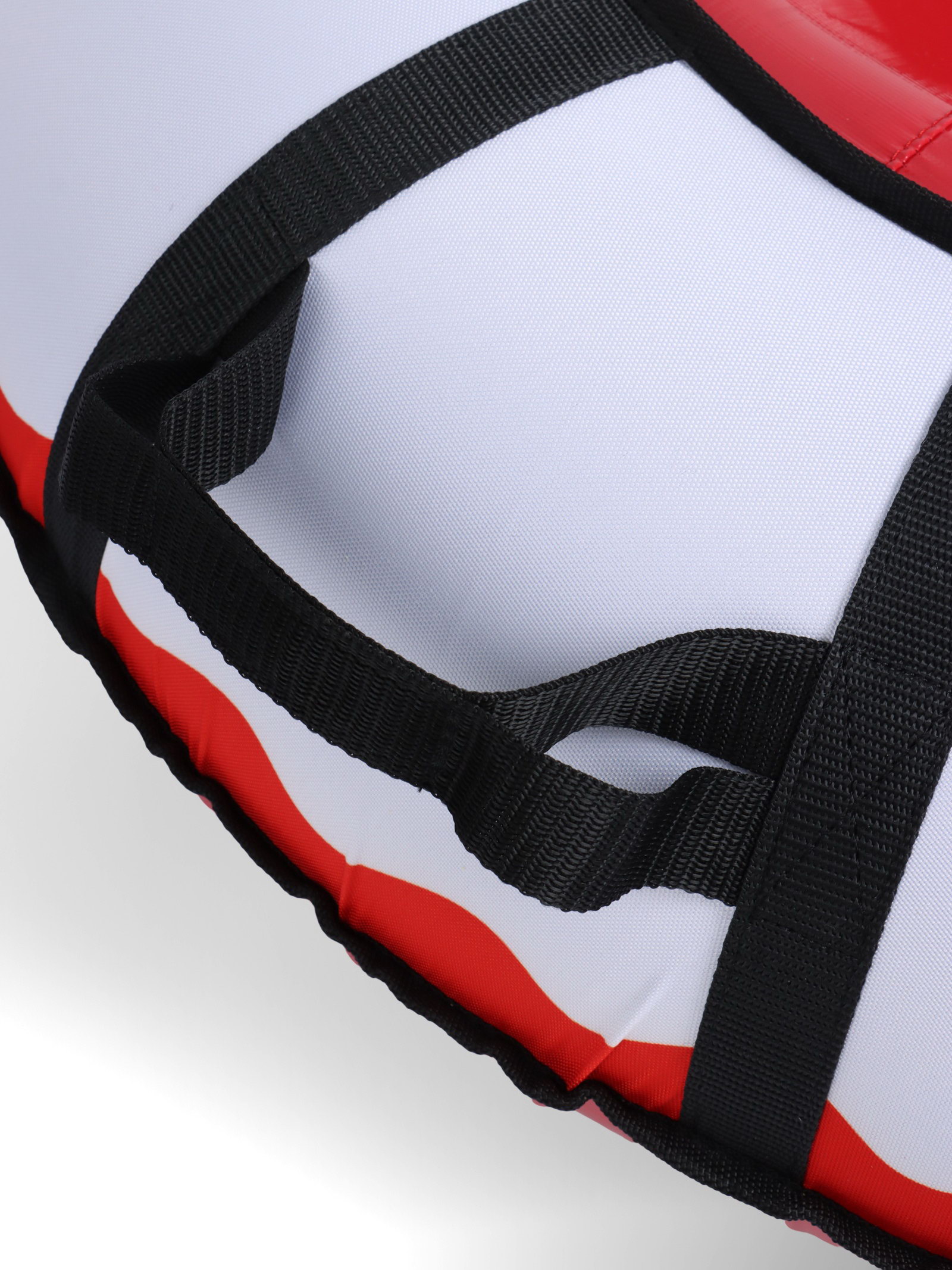 Для кого: Для девочки, Для мальчика Размер упаковки: 12 x 33 x 32 см. tnved: 9506999000 Температурное ограничение: Нет Вместимость, чел.: 1 Диаметр тюбинга в накачанном виде, см (±5 см): 83 Подсветка: Нет Максимальная нагрузка, кг: 80 С тросом: Да Расцветка: С принтом Ручки: Да Подходящий размер камеры: R14 Диаметр чехла, см: 93 Камера в комплекте: Да Форма: Круг Материал (верх/низ): Оксфорд/тент Тип: Камерный Цвет: Красный Возраст: От 3 лет Мягкая: Нет Дно тюбинга изготовлено из тентовой ткани плотностью 550–650 г/?2, что гарантирует долгий срок службы и обеспечивает отличное скольжение. Снаряд оснащён безопасными ручками и молнией для быстрого доступа к камере. Имеет закрытую сердцевину, что исключает попадание снега внутрь. Для тюбинга подойдёт камера 14 дюймов. Предназначен для детей от 12 лет. Особенности