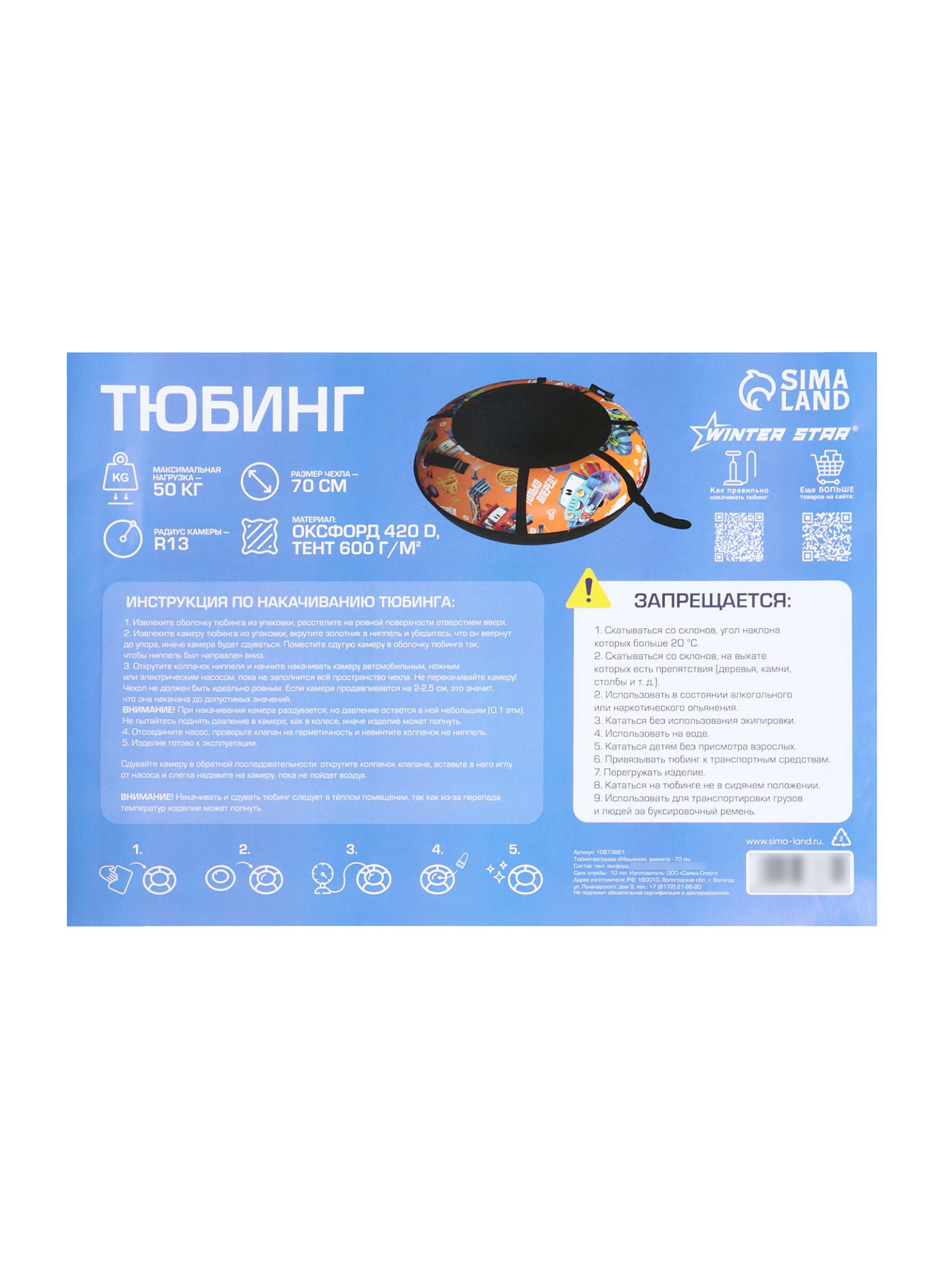 Тюбинг – ватрушка "Машинки", диаметр чехла 70 см, оранжевая, чёрная, Winter Star, Россия