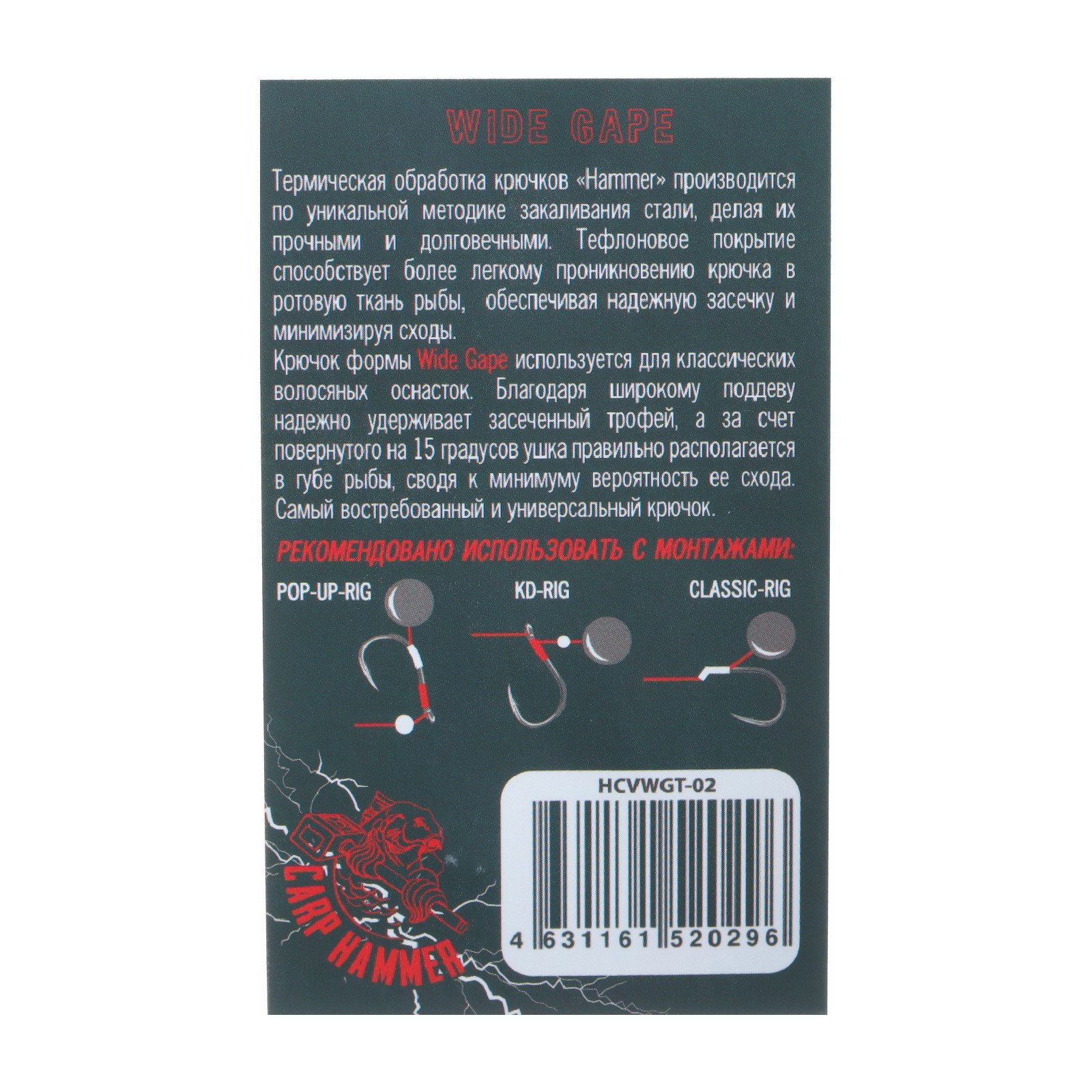 Крючок карповый Volzhanka Wide Gape Teflon №2 10 штук, Волжанка, Россия