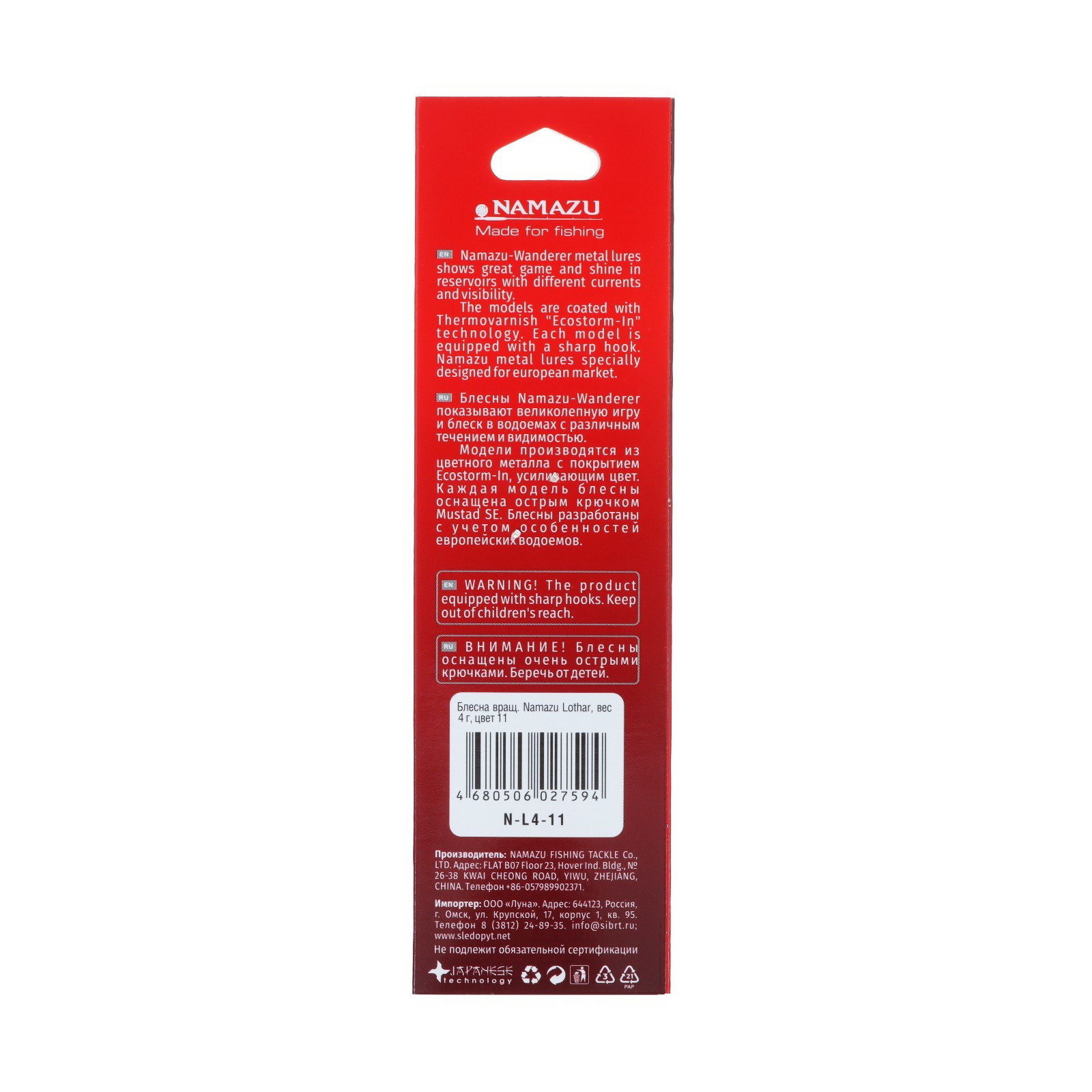 Блесна вращающаяся Lothar, 4 г, цвет 11, Namazu, Китай
