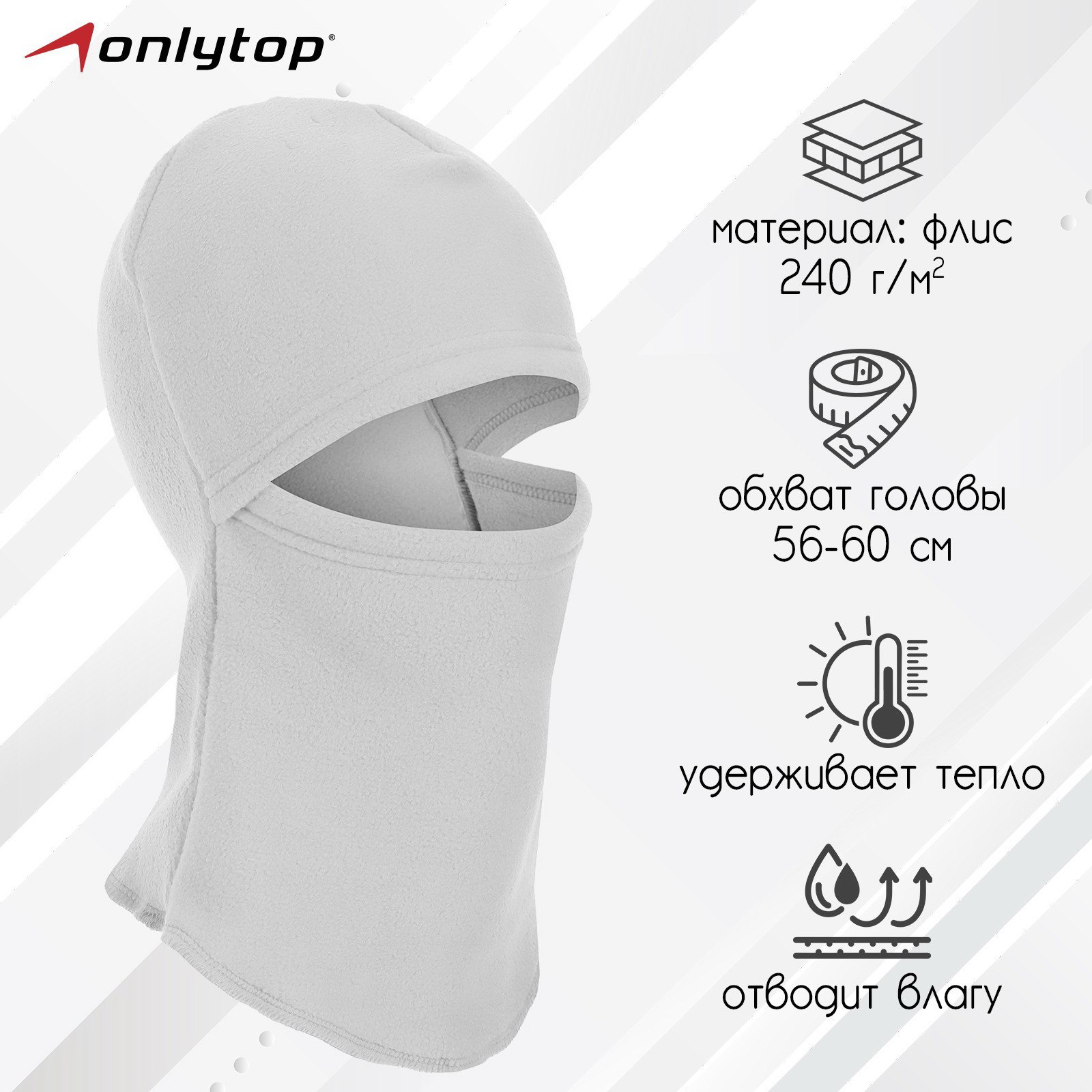 Балаклава ветрозащитная р. L, обхват 56-60 см, цвет серый, ONLYTOP, Россия