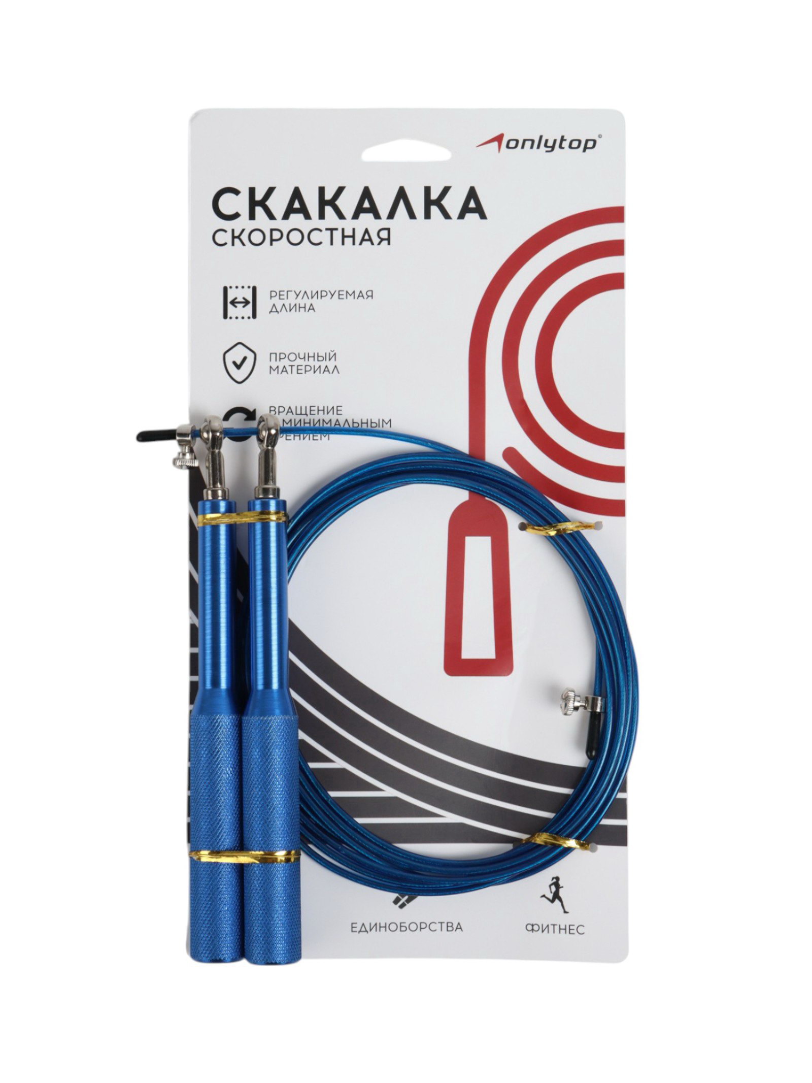 Скакалка спортивная 2.8 м, регулируемая, скоростная, с подшипником, синяя, 28x14.5x3 см., ONLYTOP, Китай