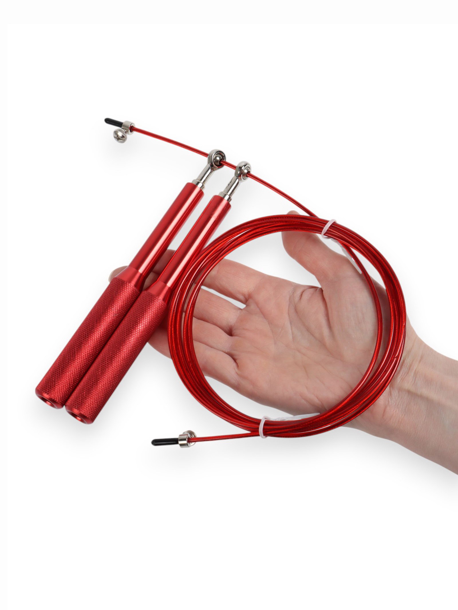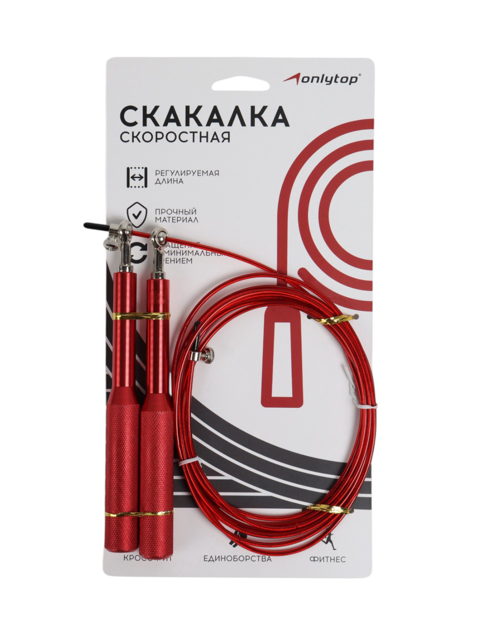 Скакалка спортивная 2.8 м, регулируемая, скоростная, с подшипником, красная, 28x14.5x3 см., ONLYTOP, Китай