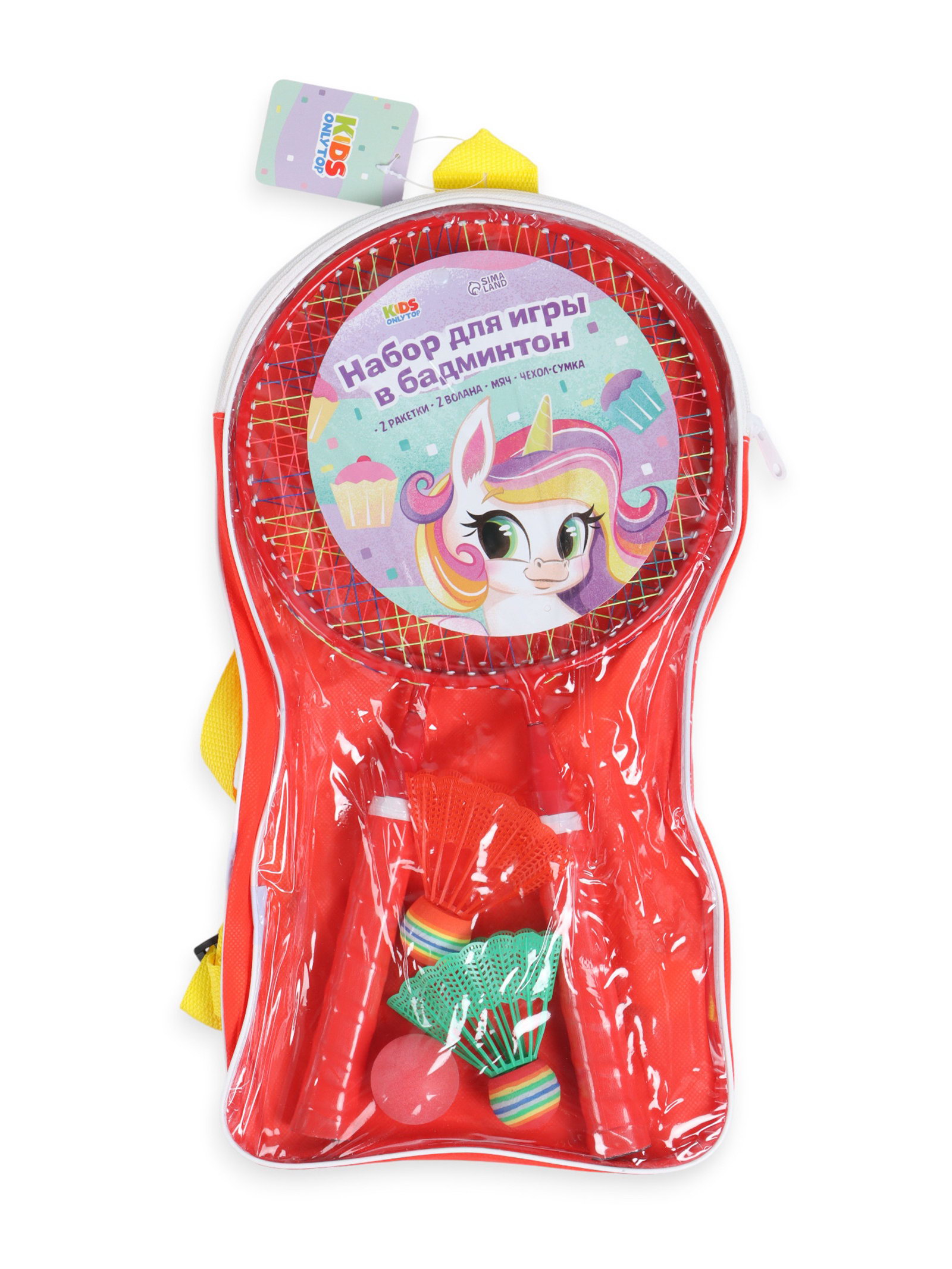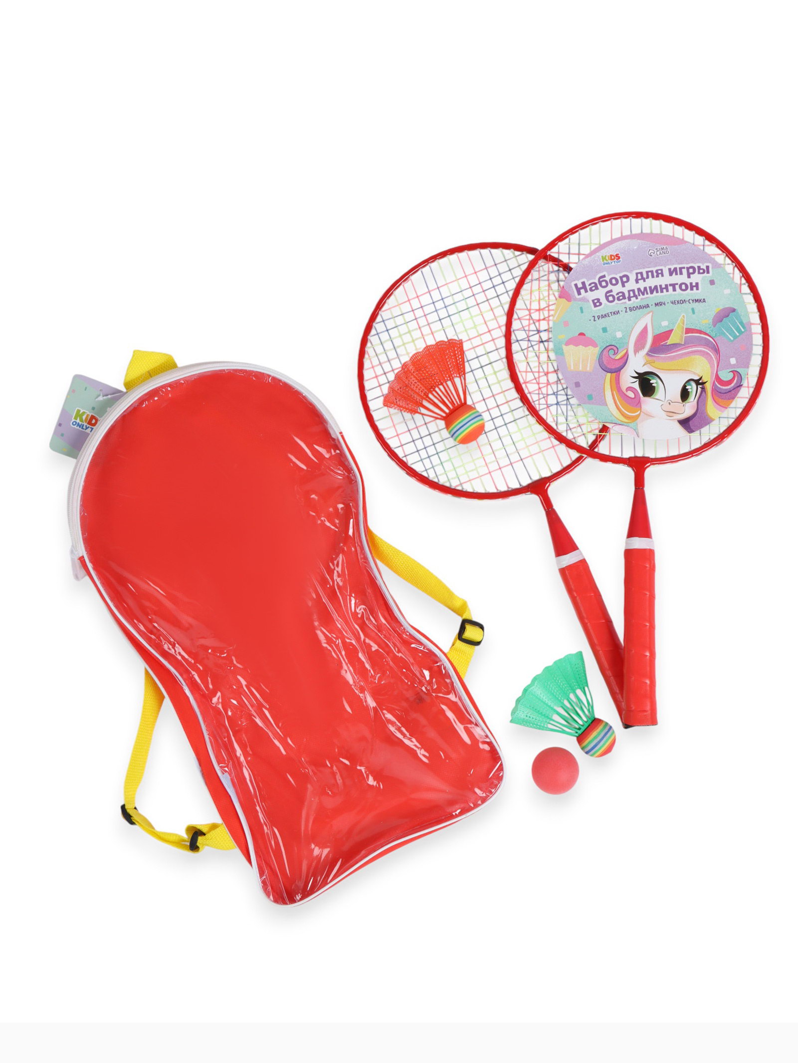 Набор для бадминтона "Пони": 2 ракетки 44 см, 2 волана, мяч, чехол, цвет красный, 22x1.8x44 см., ONLYTOP, КИТАЙ