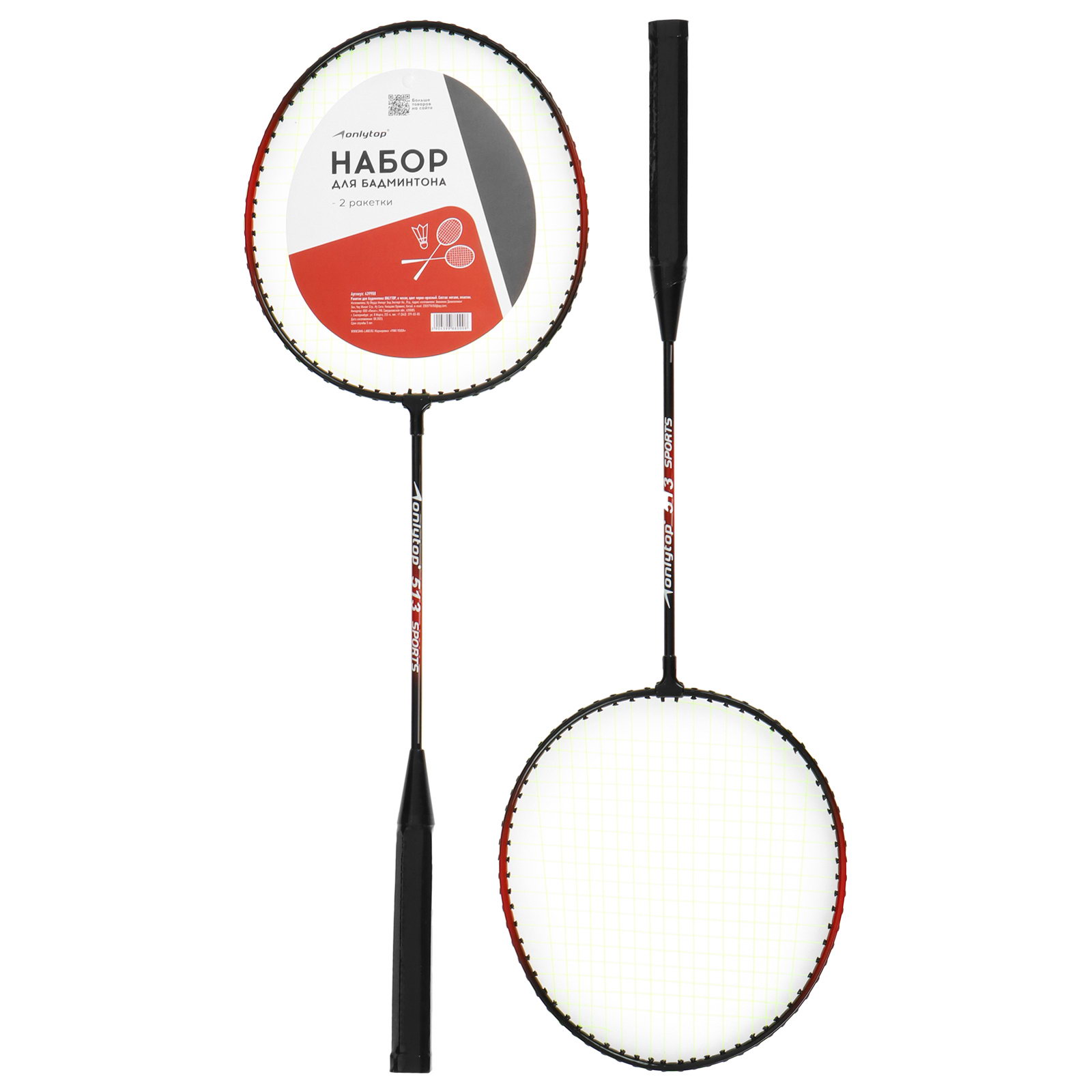 Ракетки для бадминтона Swift hit, 2 шт., цвета МИКС, 62x62 см., ONLYTOP, Китай