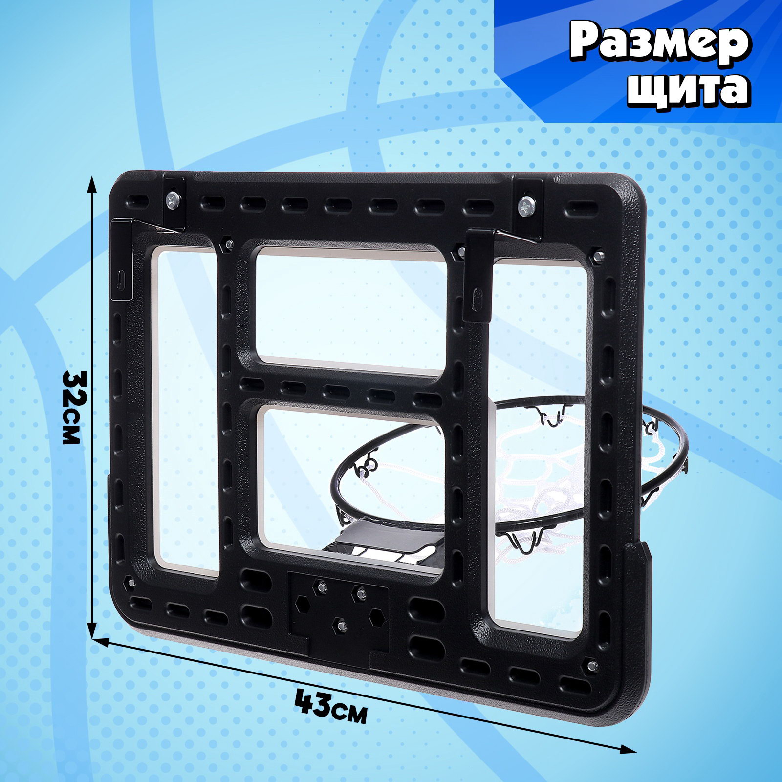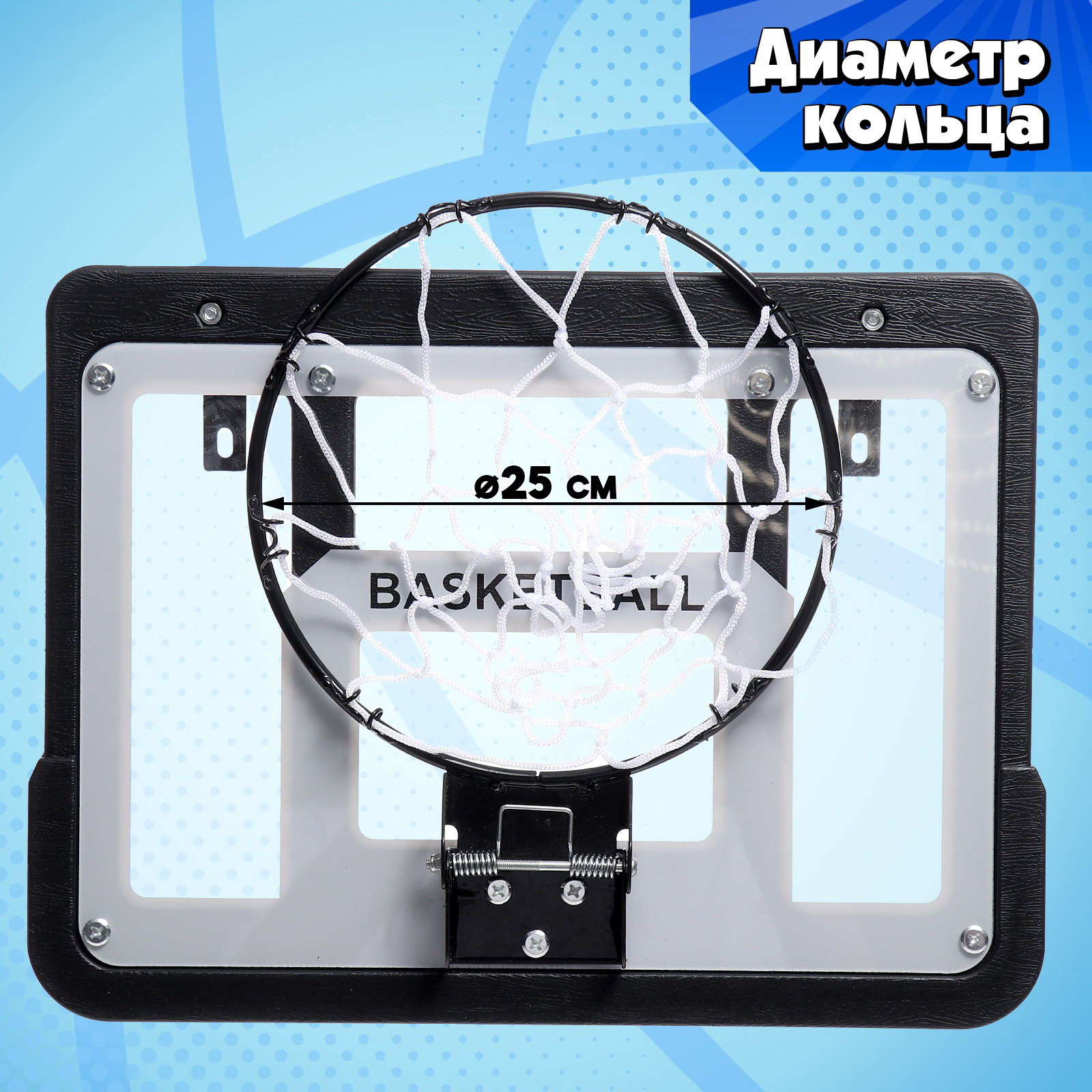 Баскетбольное кольцо с щитом "Настоящий мастер", мяч и насос в наборе, диаметр мяча 15 см, кольца 25 см, 250х250х67 см., Китай