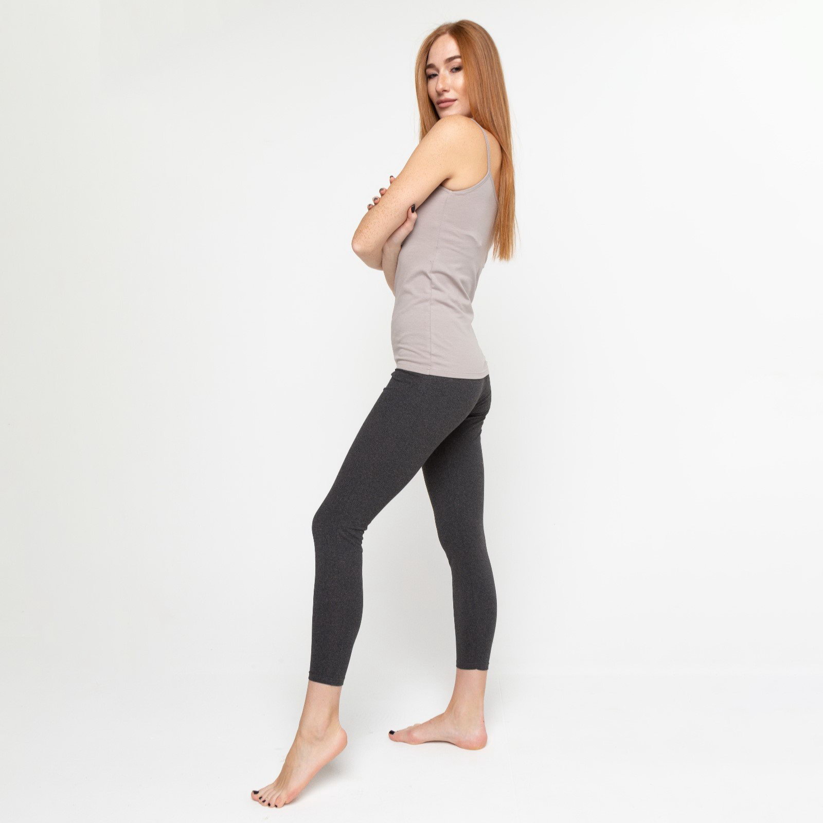 Легинсы спортивные женские тёмно-серые меланж, размер 52, Tusi, Россия