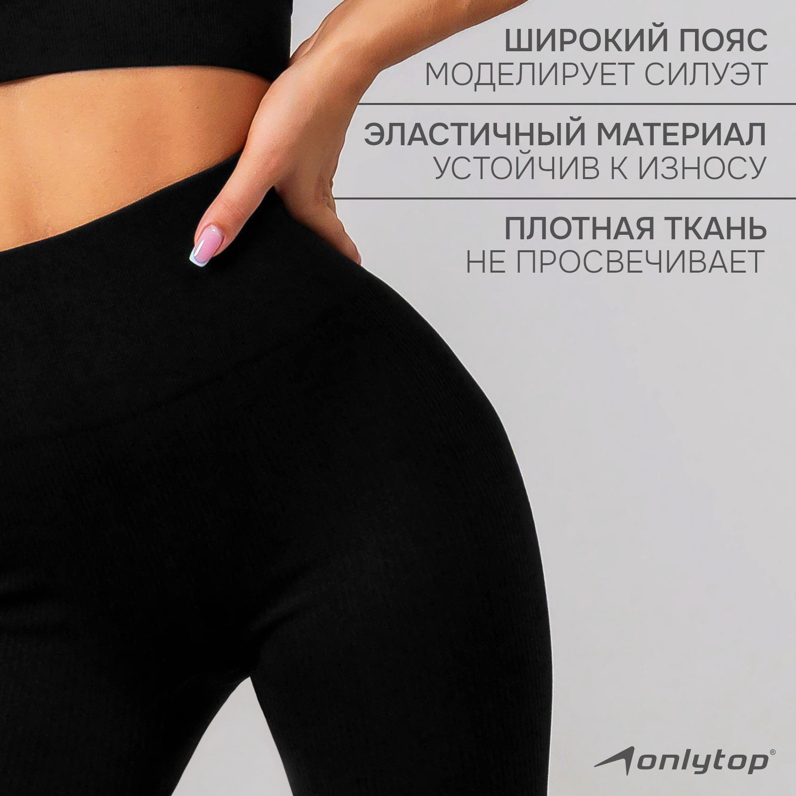Легинсы спортивные женские размер S, чёрные, ONLYTOP, Китай