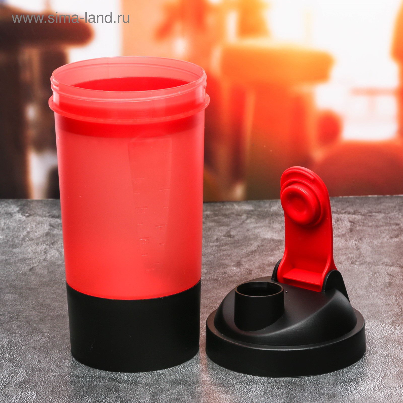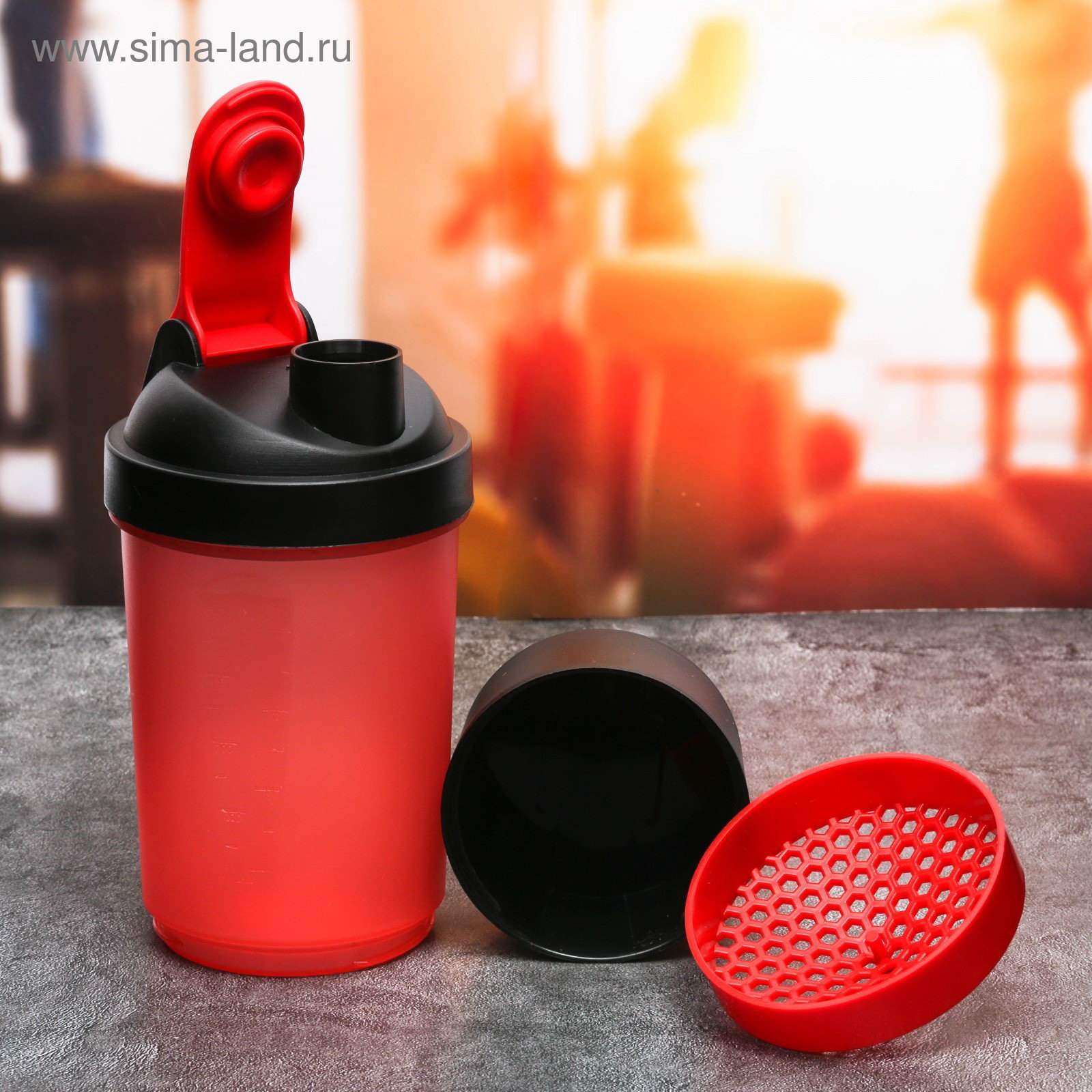 Шейкер спортивный для коктейлей и протеина, с чашей, красно-чёрный, 500 мл, 500 мл., Сима-ленд, Россия
