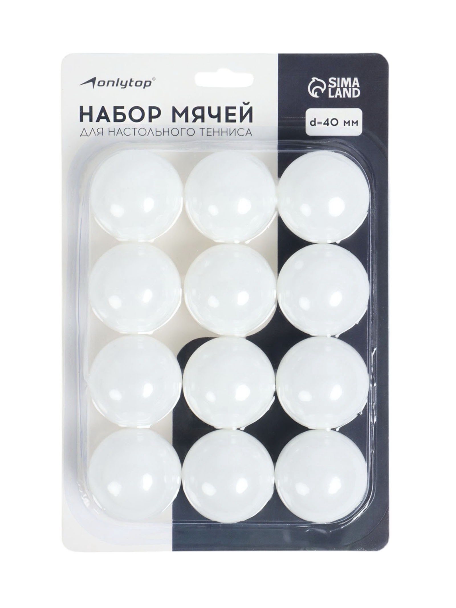 Мяч для настольного тенниса, набор 12 шт., PP, цвет белый, 400х400х4 см., ONLYTOP, Китай