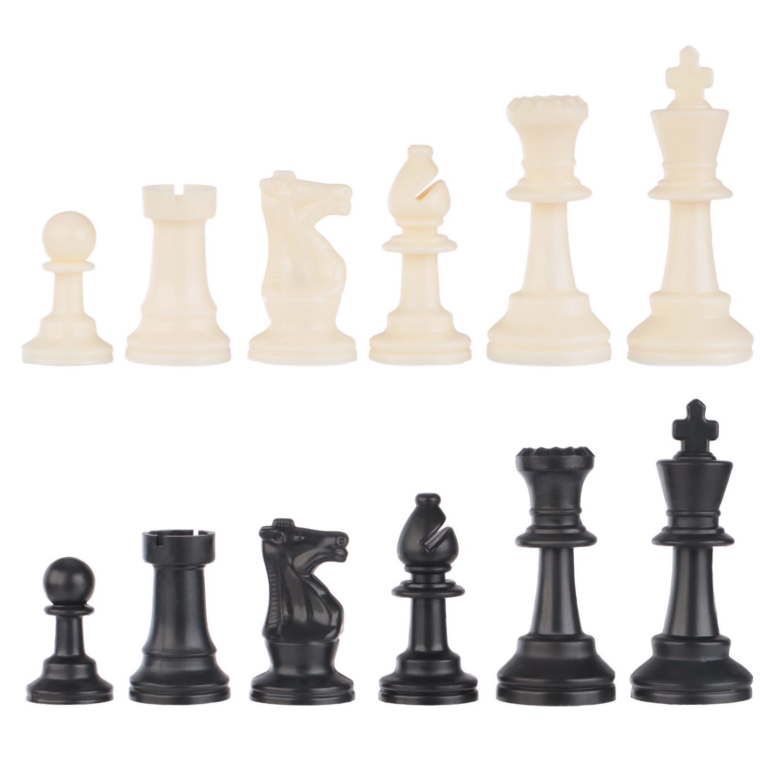 Шахматные фигуры, пластик, король h=7.5 см, пешка h=3.5 см, 17x23 см., Китай