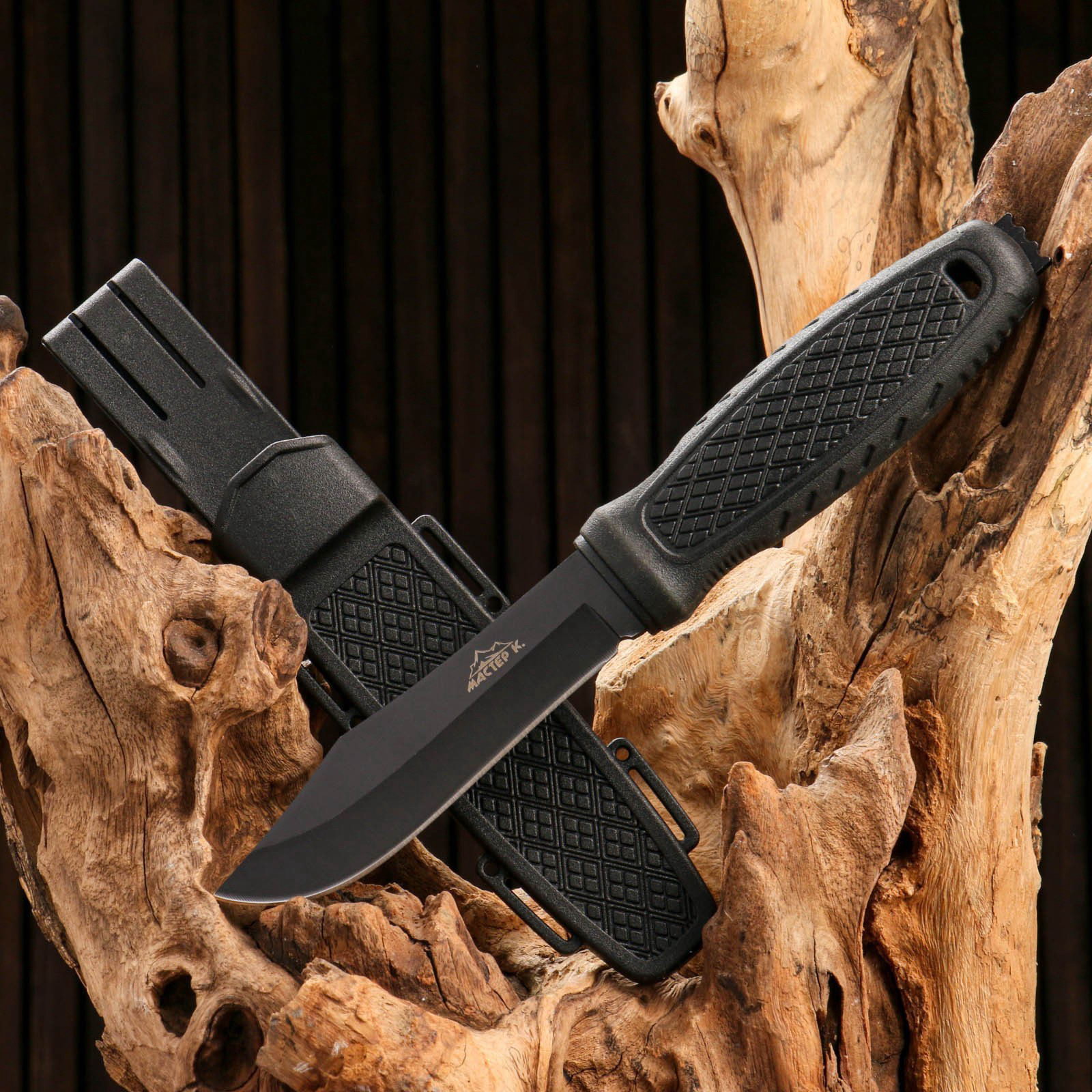 Нож тактический "Альфа", 23 см, клинок 110 мм/3 мм, со стеклобоем, черный, Мастер К, Китай