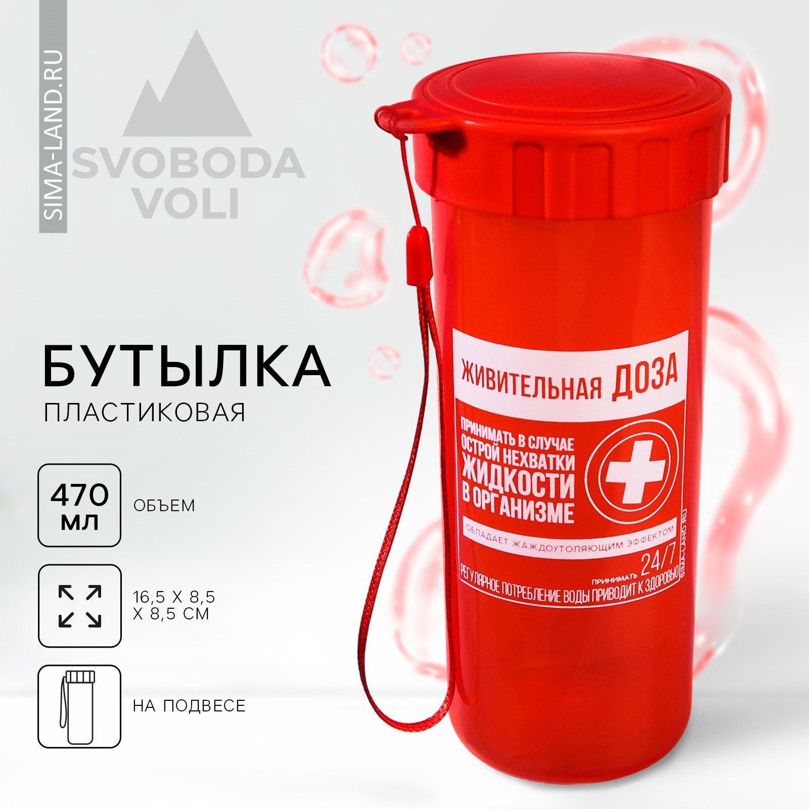 Бутылка для воды "Живительная доза", 470 мл, 8.5x16.5x8.5 см., SVOBODA VOLI, Китай
