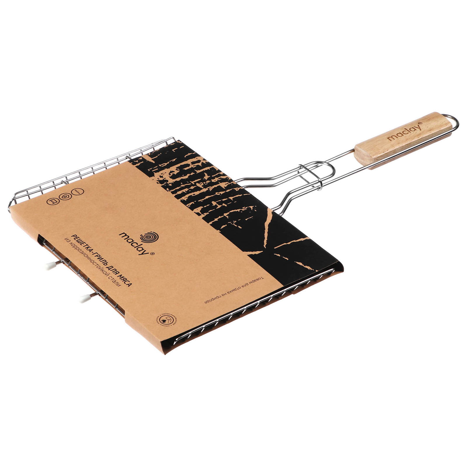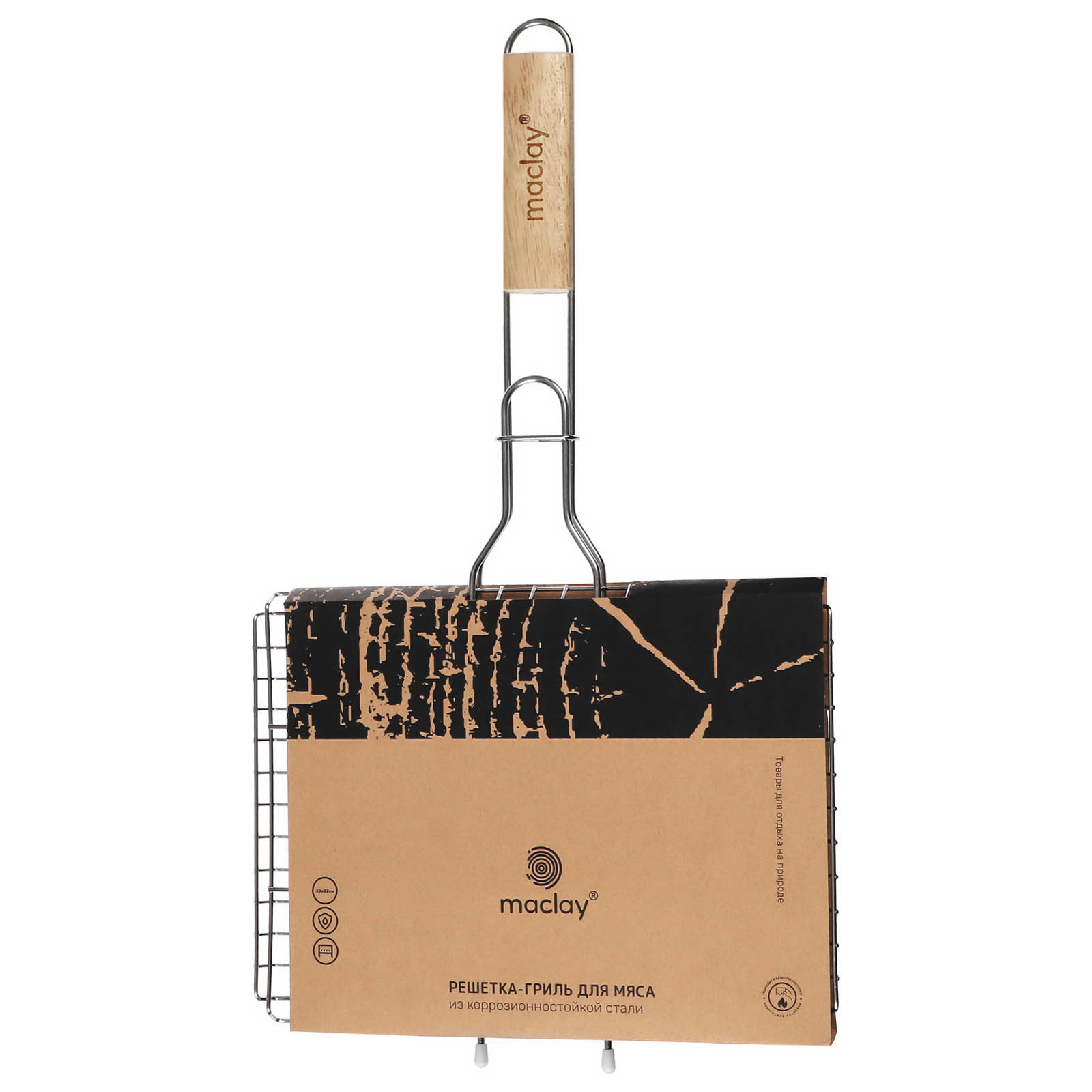 Размер упаковки: 30 x 1.5 x 51 см. Назначение: Универсальная Материал ручки: Дерево Материал рабочей части: Нержавеющая сталь Размер, см: 22 x 30 Антипригарное покрытие: Нет tnved: 7323990000 tnved: 7323990000 Решётка-гриль Maclay предназначена для приготовления мяса, овощей и рыбы на мангале. Особенности