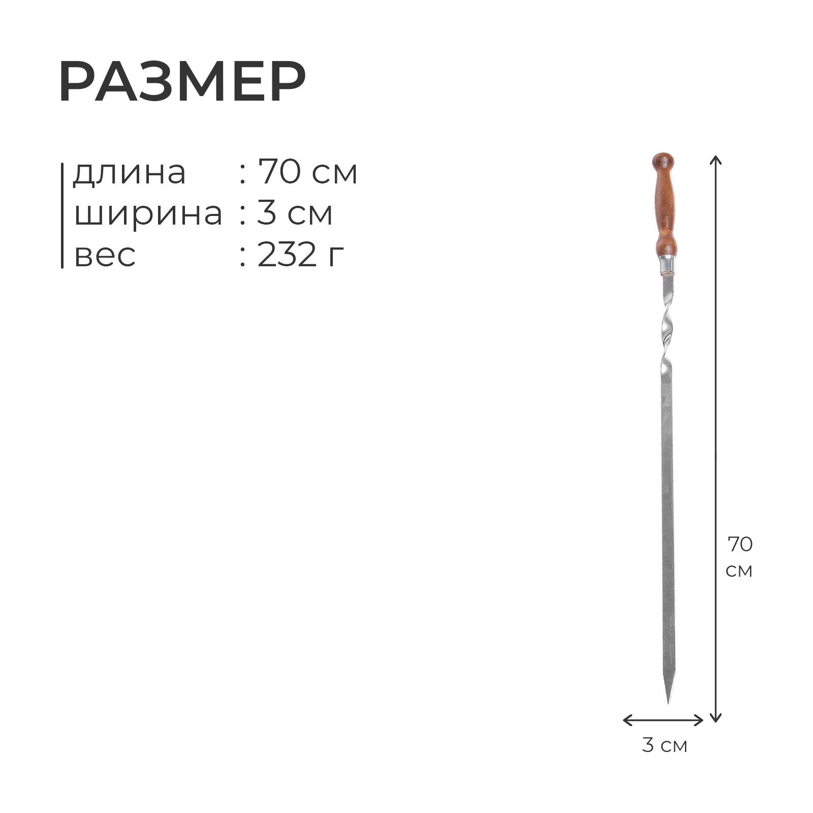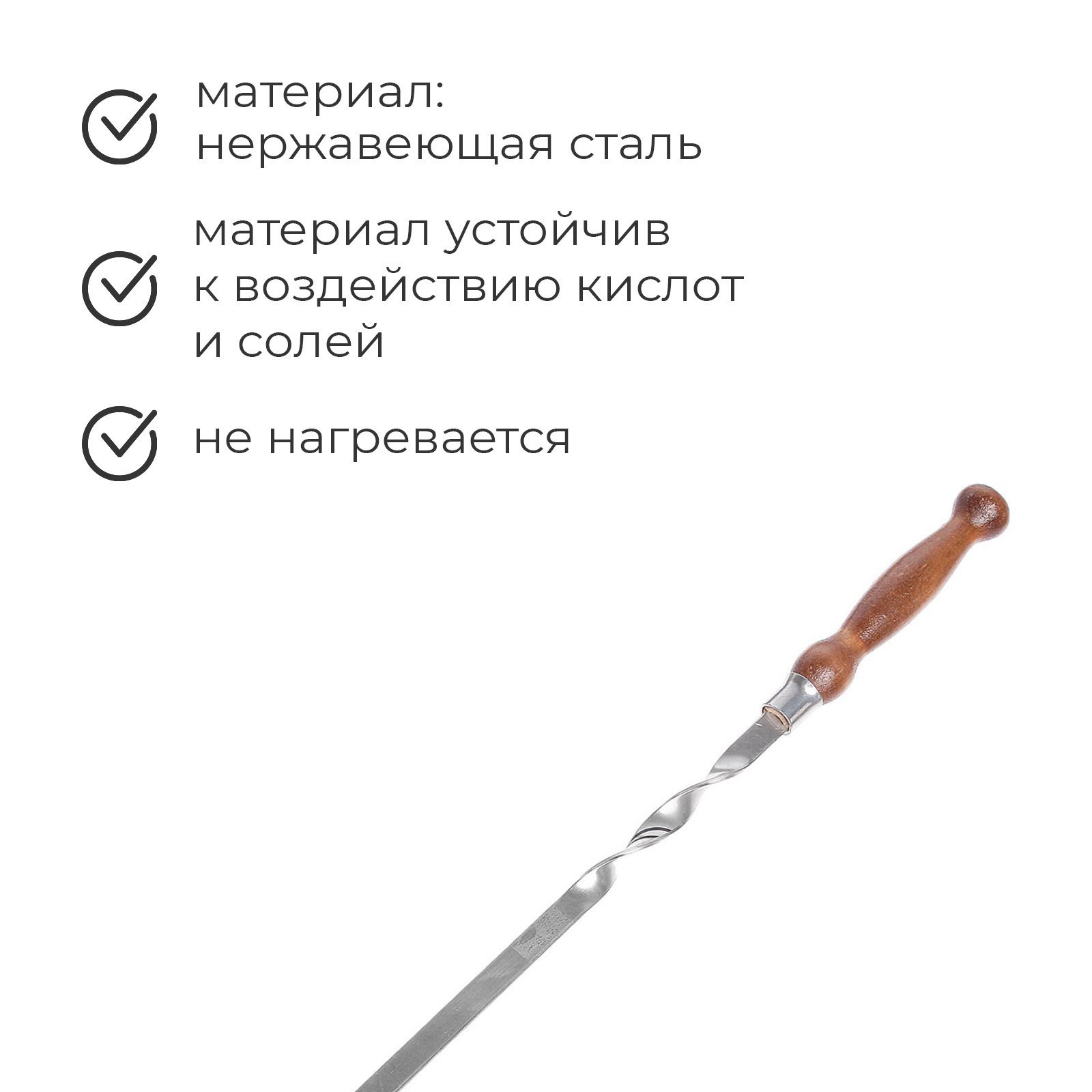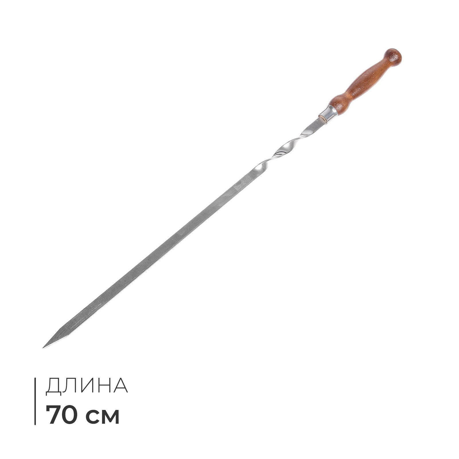 Шампур с деревянной лакированной ручкой, 64x2.5 см, Россия