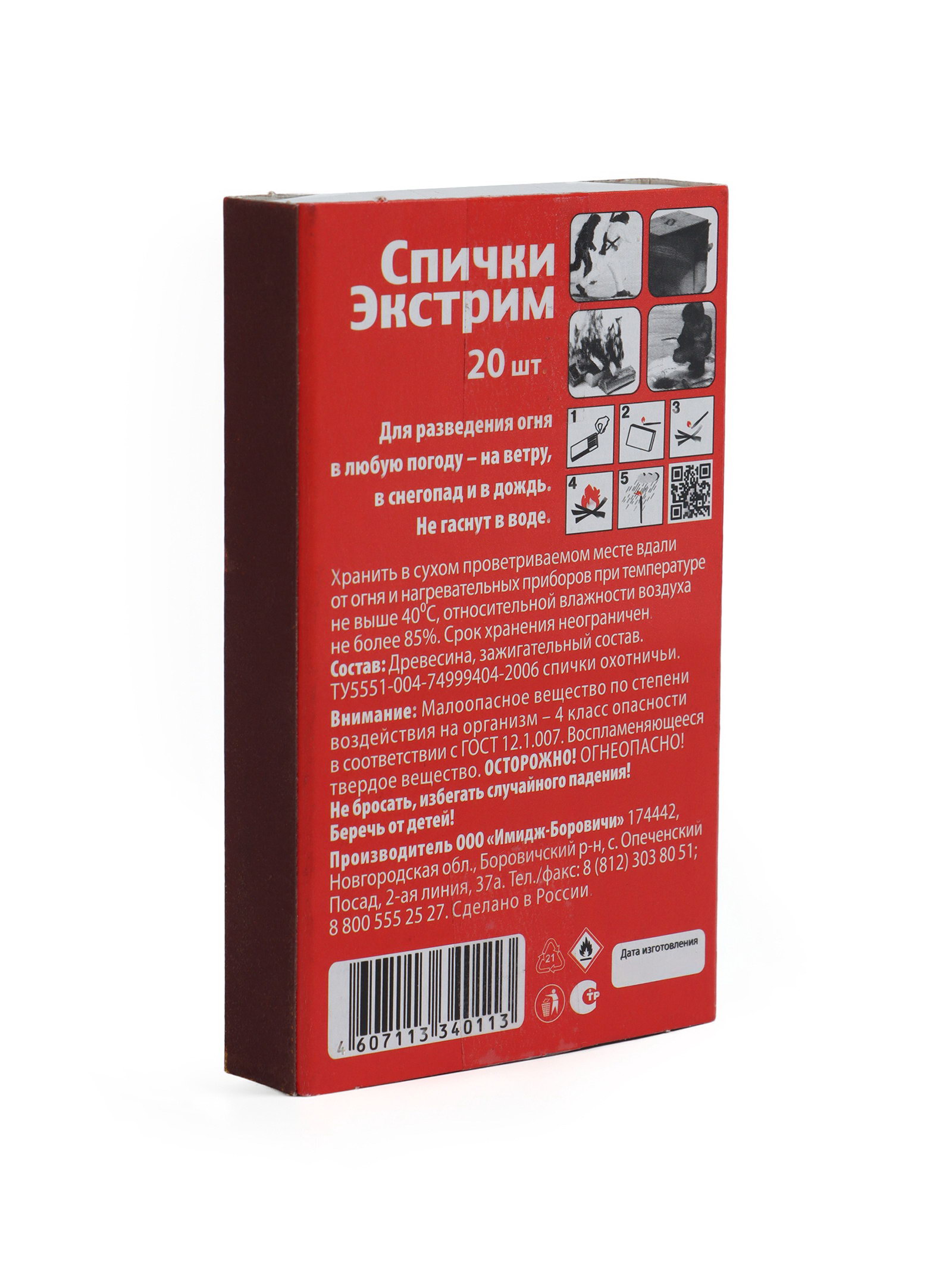 Спички охотничьи экстрим 20 шт., 8.5 см, Россия