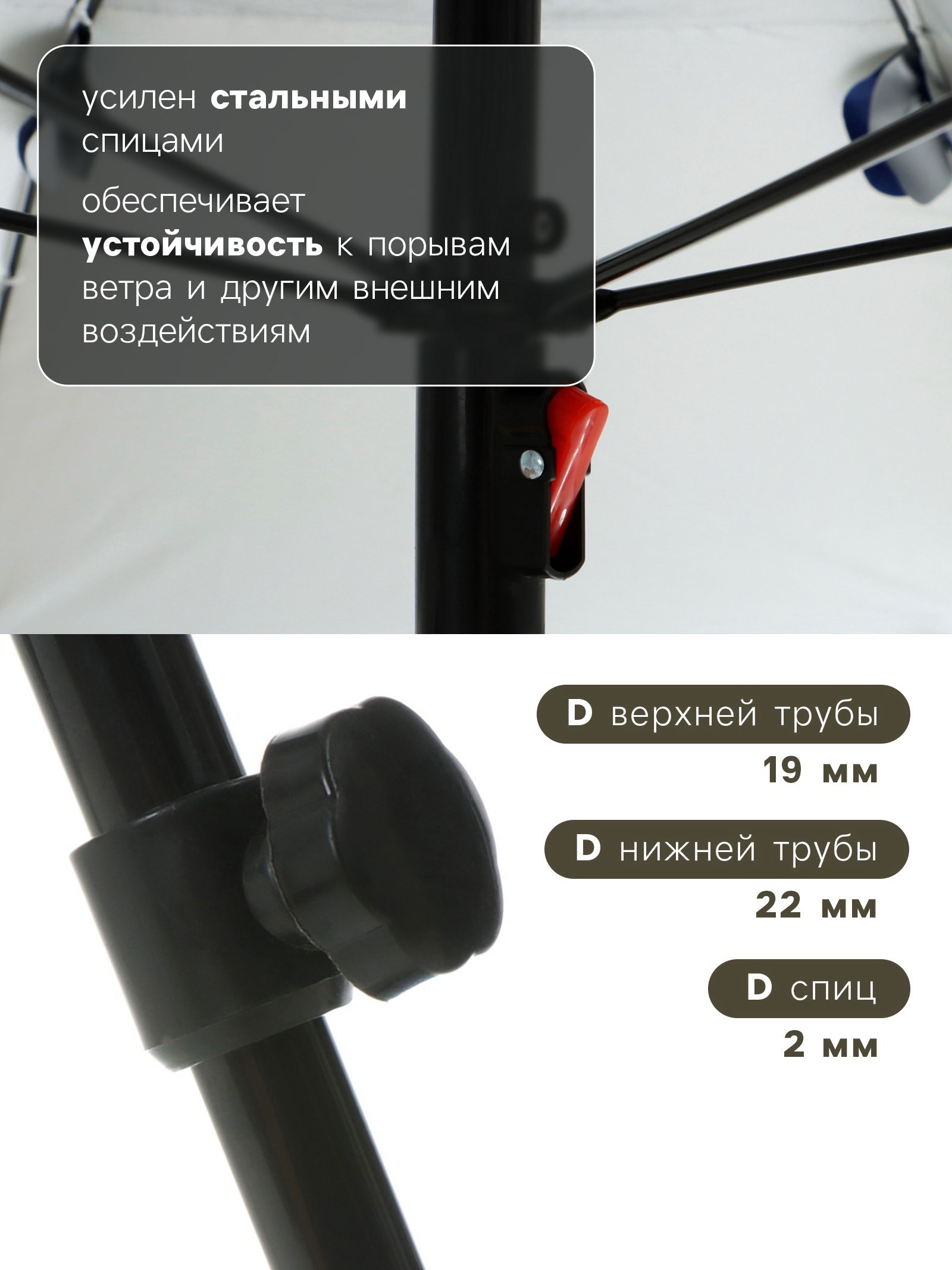 Вид: Зонты, Зонты и подставки для зонтов Диаметр стержня, мм: 19, 22 Размер упаковки: 13 x 10 x 128 см. Материал каркаса: Сталь Цвет: Серый Материал тента: Нейлон Складной: Да Высота, см: 220 С механизмом наклона: Нет С системой антиветер: Да Цвет купола: Серый tnved: 6601100000 tnved: 6601100000 Диаметр купола, см: 240 Зонт-трансформер maclay создан для комфортного отдыха под солнцем. Купол серого цвета из прочного Оксфорда с тефлоновым покрытием обеспечивает надежную защиту от УФ-излучения. Стальной каркас и складная конструкция делают зонт устойчивым и удобным для транспортировки. Зонт можно установить вертикально, закрепив его на подставке, или же расположить на земле с опорой на 2 грани, тем самым увеличив площадь защиты от солнца. Преимущества