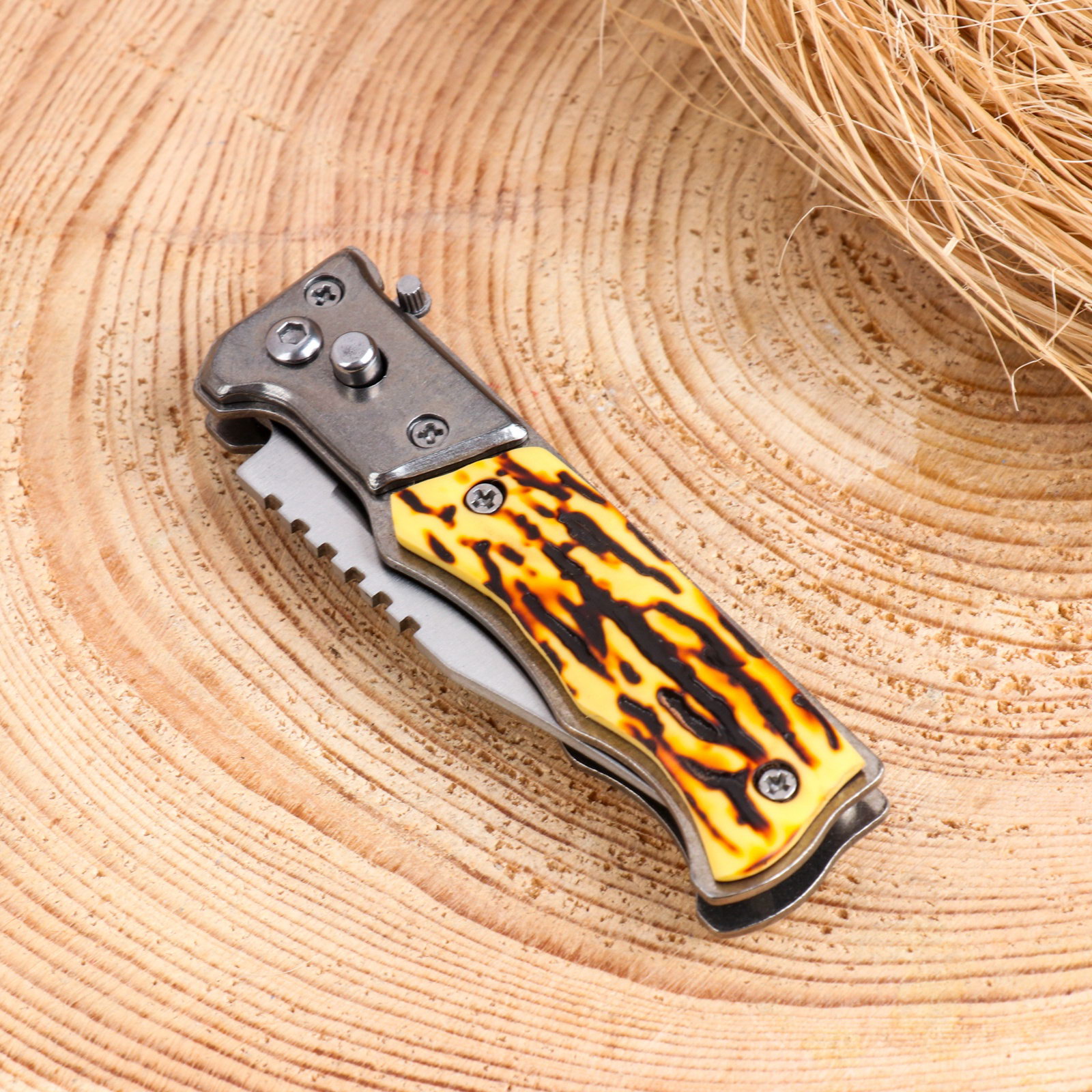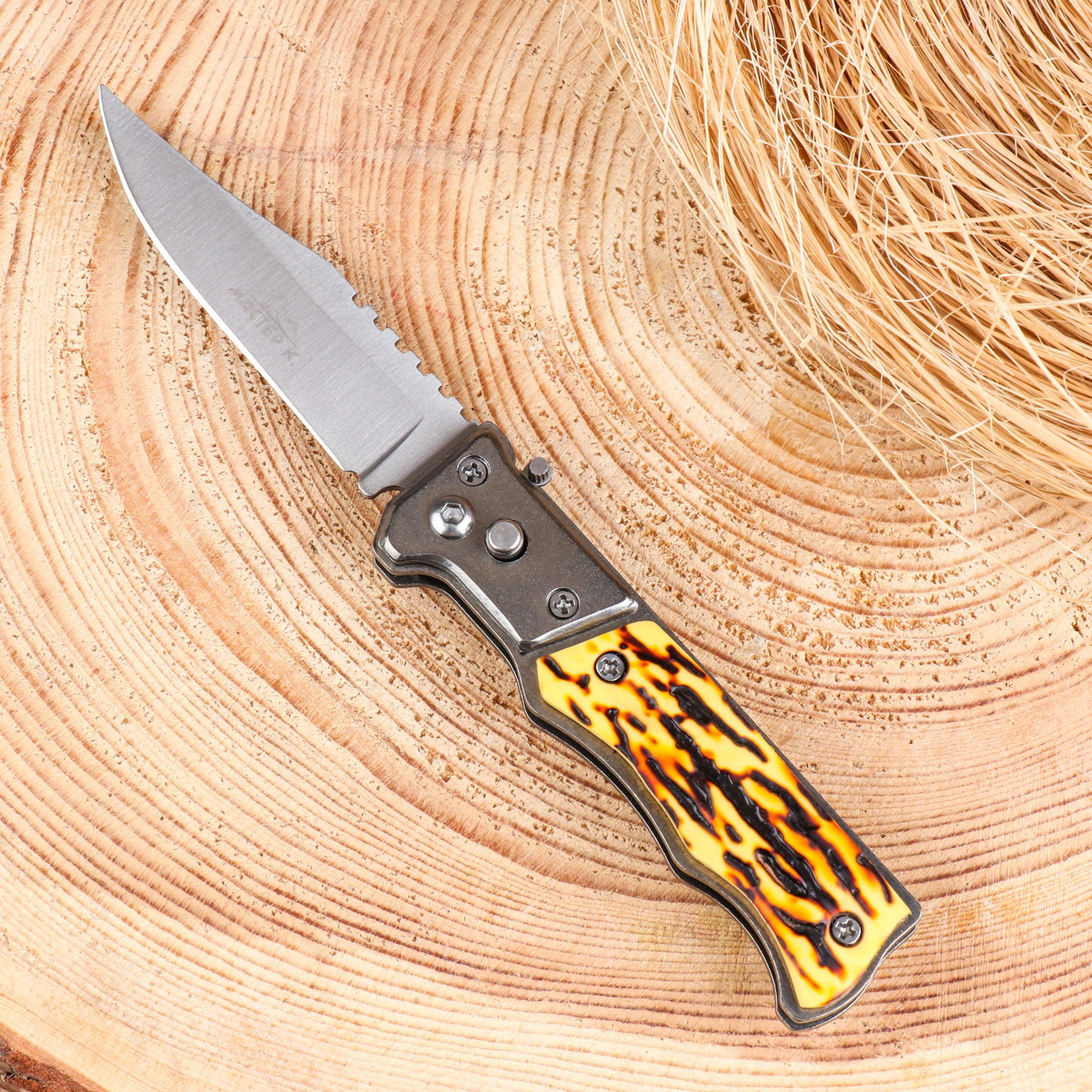 Материал ручки: Металл, Пластик Размер упаковки: 3 x 2 x 9.5 см. tnved: 8211930000 Цвет рукоятки: Жёлтый Тематика праздника: 23 Февраля Твёрдость лезвия, HRC: 55 Фиксатор: Да Длина лезвия, см: 7 Тип ножа: Складной автоматический Сталь: 3CR13 | ||