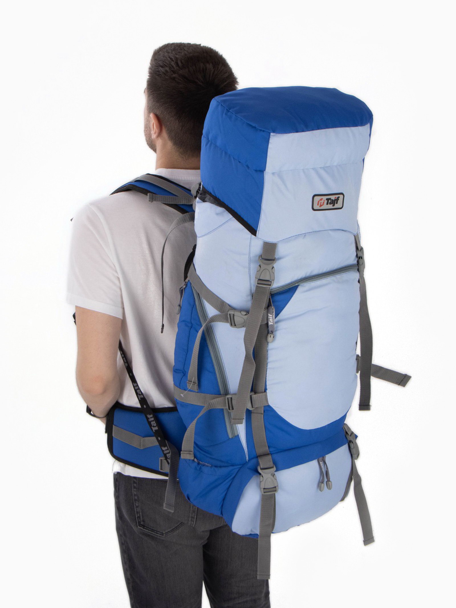 Рюкзак туристический 65 литров, с поясным ремнём, с карманами, голубой/васильковый, 21x32x83 см., Taif, Россия
