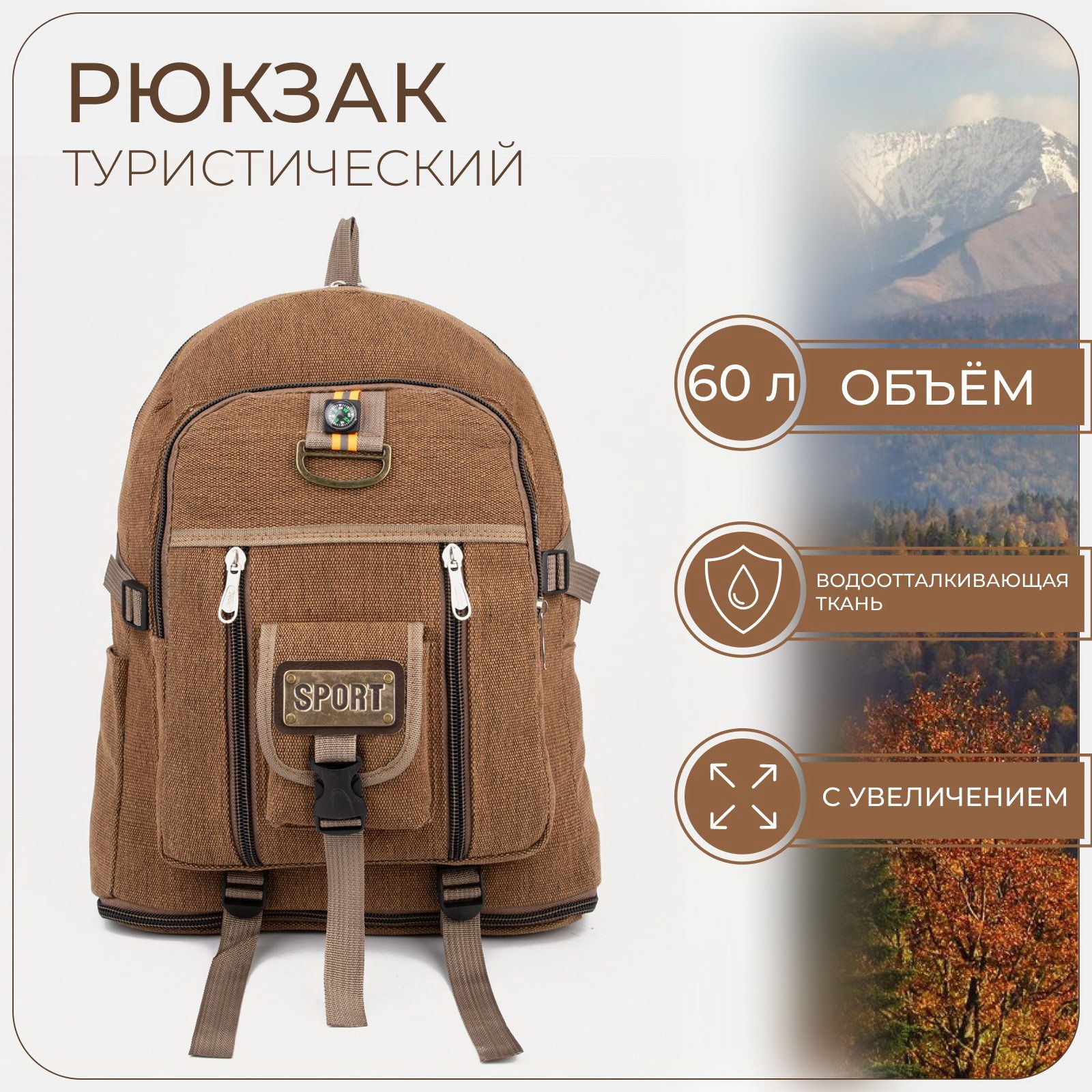 Рюкзак туристический, 60 л, отдел на молнии, наружный карман, цвет коричневый, 12x33.5x58 см., Китай