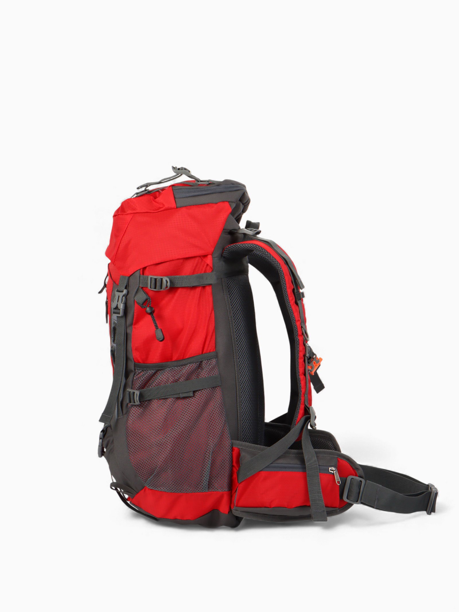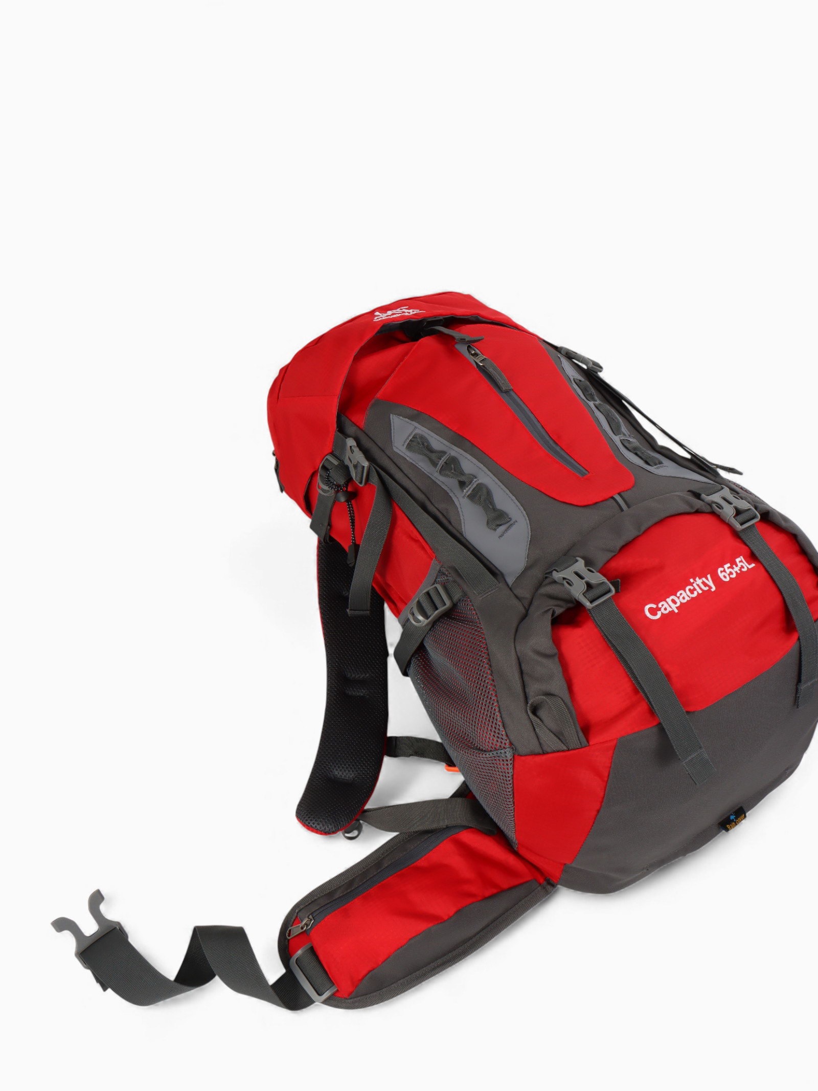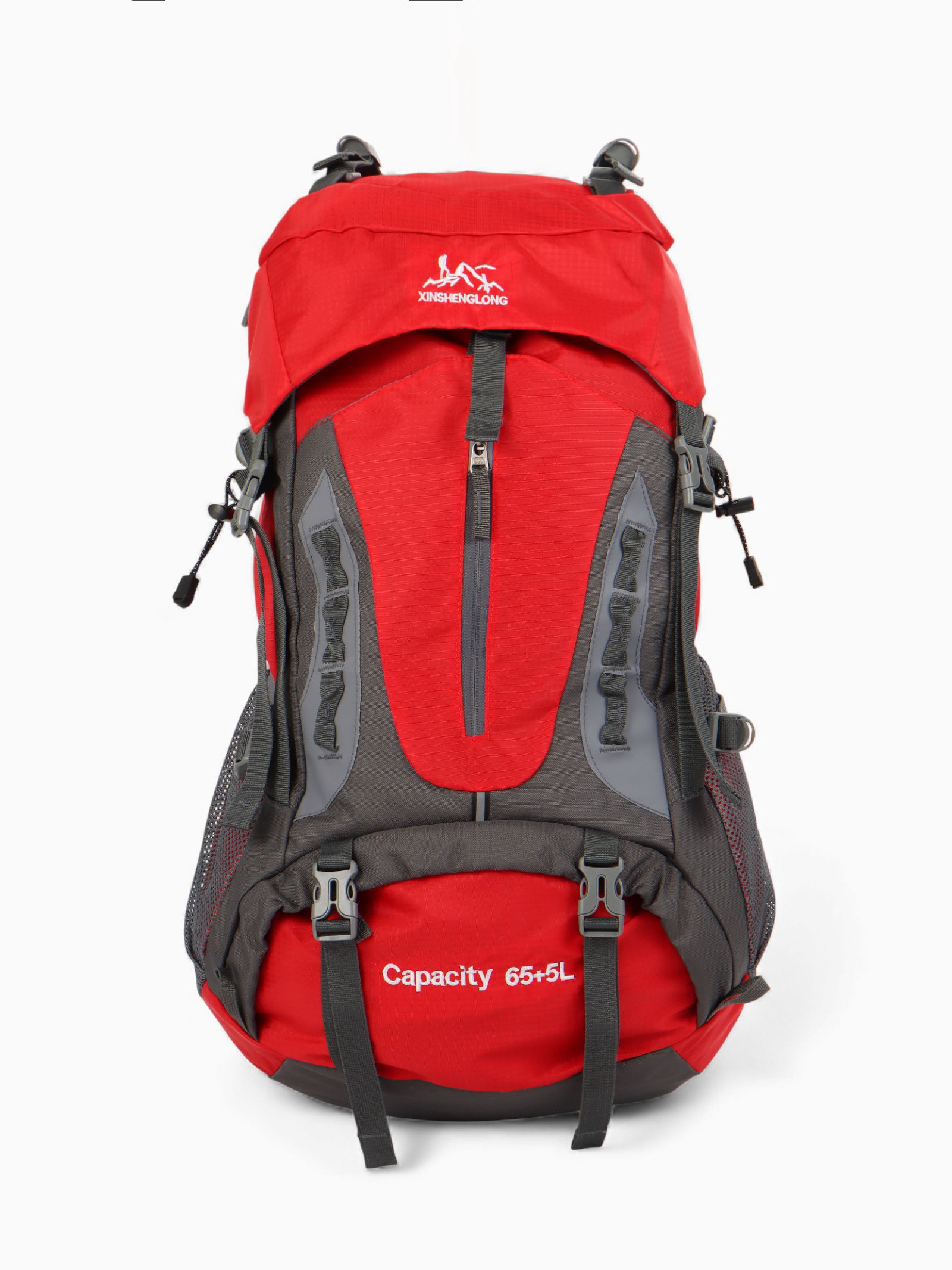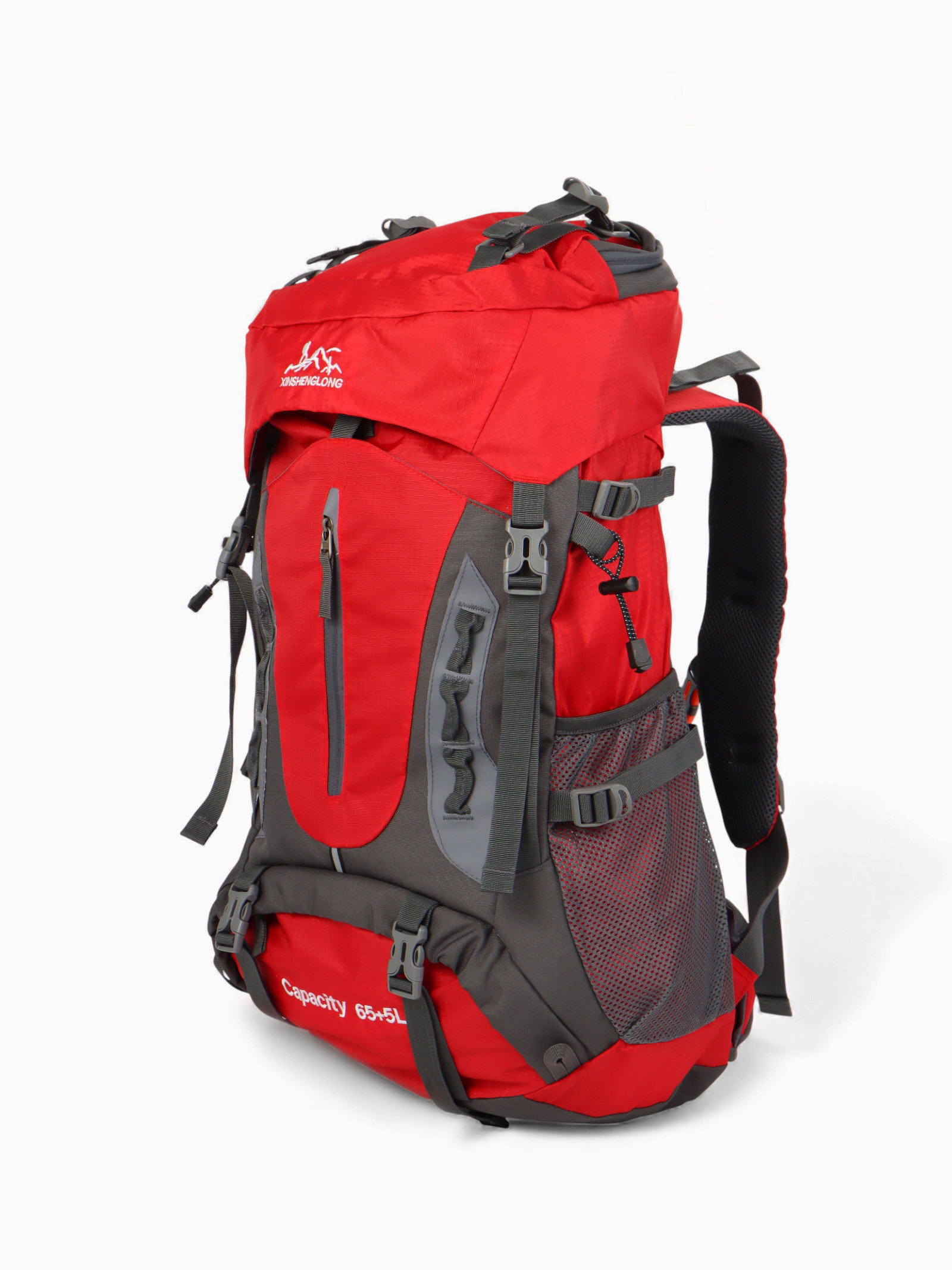 Рюкзак туристический, 65+5 литров, отдел на шнурке, 5 наружных карманов, 2 внутренних кармана, красный, 20x30x53 см., Китай