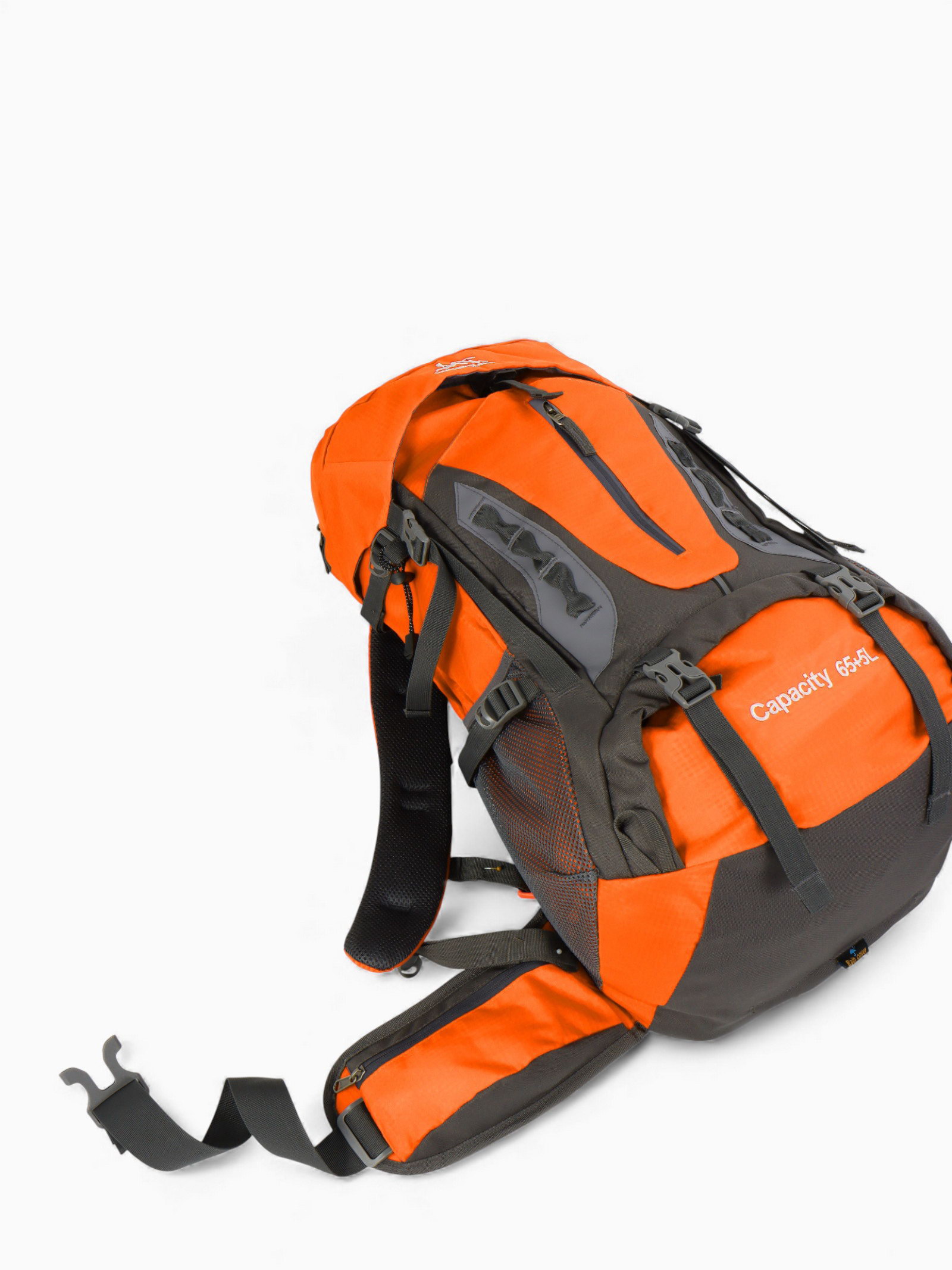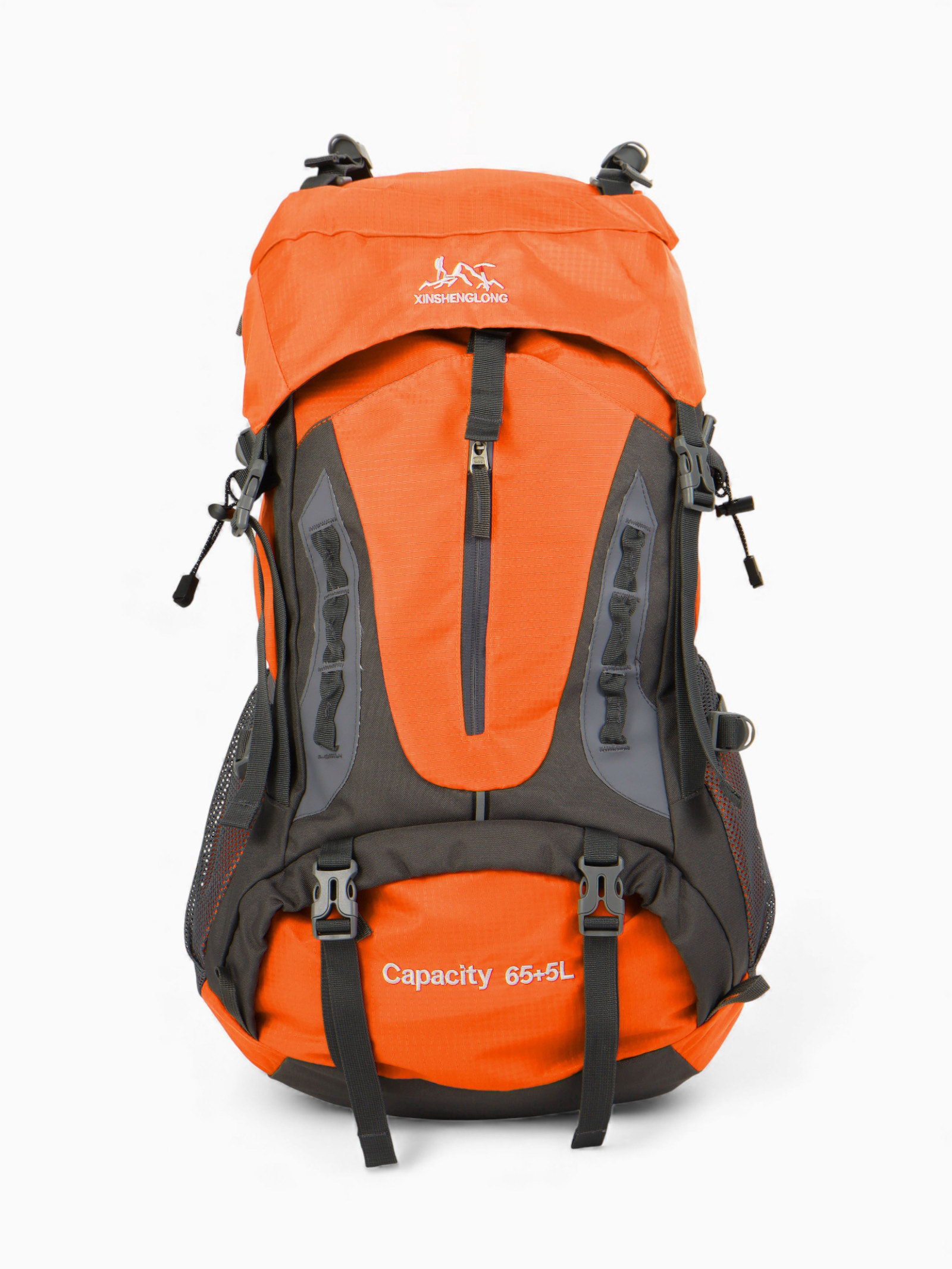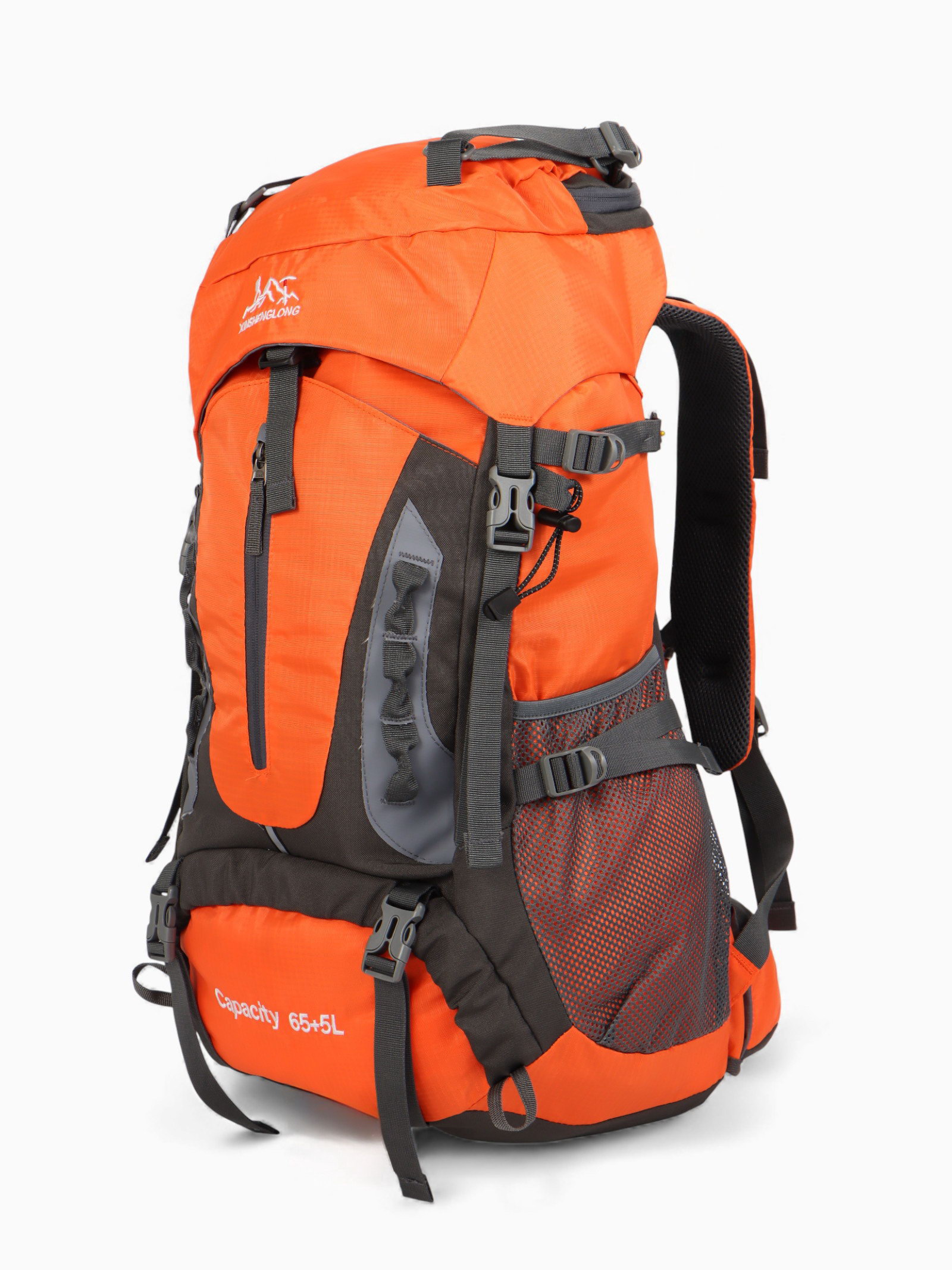 Рюкзак туристический, 65+5 литров, отдел на шнурке, 5 наружных карманов, 2 внутренних кармана, оранжевый, 20x30x53 см., Китай