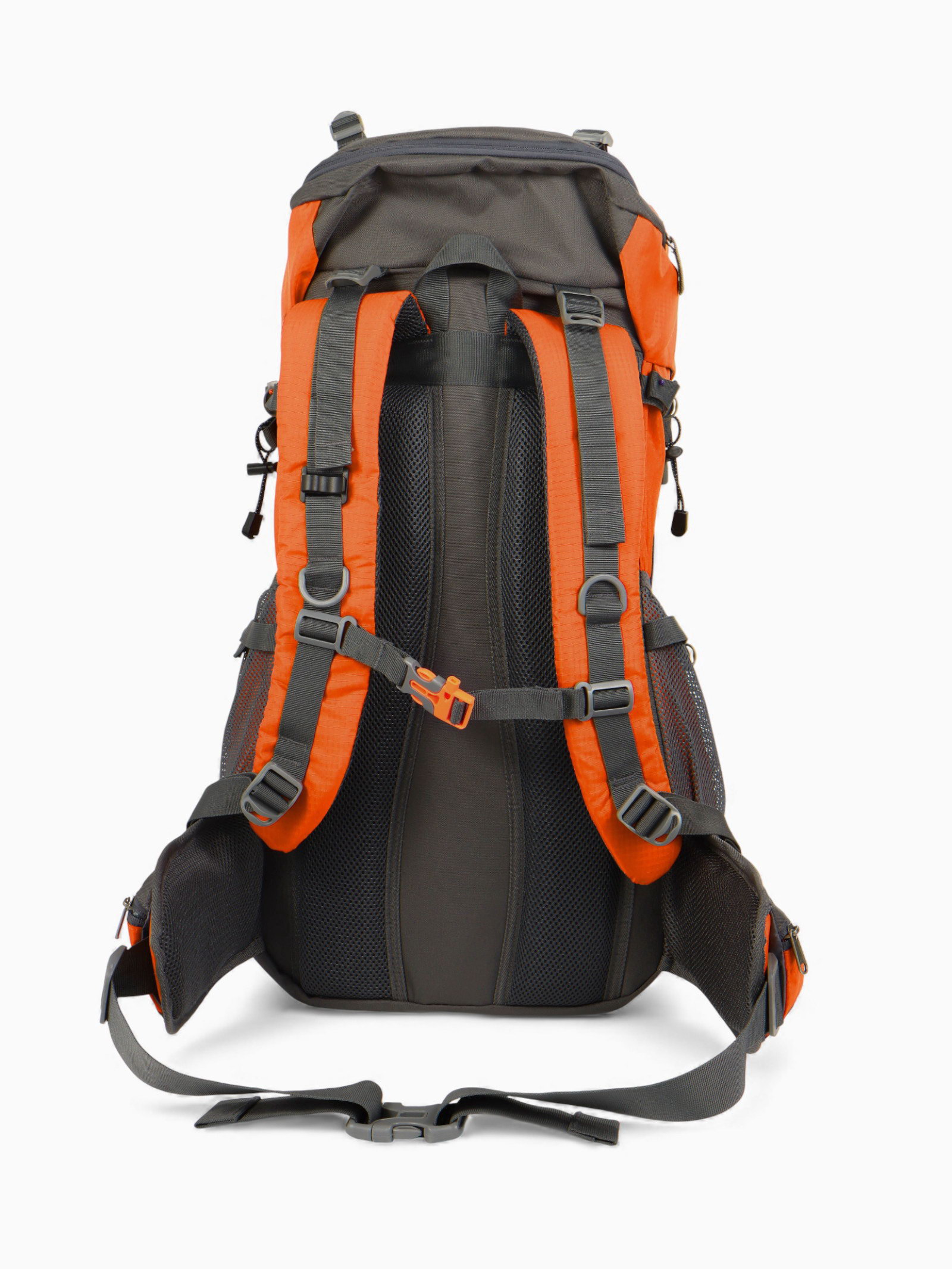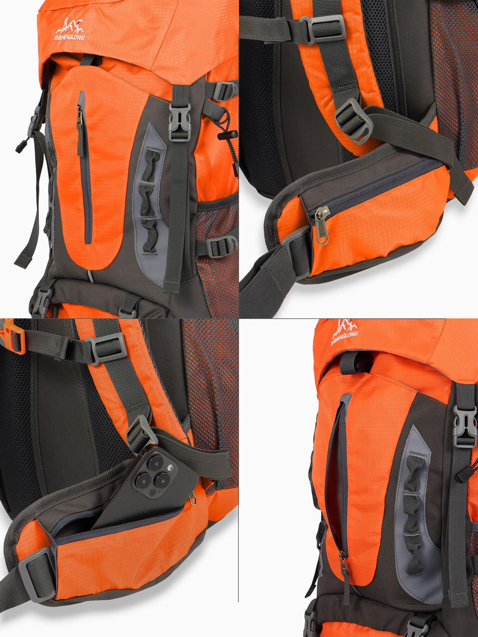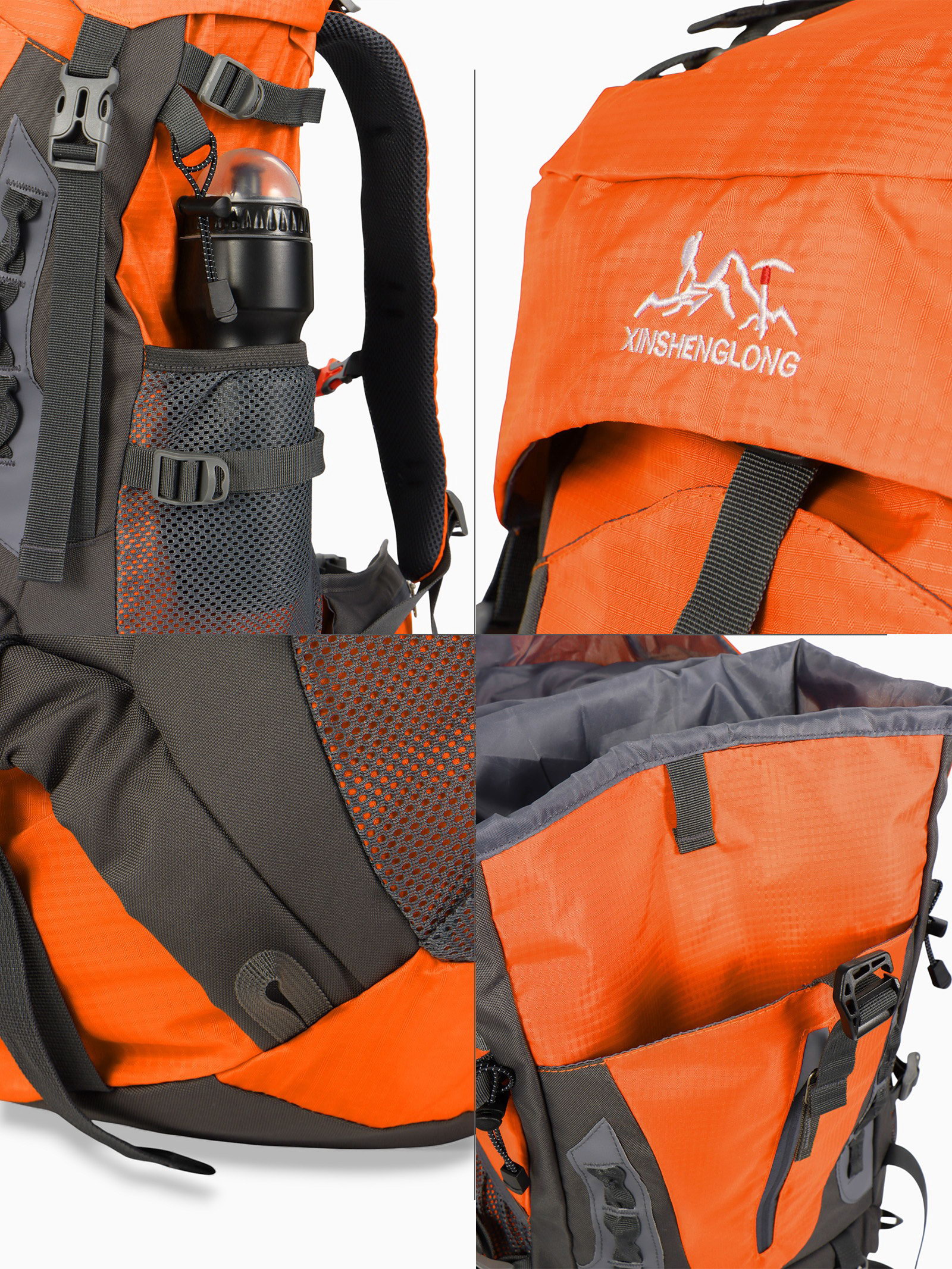 Рюкзак туристический, 65+5 литров, отдел на шнурке, 5 наружных карманов, 2 внутренних кармана, оранжевый, 20x30x53 см., Китай