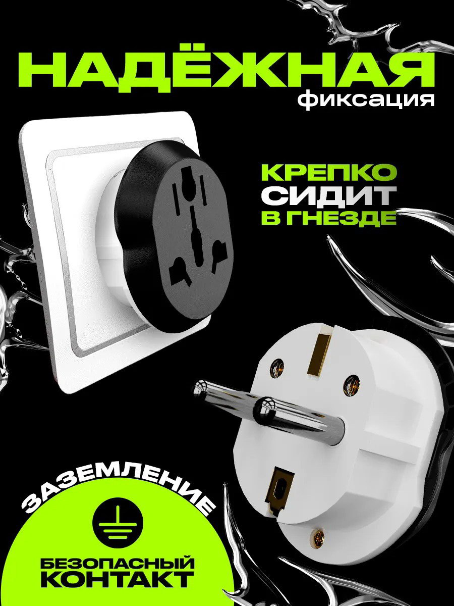 Переходник универсальный 16 А, с заземлением, 220 В, евровилка, заподлицо, чёрно-белый, 5x5.5x5 см., Китай