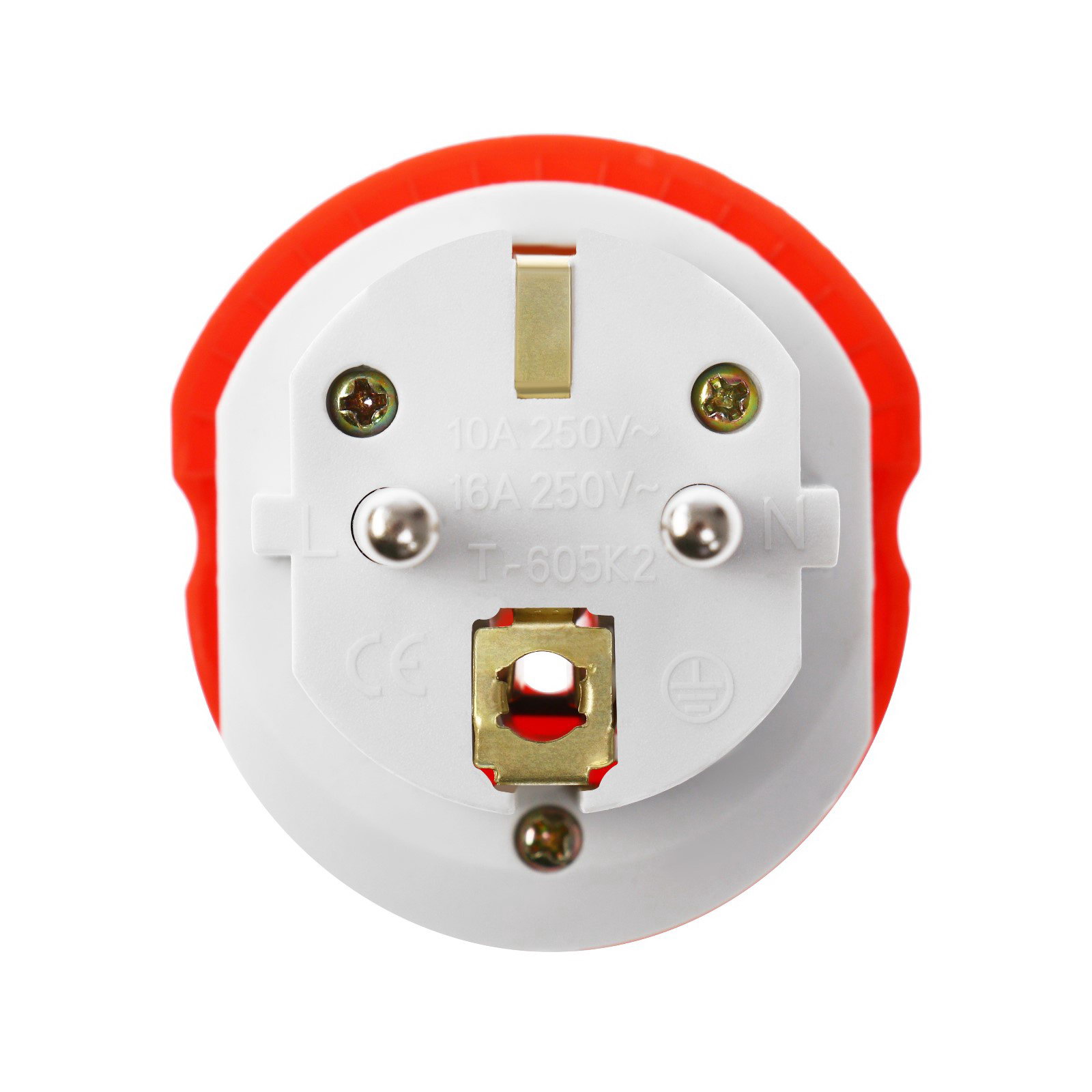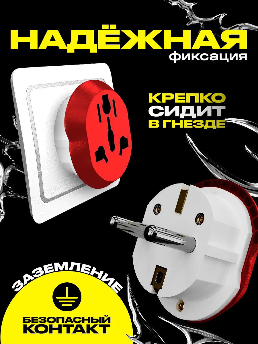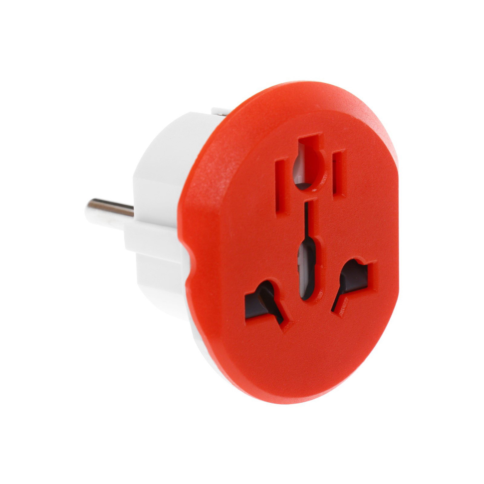 Переходник универсальный 16 А, с заземлением, 220 В, заподлицо в розетку, красный, 3x3x3 см., Китай