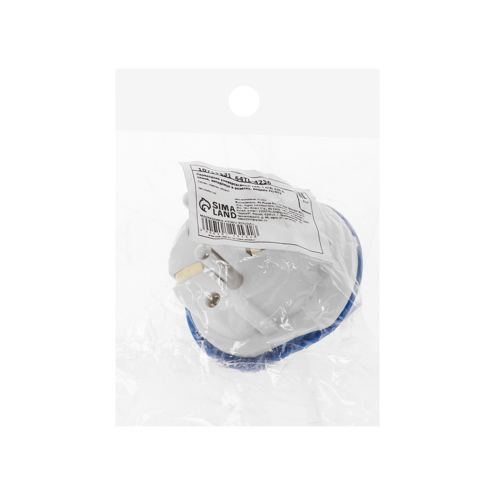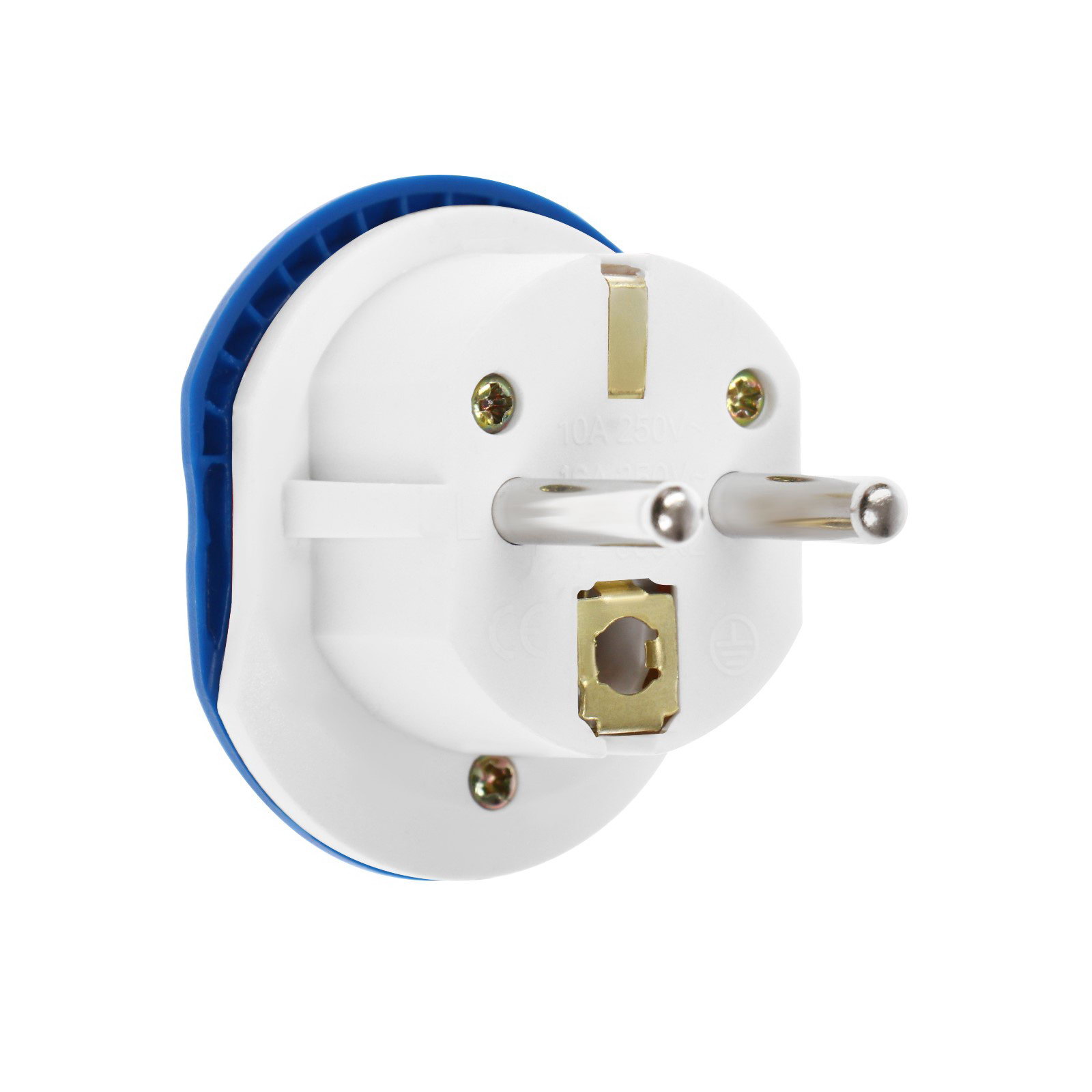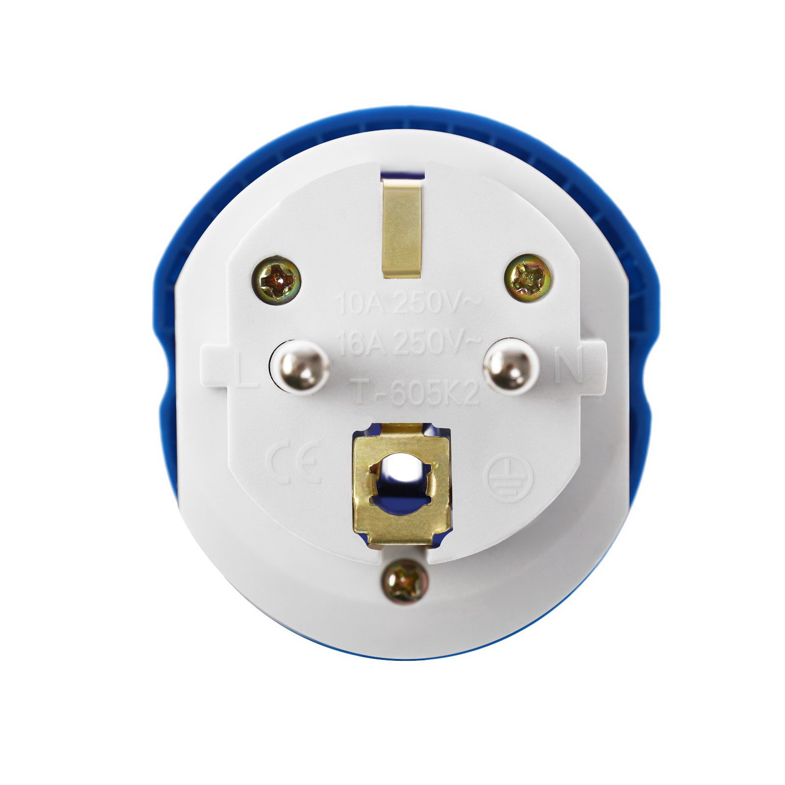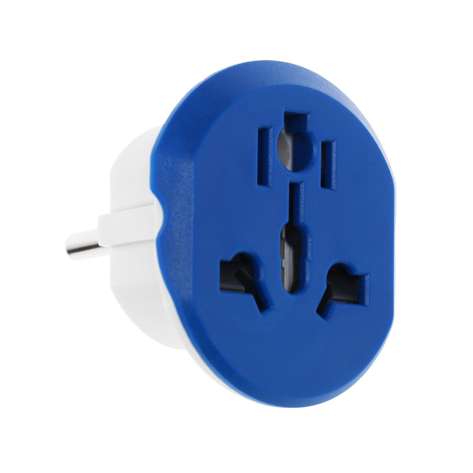 Переходник универсальный 16 А, с заземлением, 220 В, заподлицо в розетку, синий, 3x3x3 см., Китай