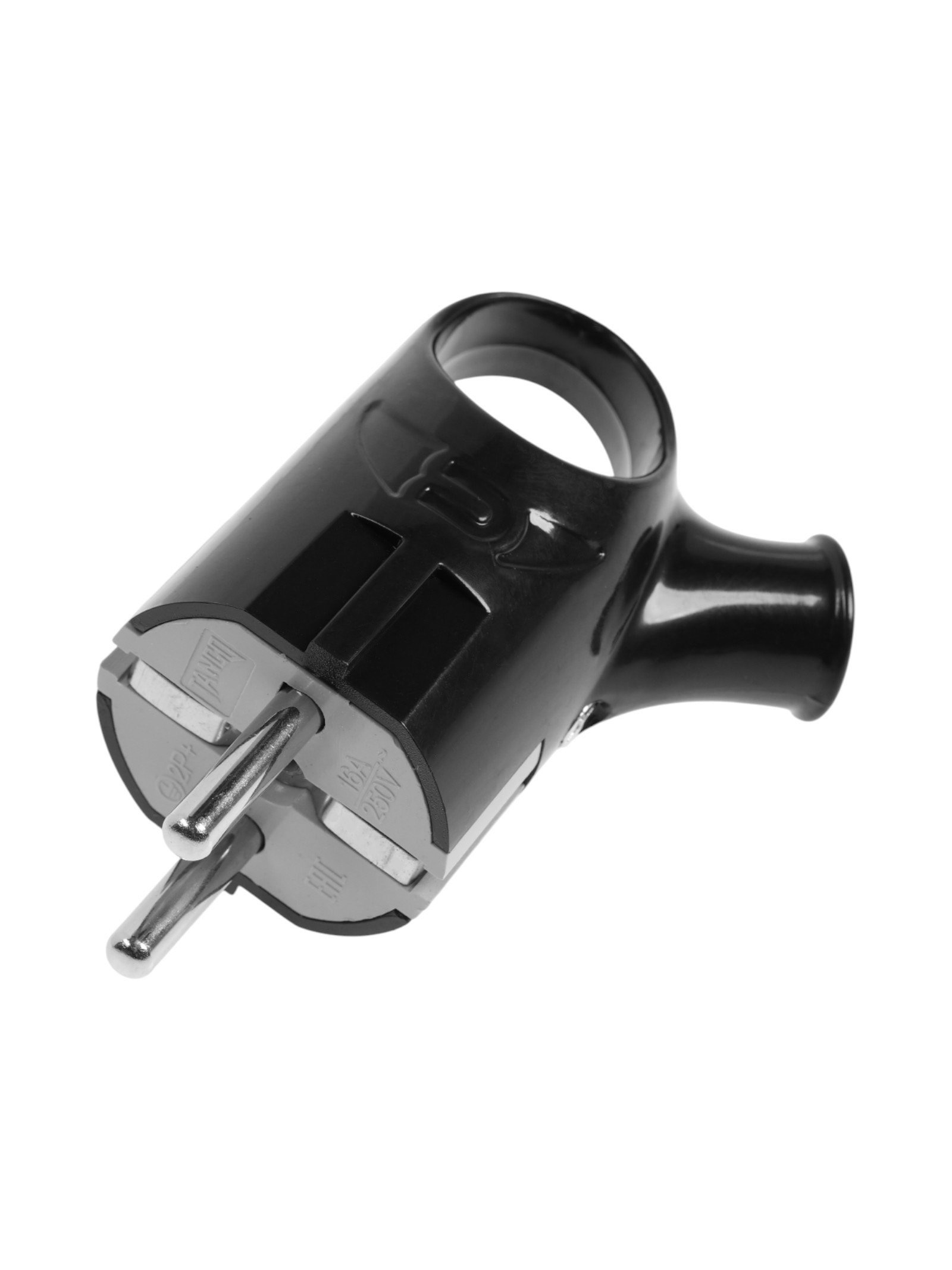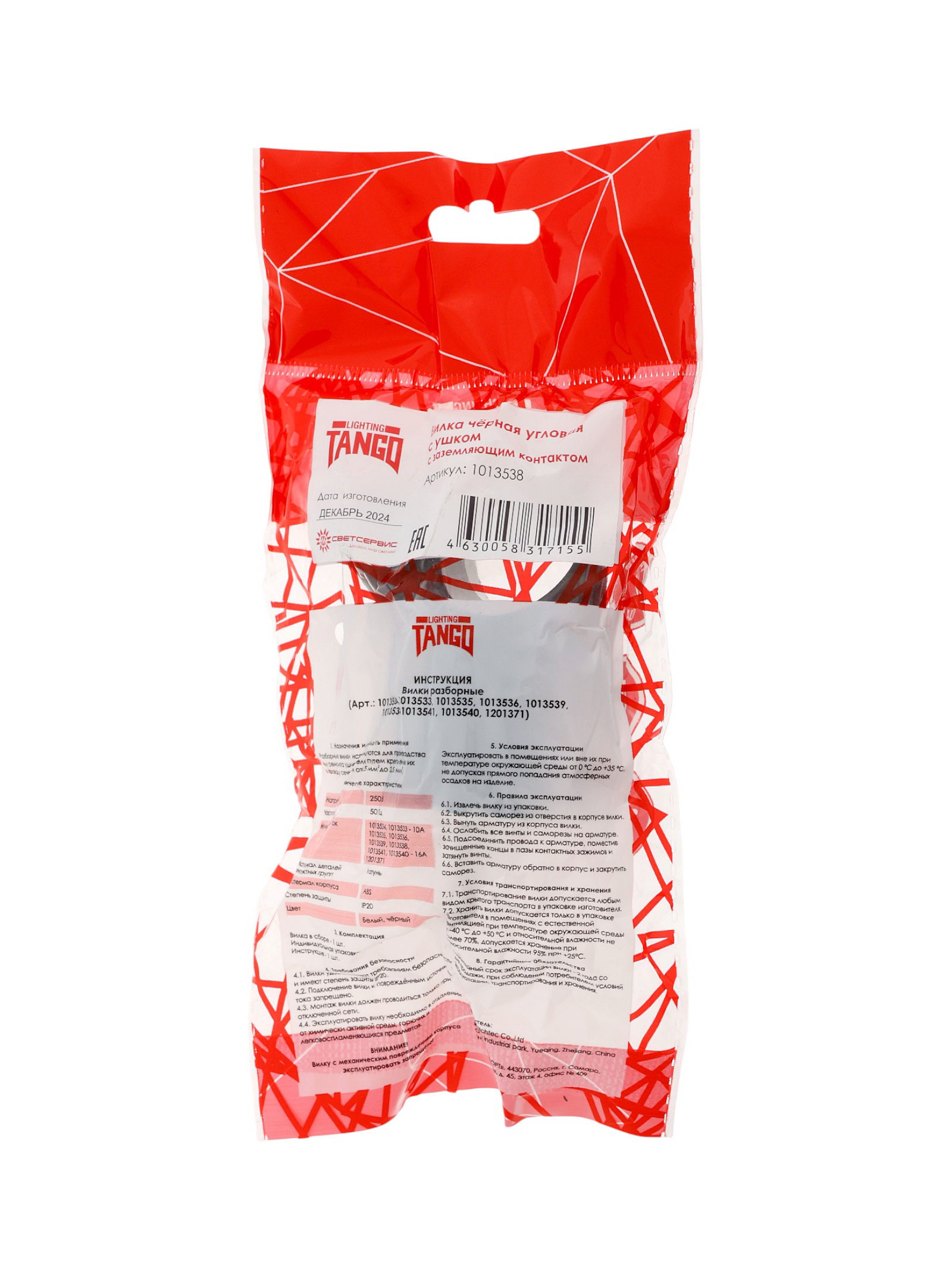 Вилка угловая с ушком 16 А, 250 В, IP20, с заземлением, чёрная, Tango, Китай
