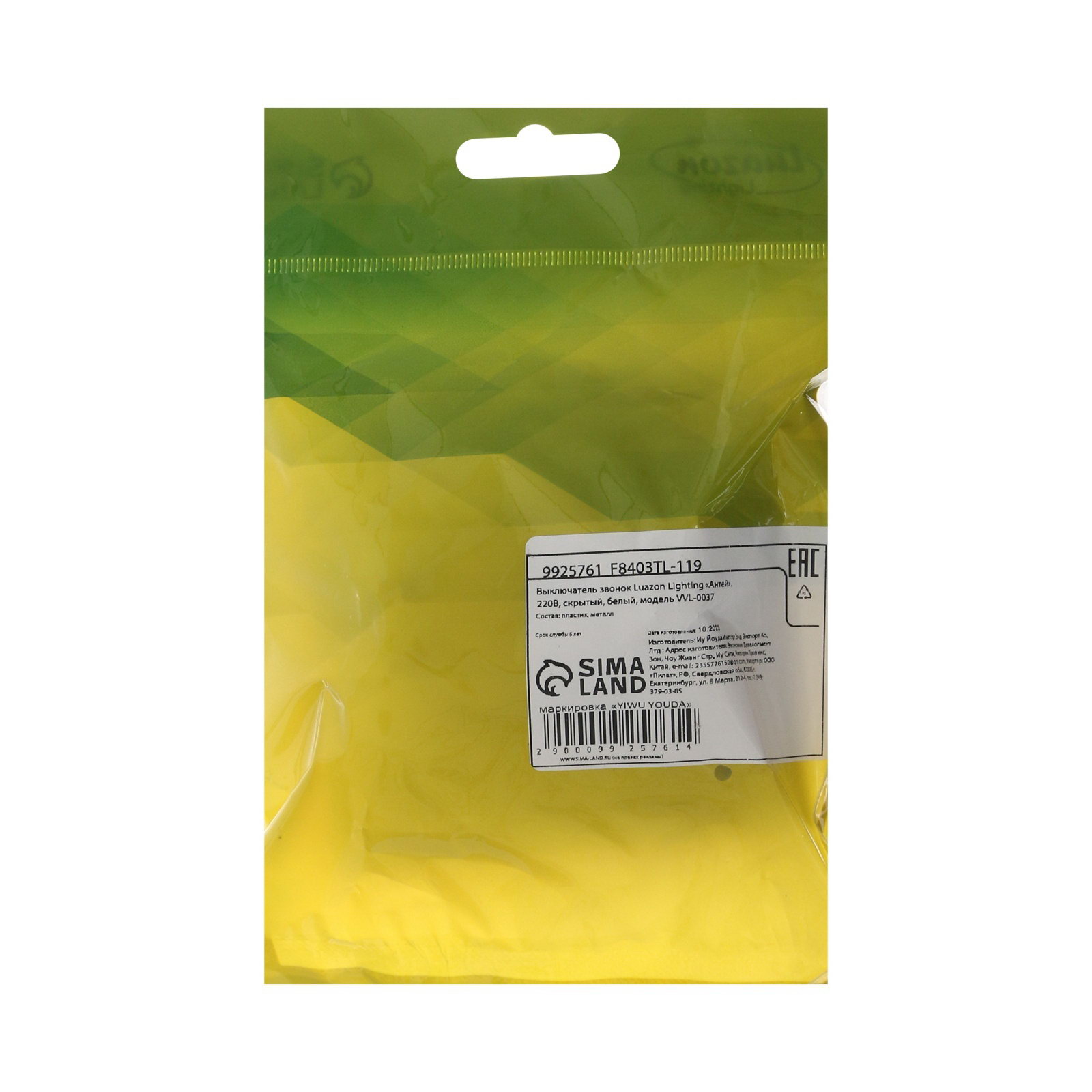 Размер упаковки: 9 x 3.5 x 8.5 см. Индикация: Нет С рамкой: Да Степень защиты: IP20 Способ монтажа: Скрытый Цвет: Белый tnved: 8536500700 Гарантийный срок, мес.: 12 | ||