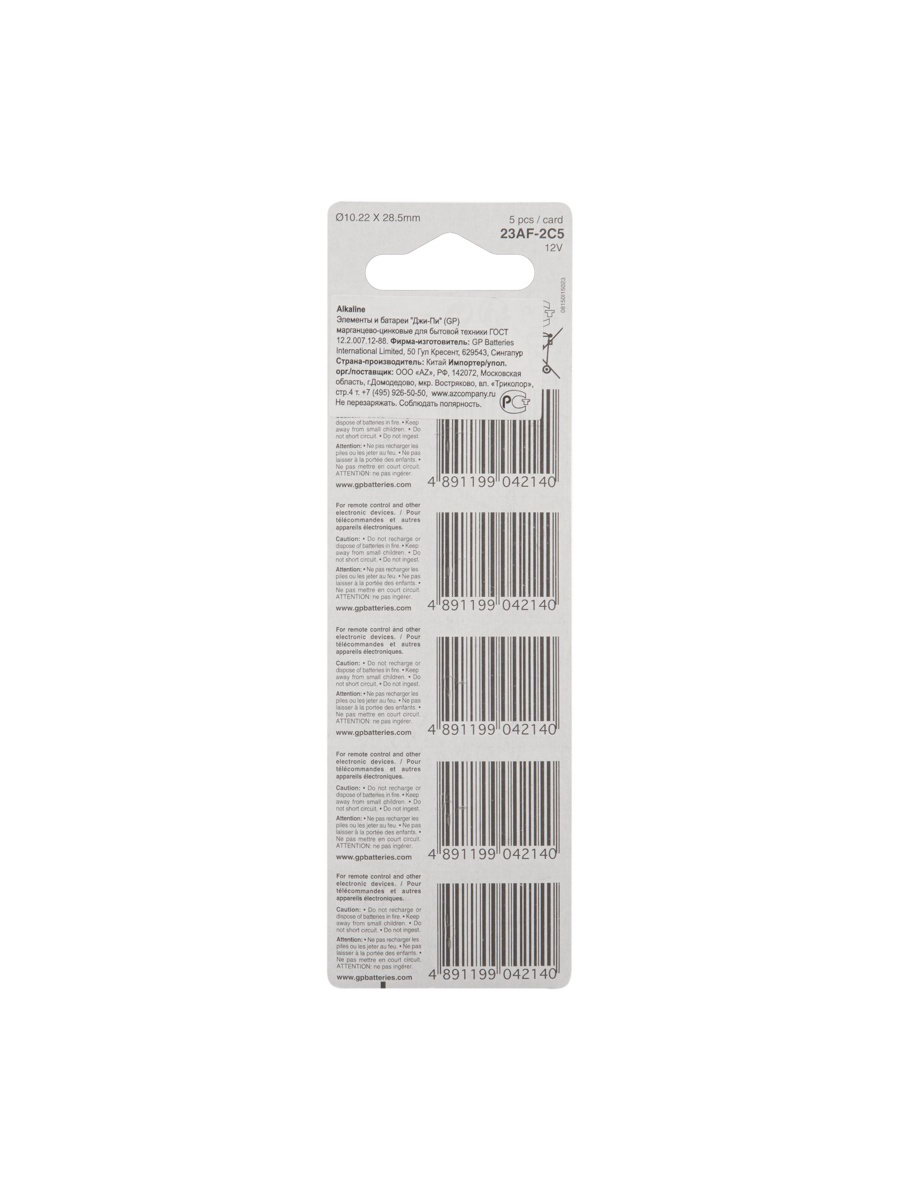 Размер упаковки: 5 x 1 x 16.5 см. Типоразмер батареек: MN21 (A23, K23A, LRV08, LRV8) Вид упаковки: Блистер Тип батарейки: Алкалиновая В упаковке, шт.: 5 Напряжение, В: 12 Температура эксплуатации, °C: От -20 до 50 °C Температура эксплуатации, °C: От -20 до 50 °C tnved: 8506101000 Гарантийный срок, мес.: 12 Батарейки типоразмера А23 используют в миниатюрных электронных девайсах, которые требуют напряжения питания 12 В. Это пульты дистанционного управления, брелоки автосигнализации, бесконтактные ключи, зажигалки. Элементы меньше батареек AAA: их применяют в самых компактных приборах. По типу электролита они являются щелочными, поэтому подходят для любых устройств: от тех, которые не создают долговременных и интенсивных нагрузок, до потребляющих значительный ток. Одна такая батарейка состоит из 8 кнопочных элементов (обычно LR932). Срок хранения составляет от 3 до 5 лет. Высоковольтные батарейки по выгодной цене! Элементы питания серии Ultra Alkaline обладают улучшенной марганцево-цинковой системой и теряют не более 2% разряда в год. Батарейки GP 23A (MN21) предназначены для приборов с высоким энергопотреблением: плееров, электронных игрушек, фонарей и металлоискателей. Батарейки GP 23A не содержат ртути и кадмия. Рабочий диапазон температур от -20 до +50 градусов. Технические характеристики: