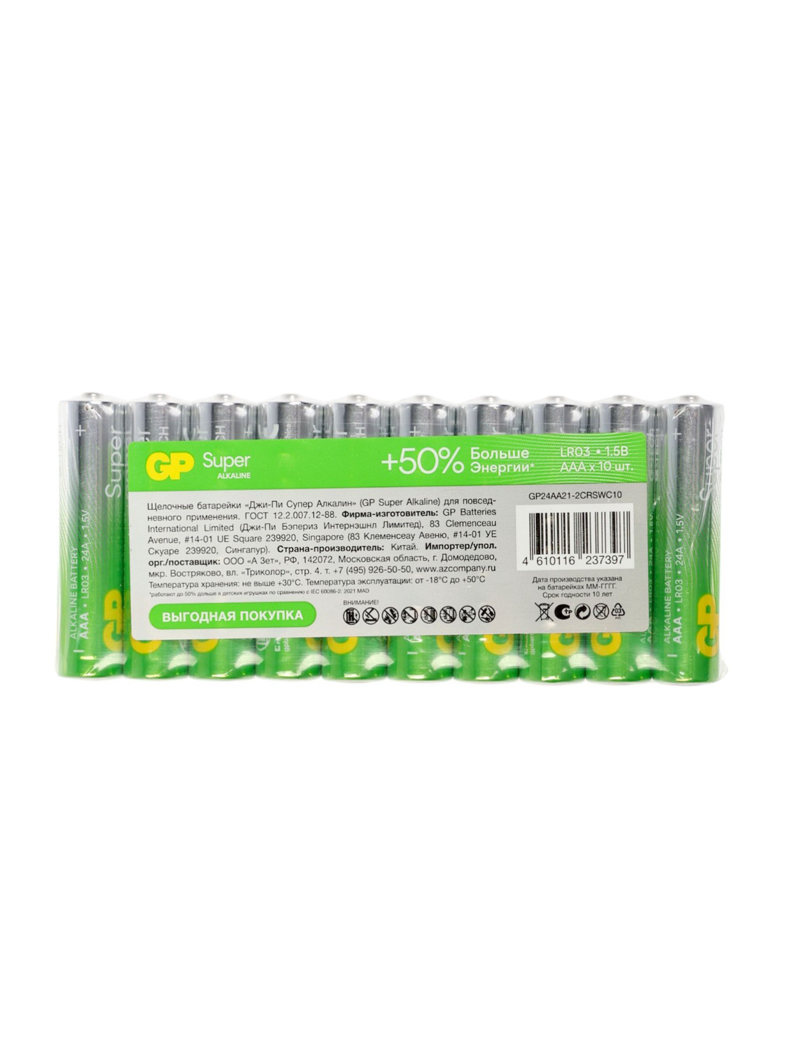 Батарейка алкалиновая Super, AAA, LR03-10S, 1.5 В, набор 10 шт., GP, Китай