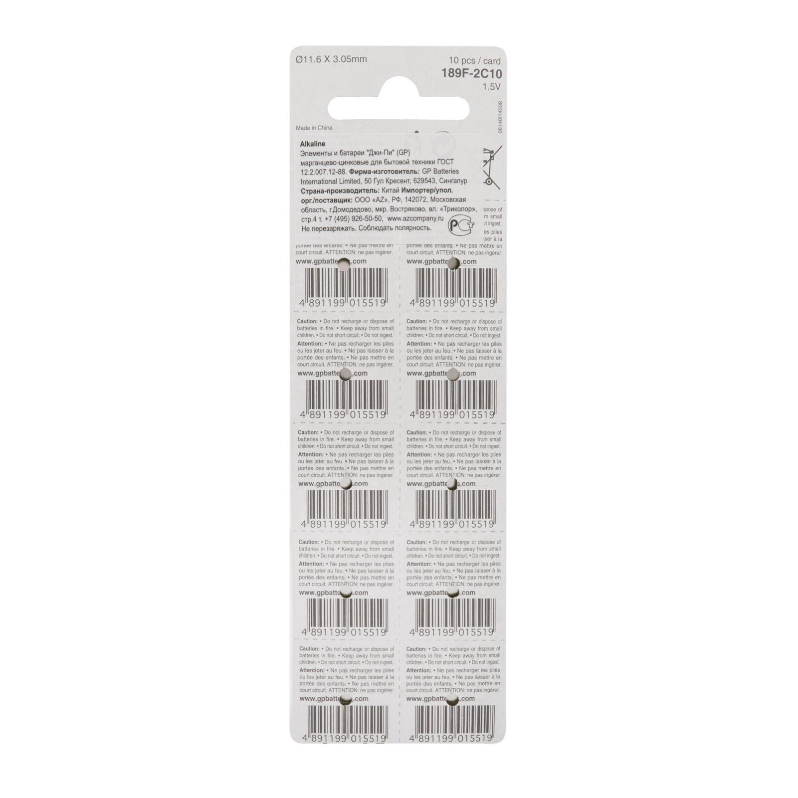 Батарейка алкалиновая 189-10BL, GP, Китай