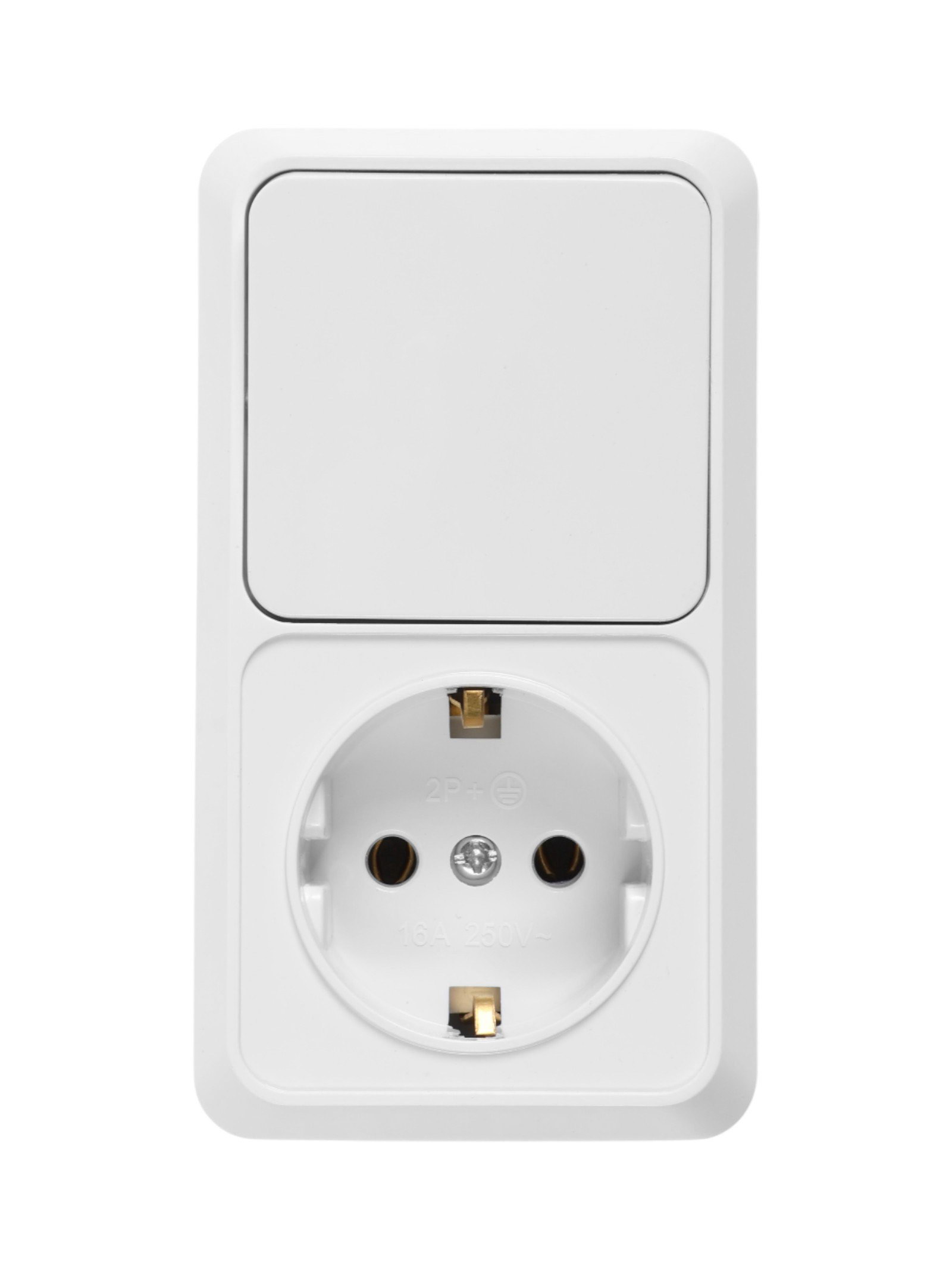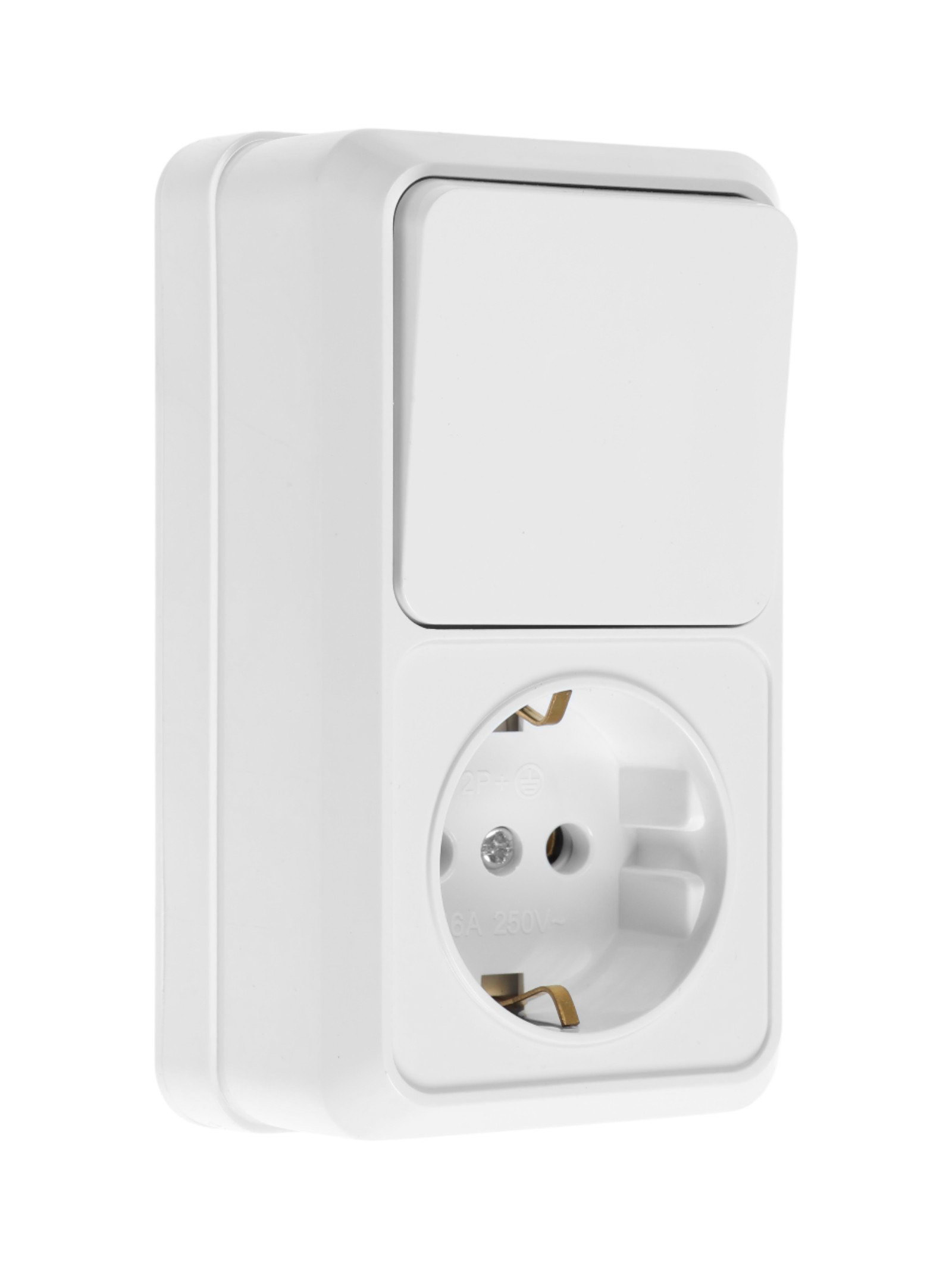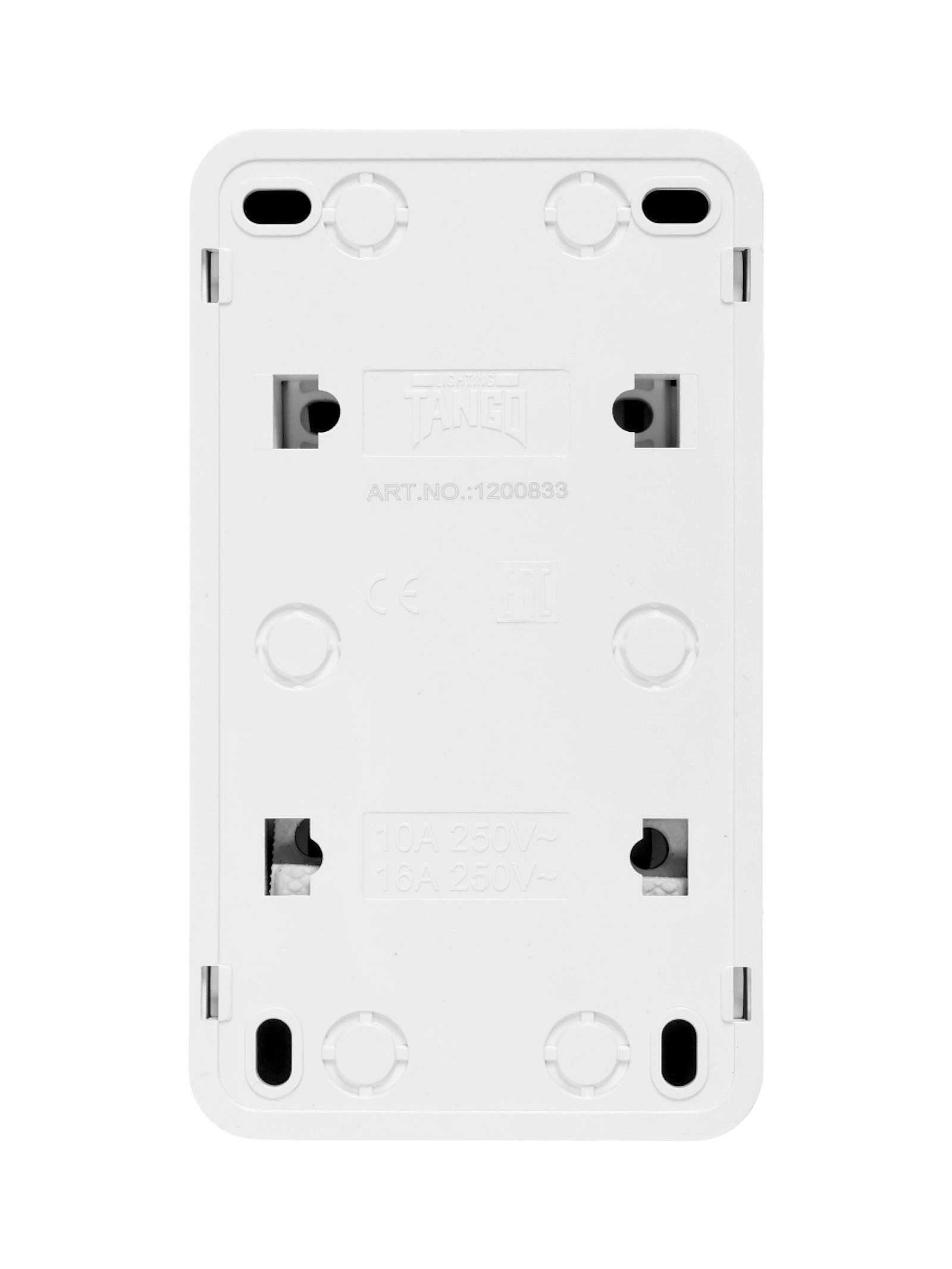 Выключатель одноклавишный с розеткой 16 А, IP20, вертикальный, с заземлением, белый, Tango, Китай
